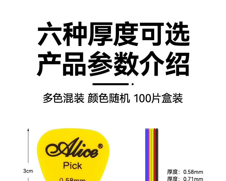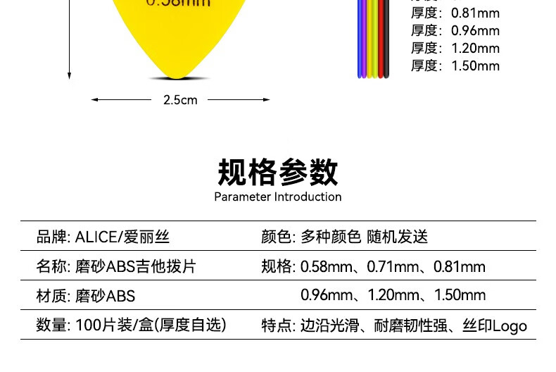 ALICE frosted ABS guitar pick ukulele pick wood electric guitar shrapnel PICK small accessories 0.58/0.71/0.81MM mixed pack of 50 pieces