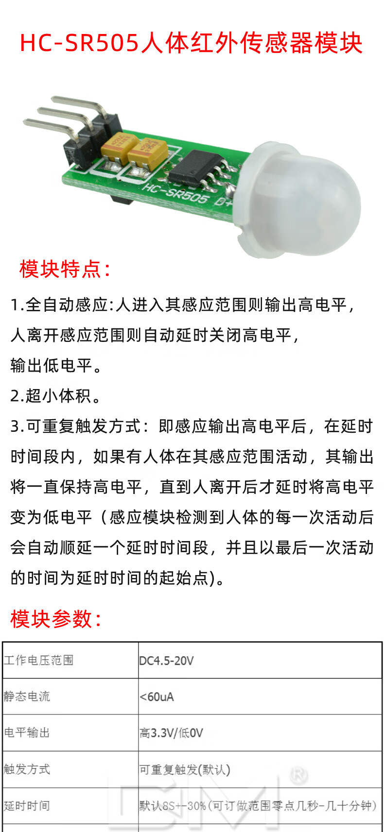 HC-SR505 human body infrared sensing electronic module sensor pyroelectric probe mini human body sensing switch