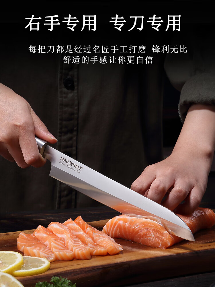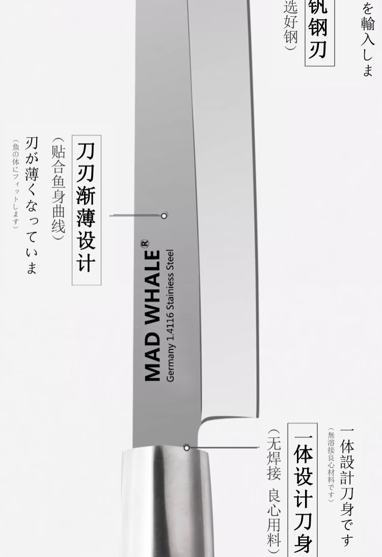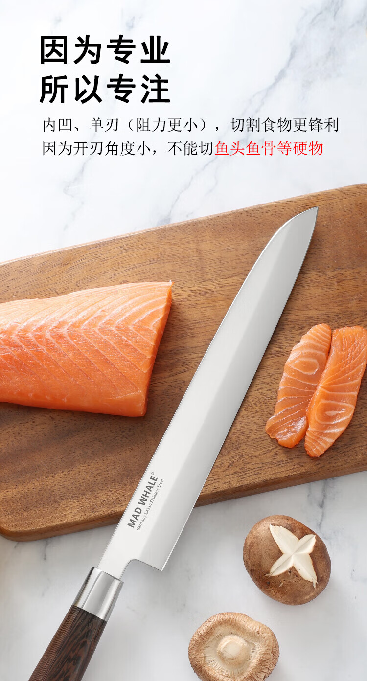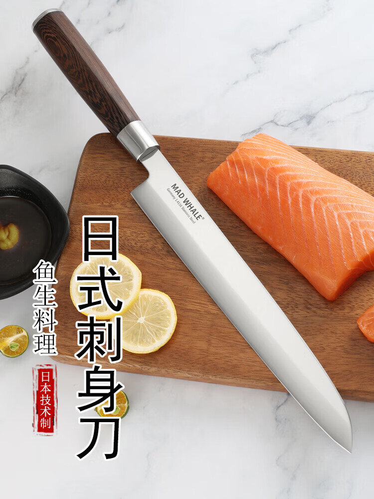 Mad Whale Japanese sashimi knife for cutting fish, sashimi knife, cooking knife for sushi, salmon special knife for killing and dissecting fish, single sashimi knife (not including scabbard)