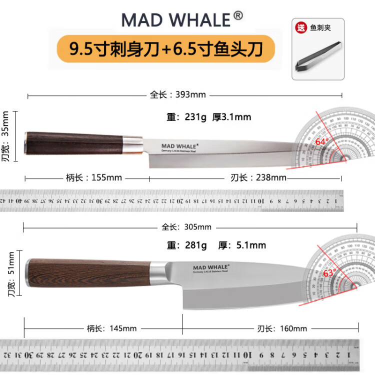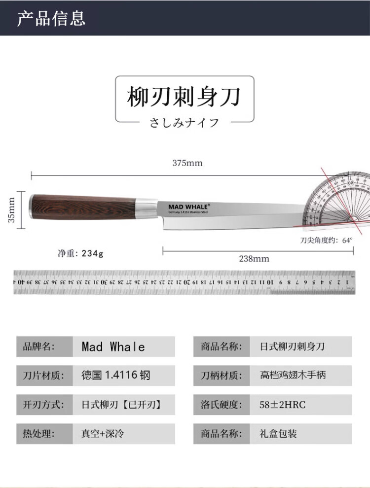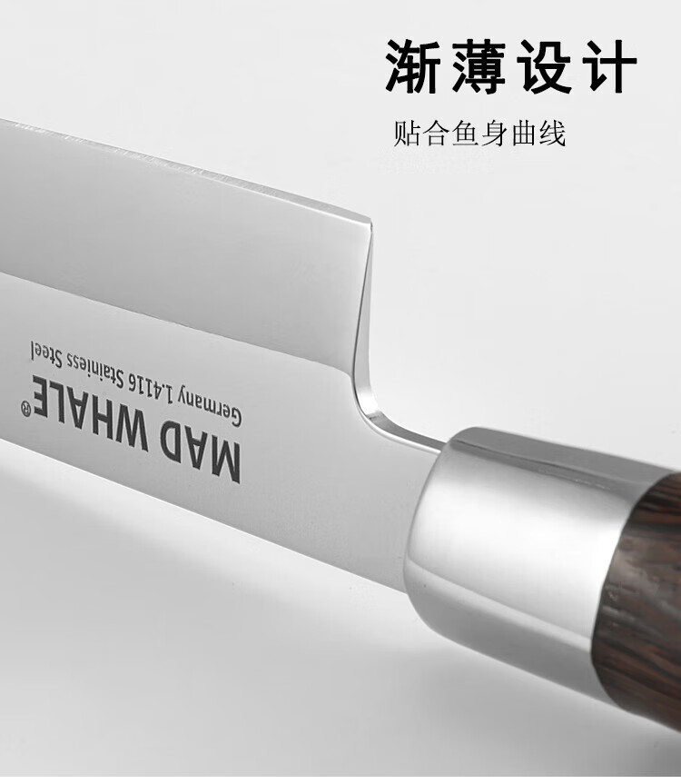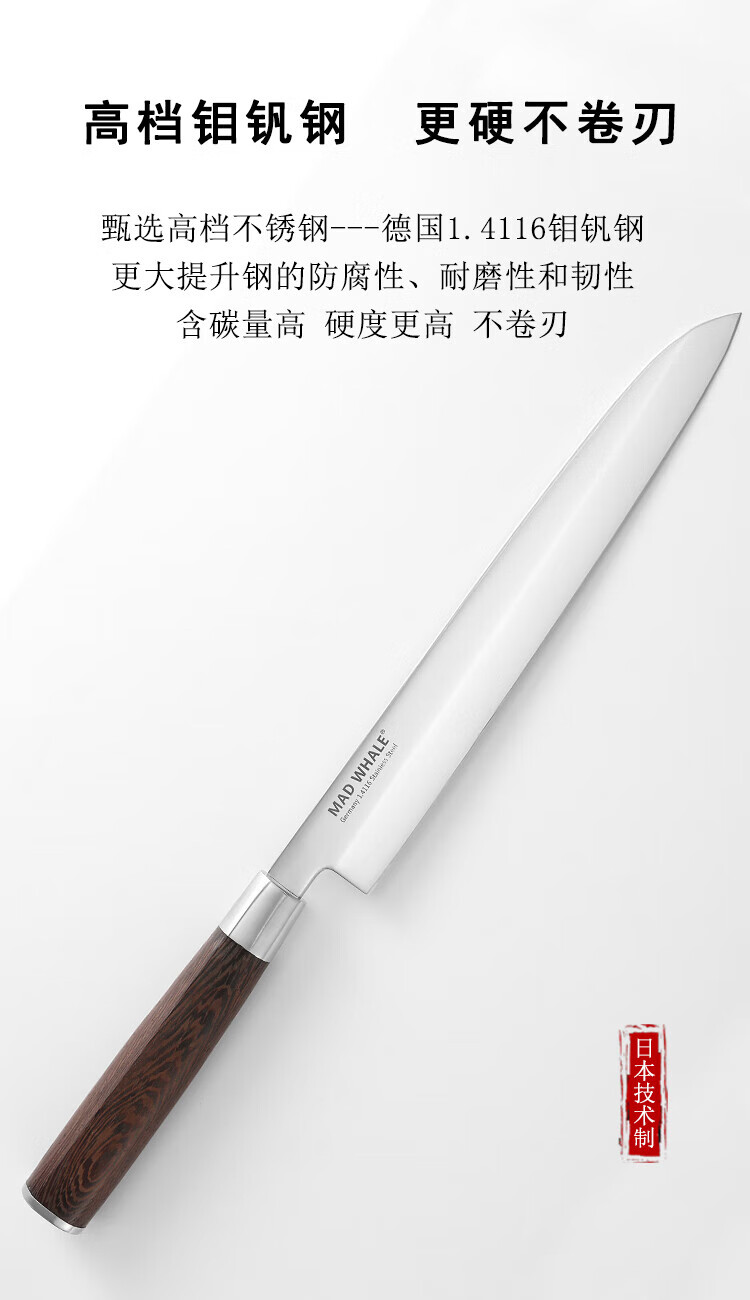 Mad Whale Japanese sashimi knife for cutting fish, sashimi knife, cooking knife for sushi, salmon special knife for killing and dissecting fish, single sashimi knife (not including scabbard)
