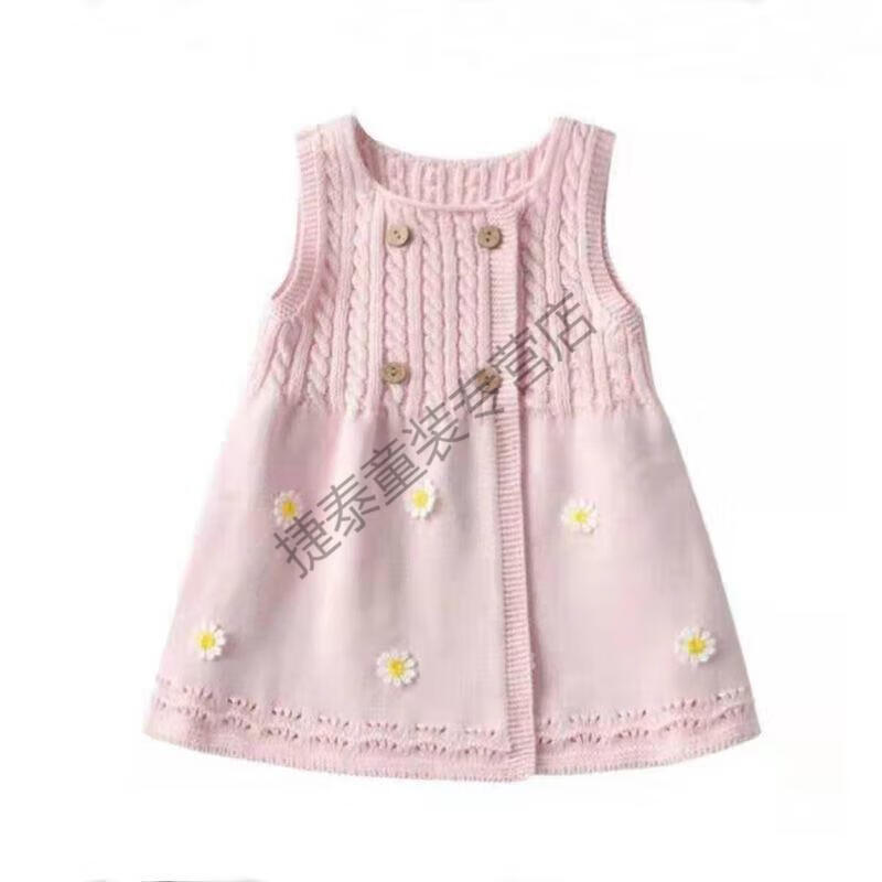 G.duck girls' knitted vest cardigan vest dress spring and autumn baby knitted long waistcoat small and medium-sized children's dress pink 120 clothing label (100 height recommended)