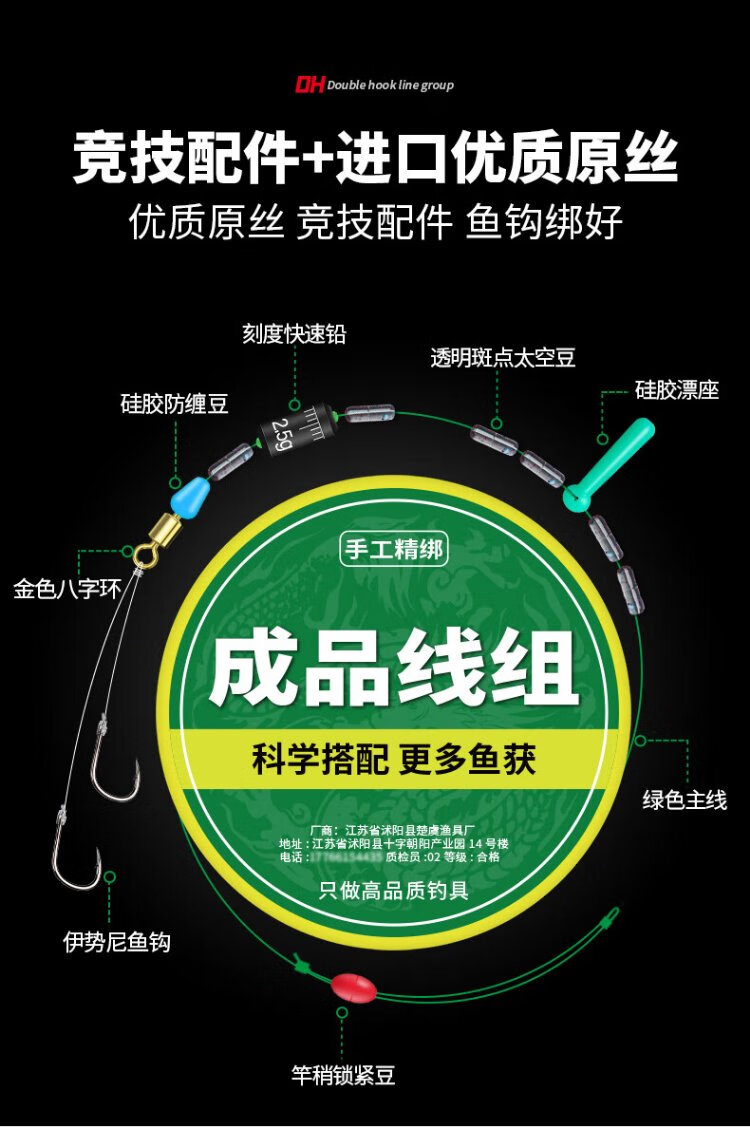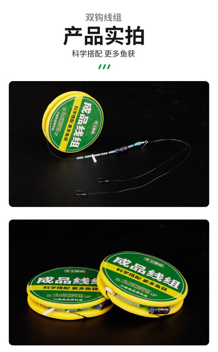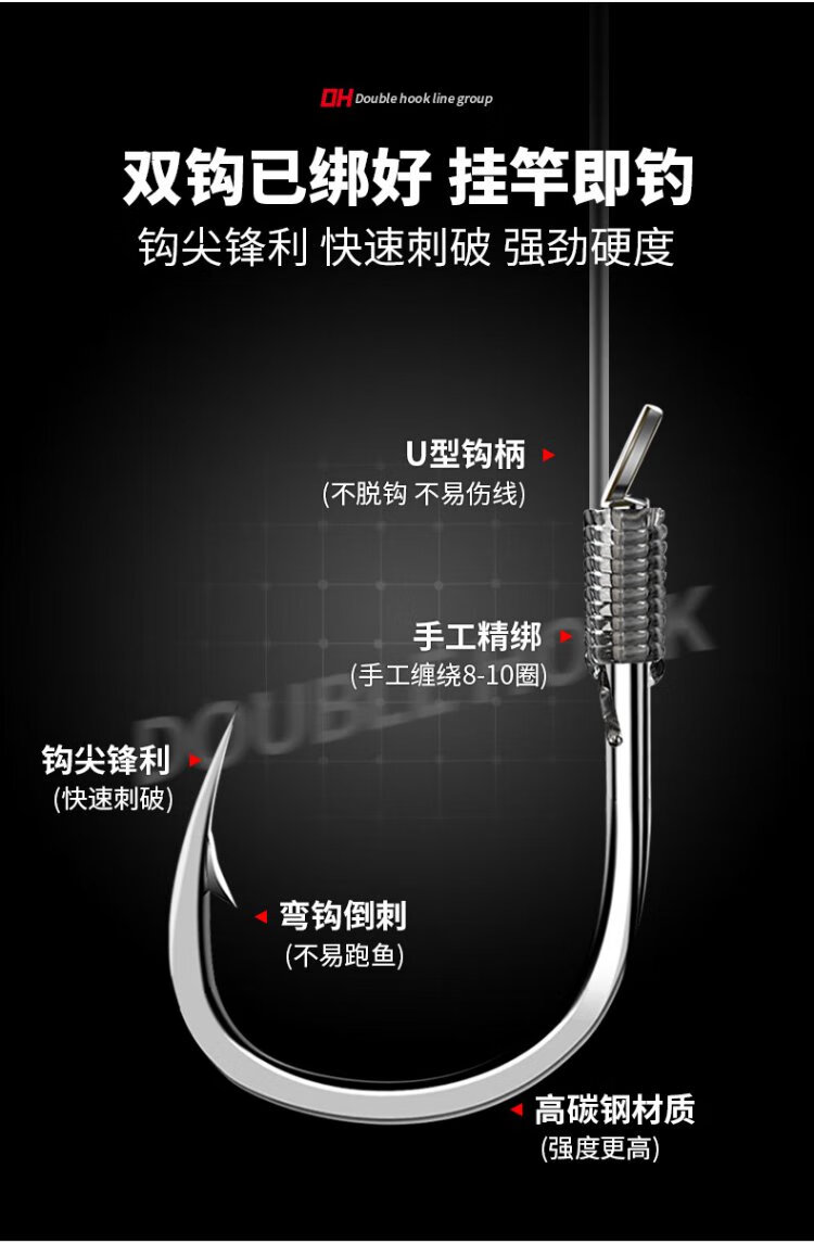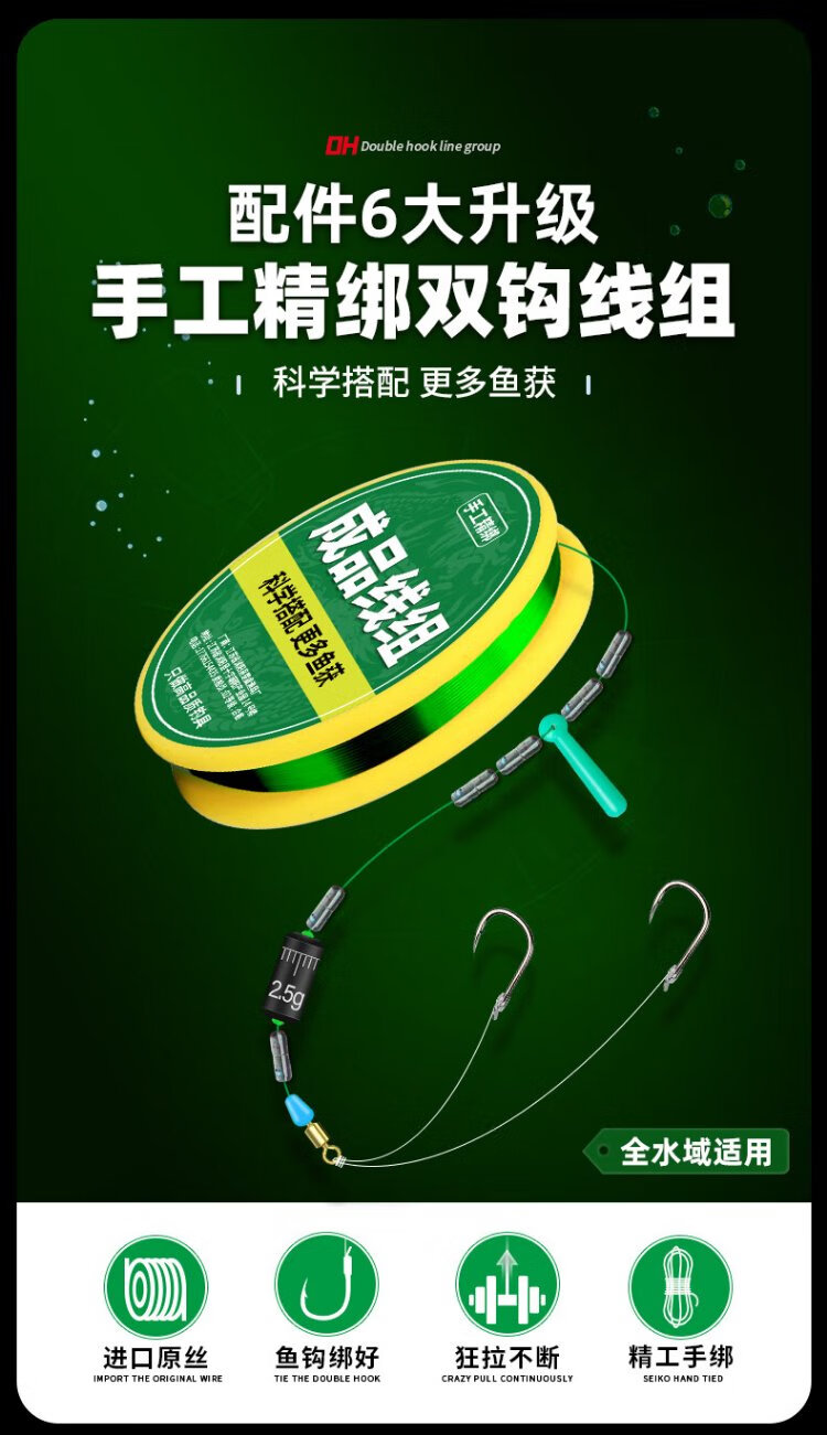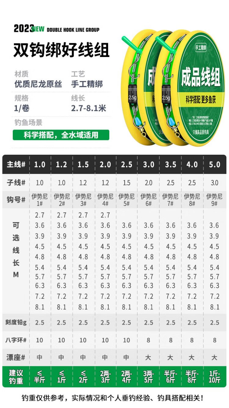Tied fish hooks, double hook line finished main line set, fishing line set 4.5, complete set of fishing gear and supplies, 5.4 meters, double hooks tied, 5 rolls, main line 1.5# + sub-line 1.2# + hook 3#