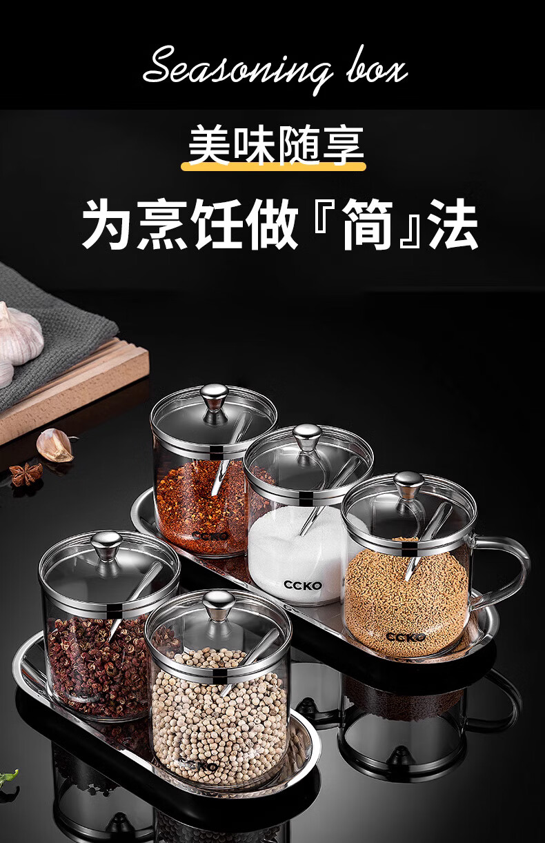 CCKO seasoning jar seasoning box combination home kitchen seasoning box multi-functional seasoning bottle salt shaker sealed moisture-proof seasoning jar blind seasoning jar (with handle) * 1