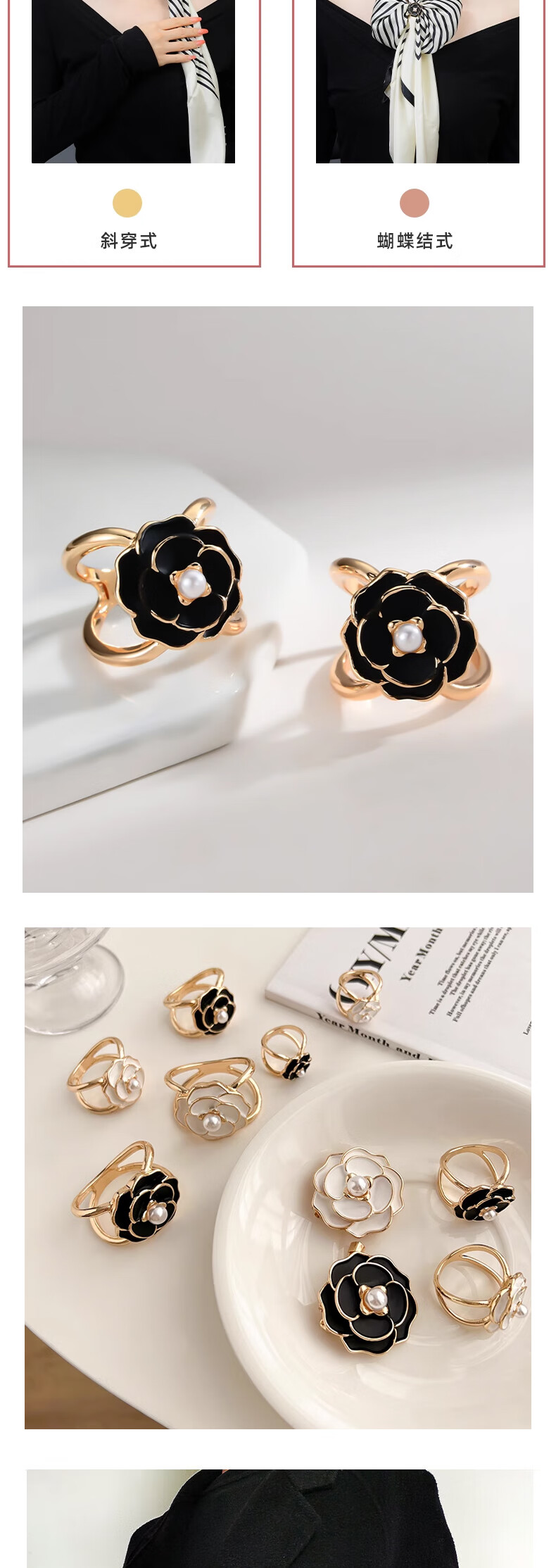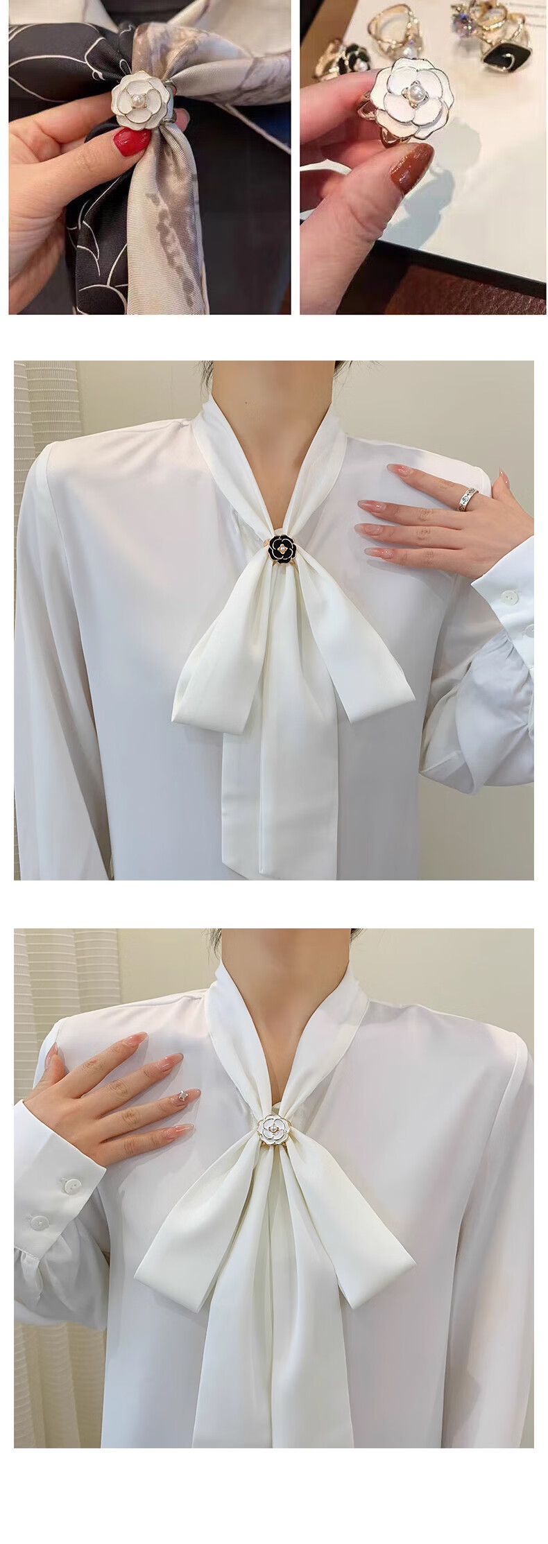 Hongzhuangnuo coat belt buckle bow silk scarf buckle fixed buckle multi-functional brooch fashion jewelry Christmas gift B2Y707 extra large white + black