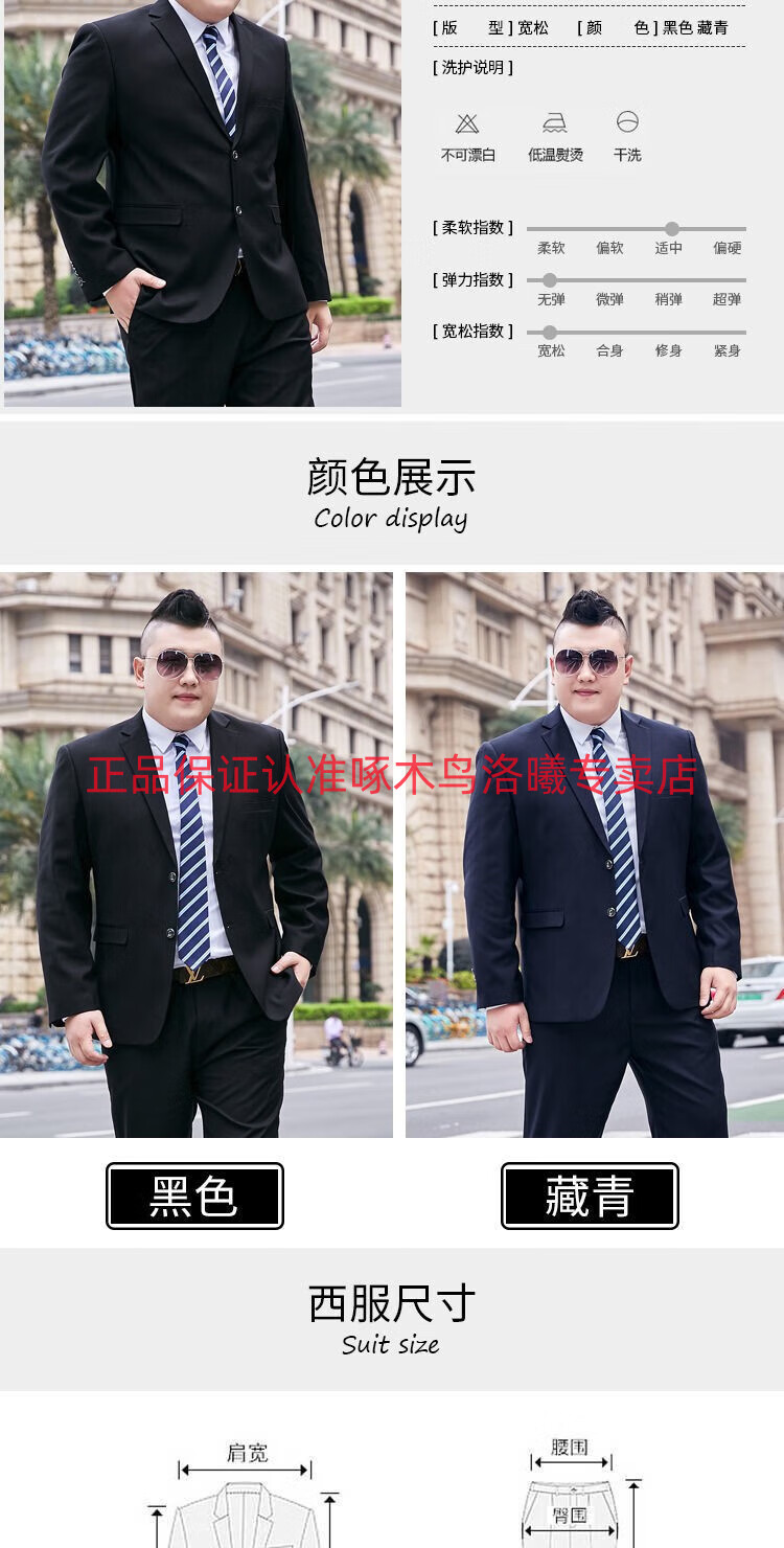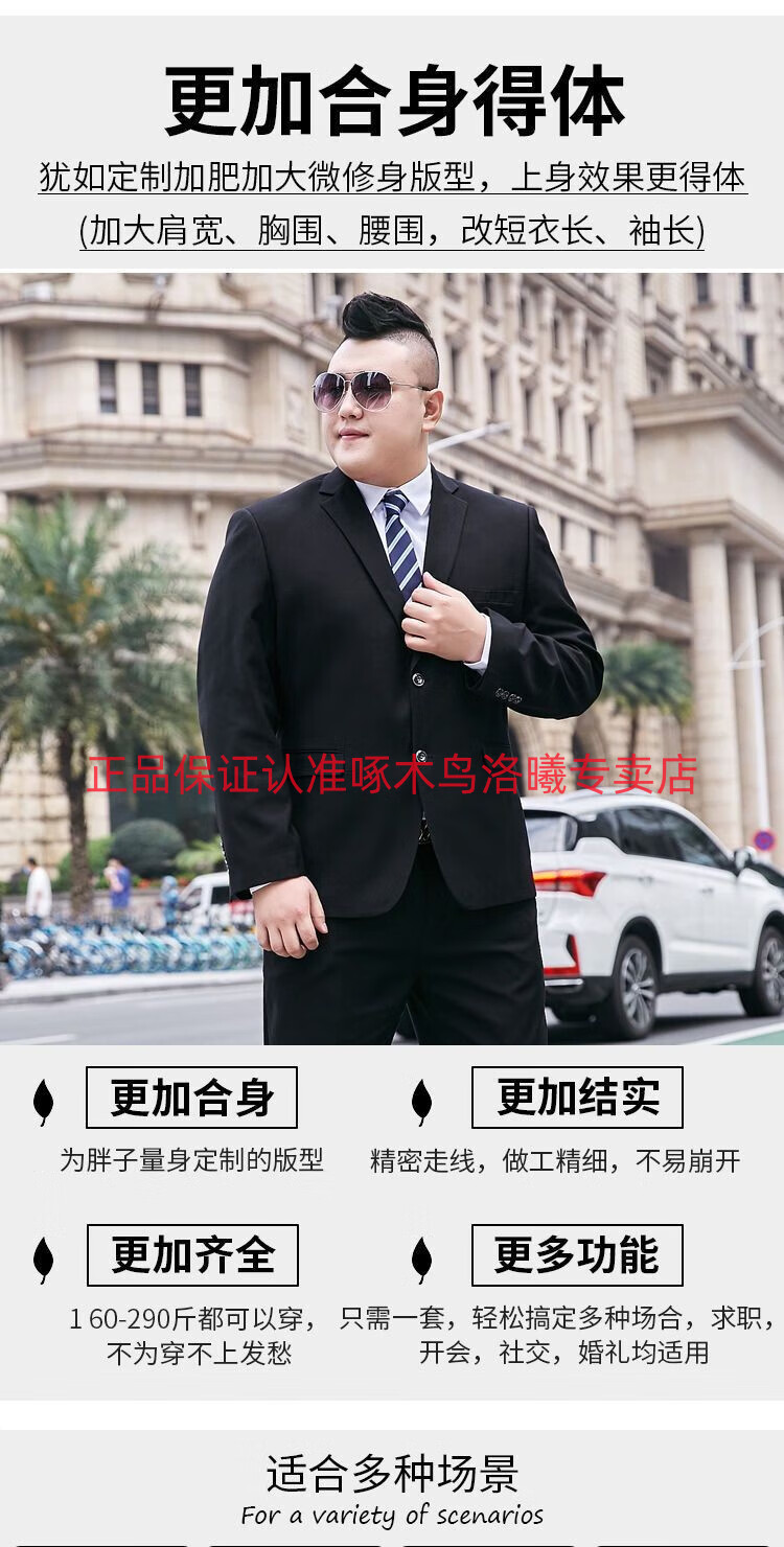 Woodpecker (TUCANO) large size suit men's suit business formal suit plus fat and trendy fat man casual professional three-piece suit black top + trousers + shirt with tie 6XL 225-240Jin Jin equals 0.5 kg