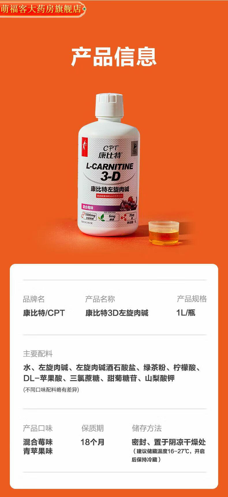 Affordable Pharmacy Combit 3D-Liquid L-Carnitine 100000 Liquid Men's and Women's Fitness Shaping Mixed Berry Flavor 1 Bottle