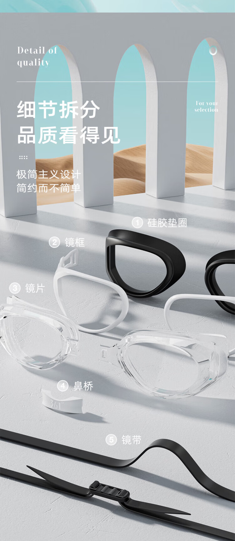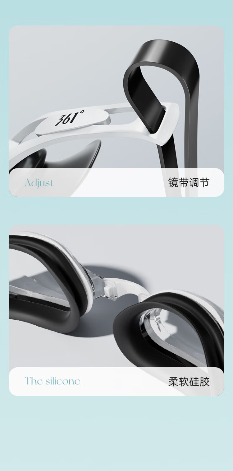 361 Swimming Goggles Unisex Adult Myopia Swimming Goggles Swimming Cap Set HD Waterproof and Anti-fog Swimming Equipment Black Flat