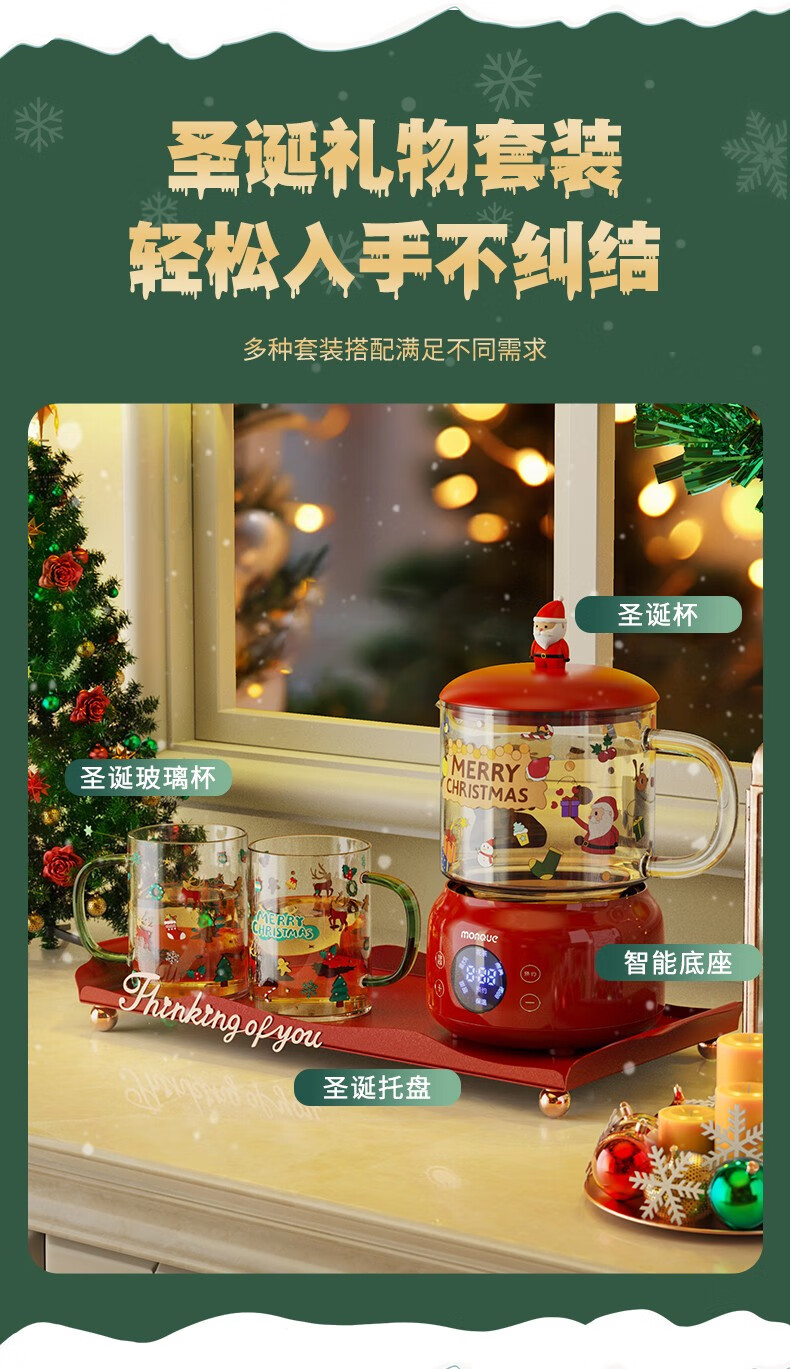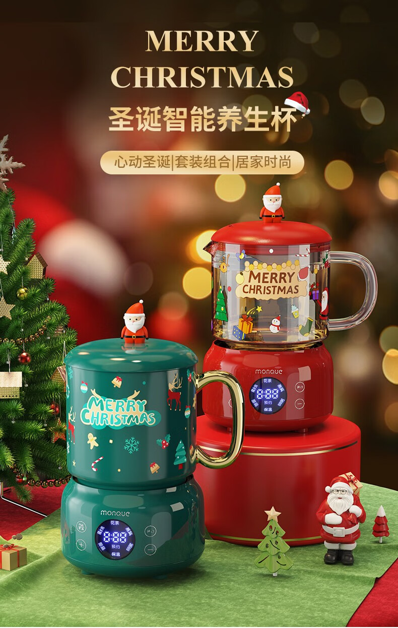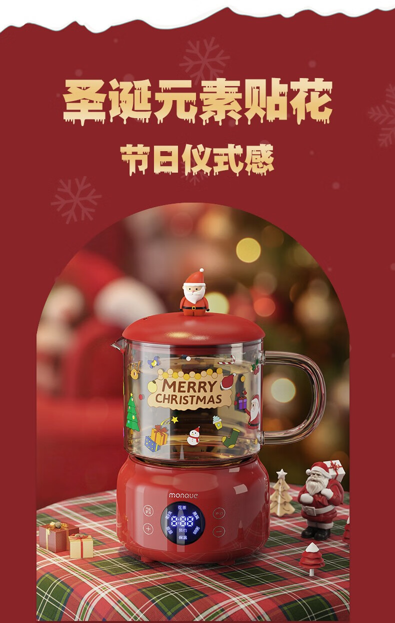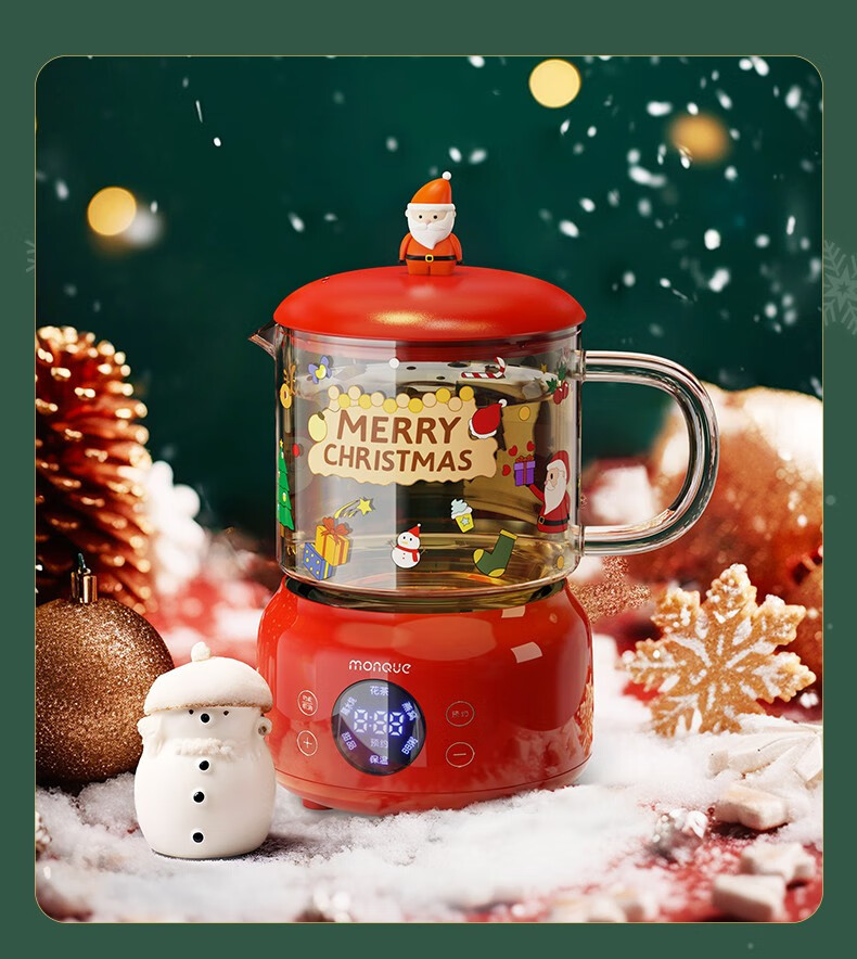 Miquerkuqi holiday gift health pot teapot teapot Christmas flower teapot gift box for girls to give to boys best friends and friends Christmas gift box Guangshan red 0.6 glass cup + base G