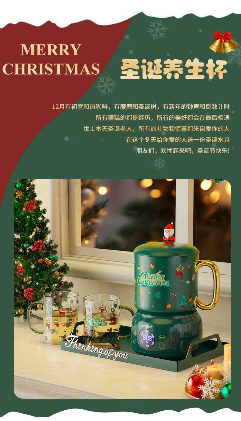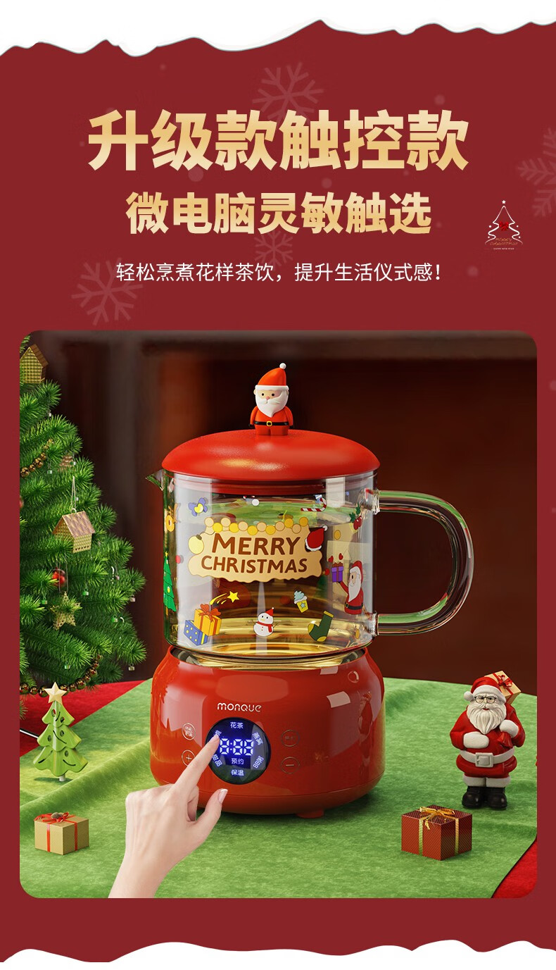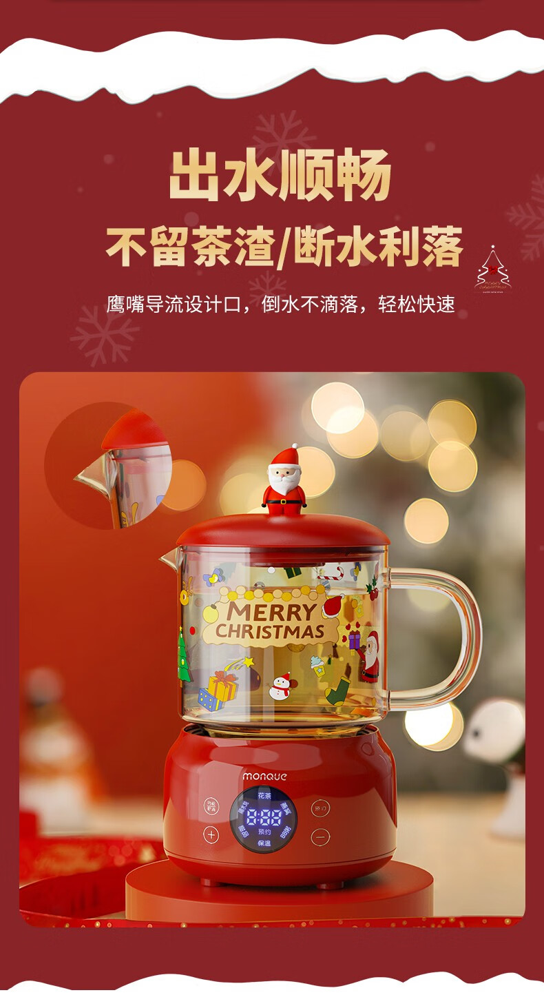 Miquerkuqi holiday gift health pot teapot teapot Christmas flower teapot gift box for girls to give to boys best friends and friends Christmas gift box Guangshan red 0.6 glass cup + base G