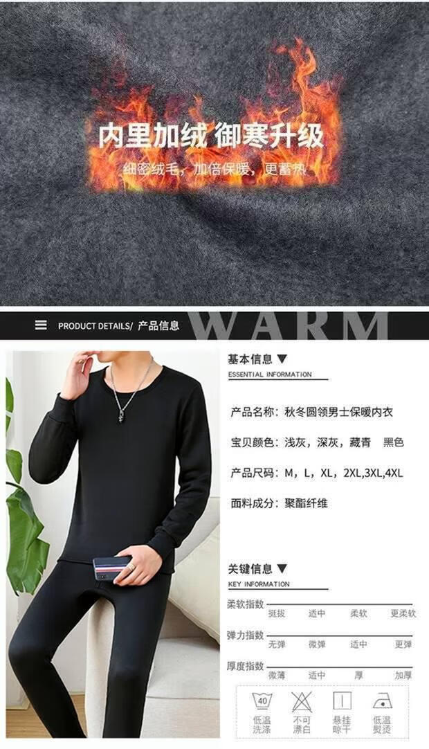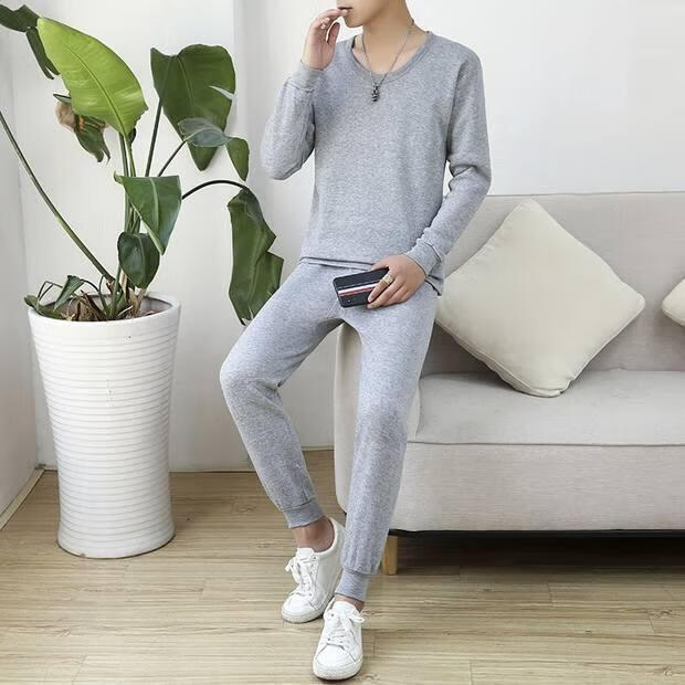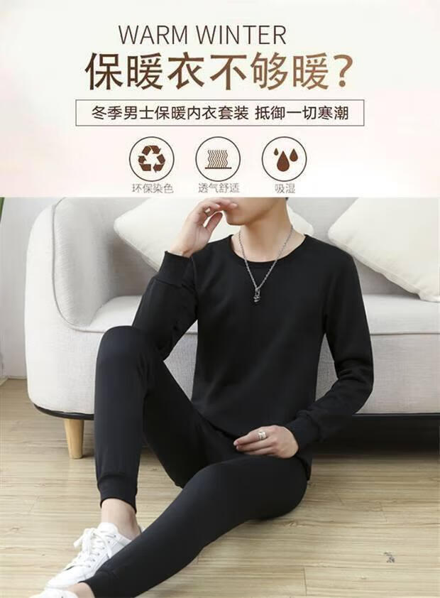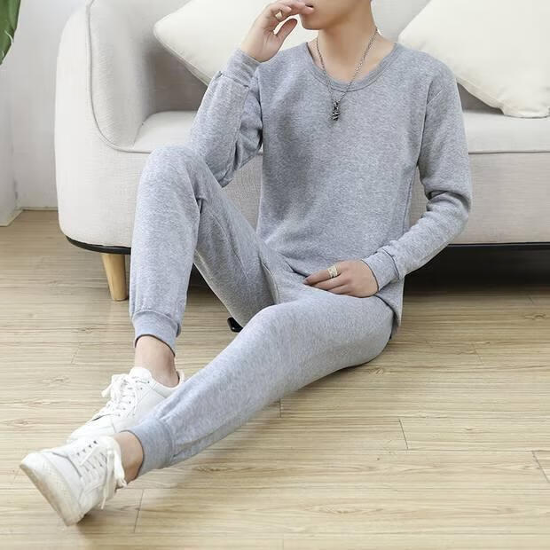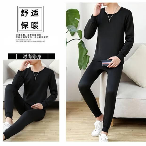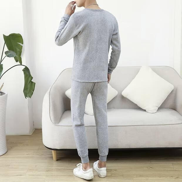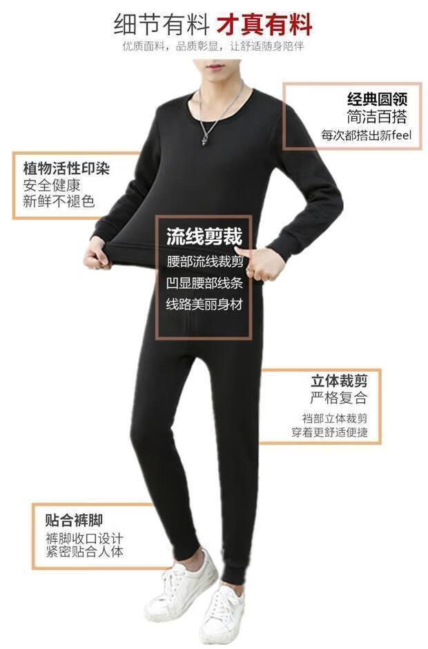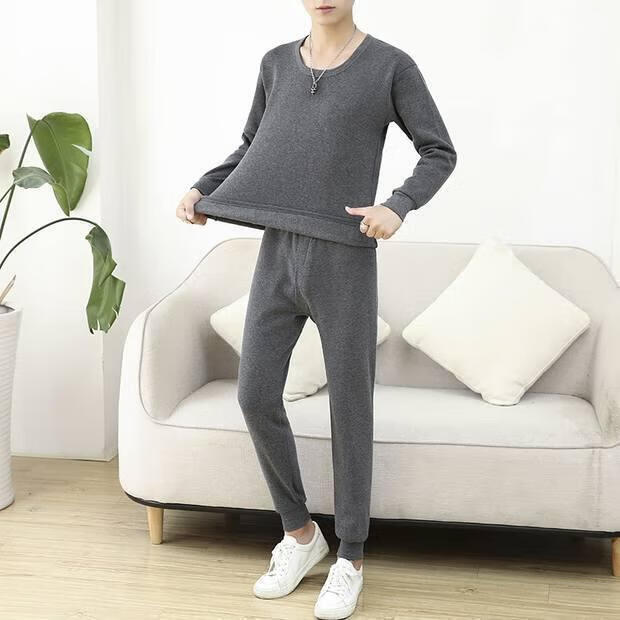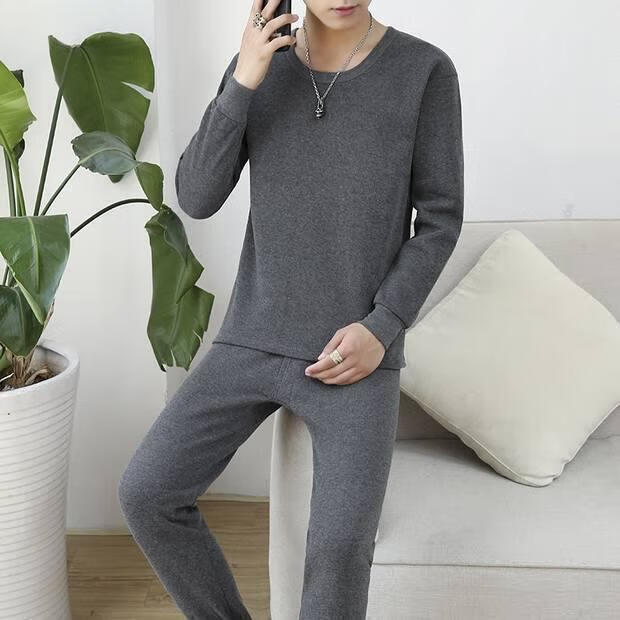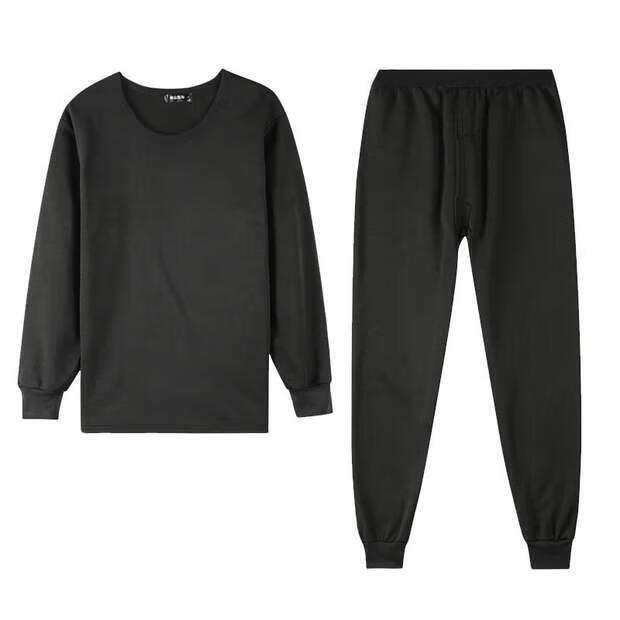 Shanshili 2 Sets Men's Thermal Underwear Set Thickened and Velvet Comfortable Bottoming Youth Autumn Clothes and Autumn Pants Men's Warm Set Black + Dark Gray 2 Sets XL (115-125Jin Jin equals 0.5kg)