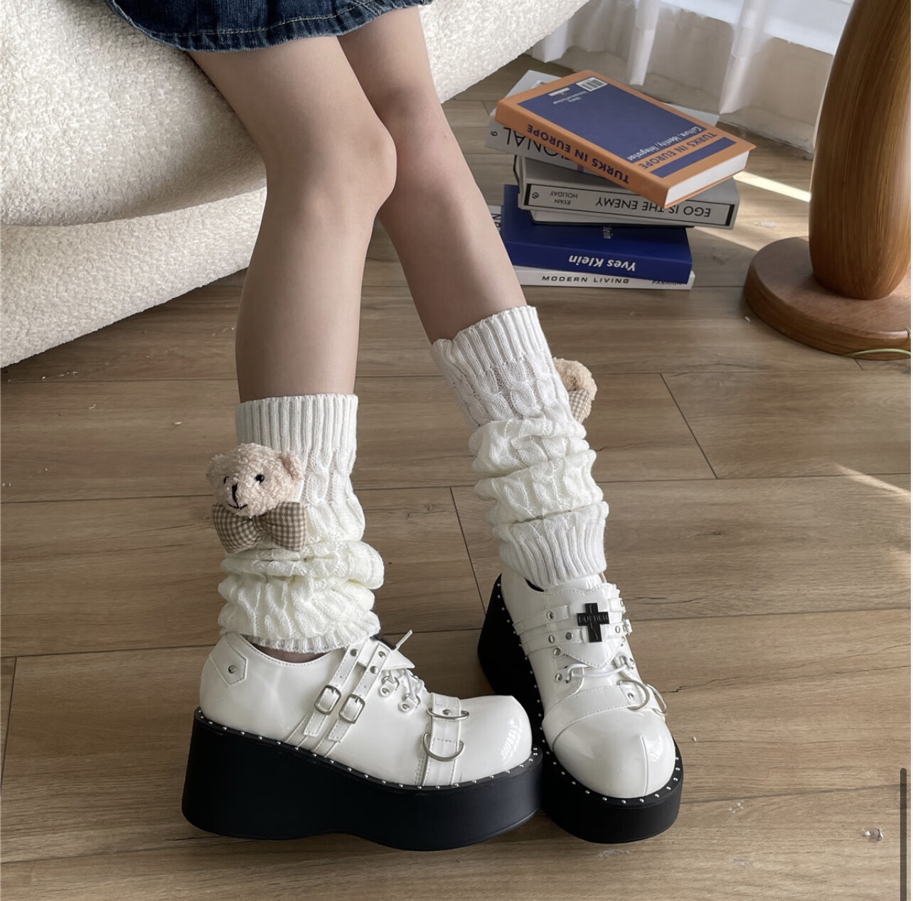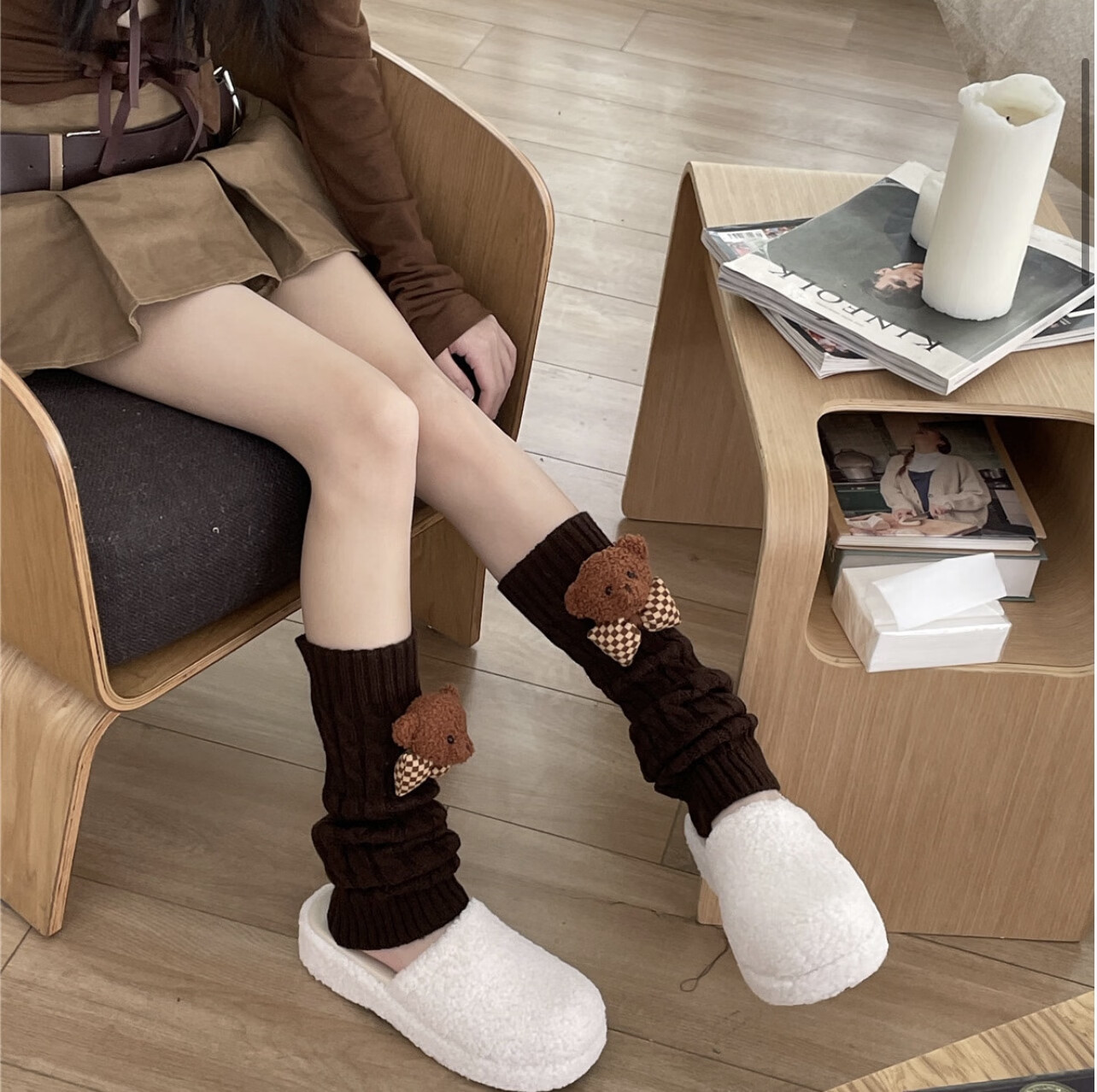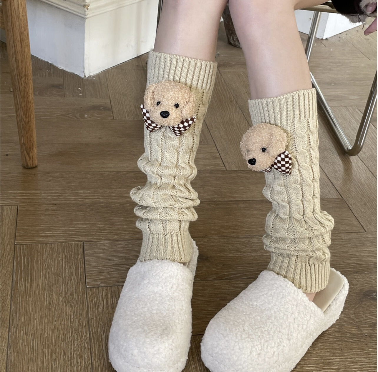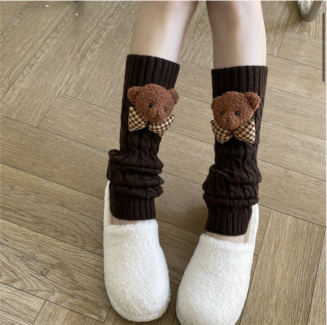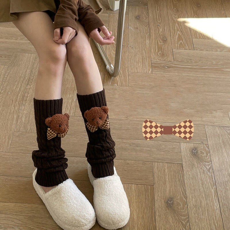 Jie Feili's new Japanese style cute bear woolen leg covers for girls, pile socks for autumn and winter, warm children's stocking covers, A10 bear doll, khaki color, 1 pair, one size fits all, 40cm