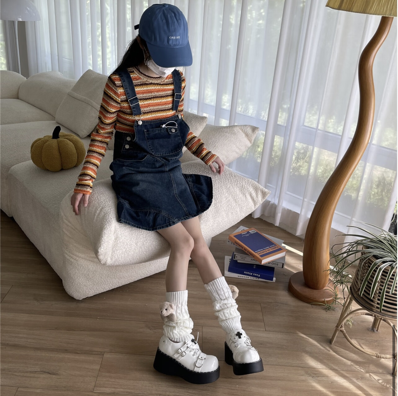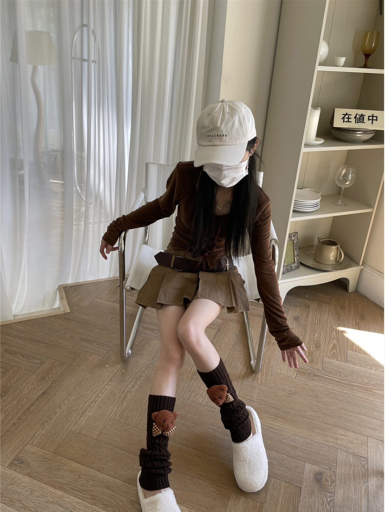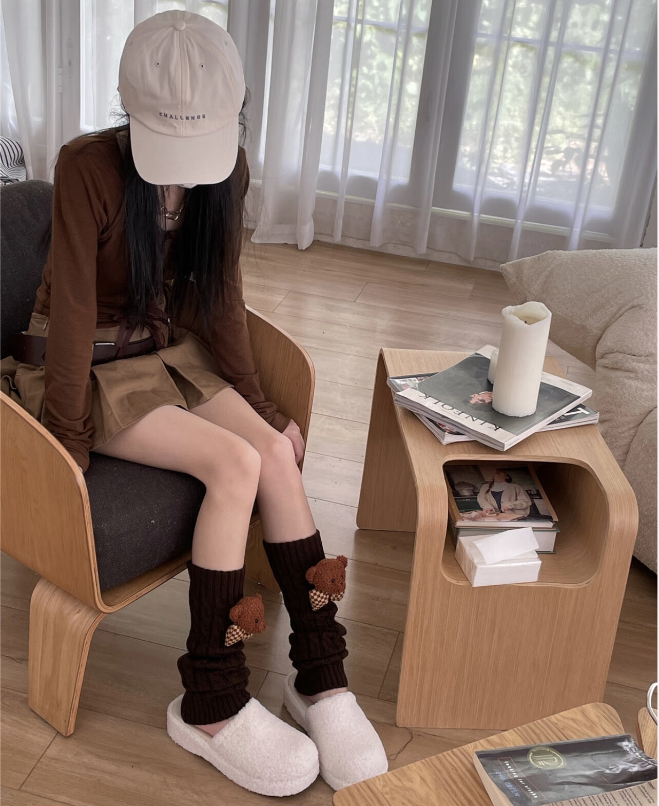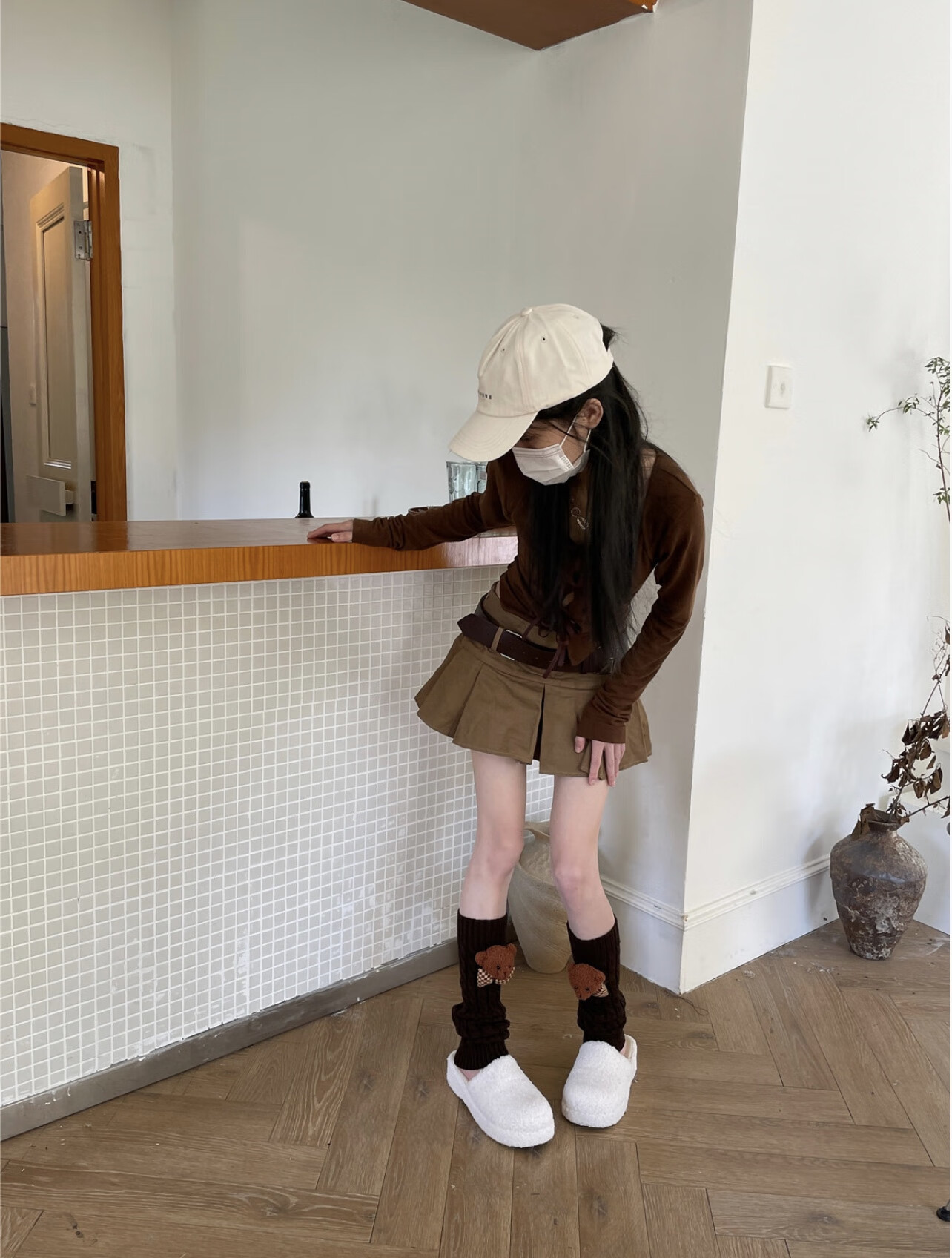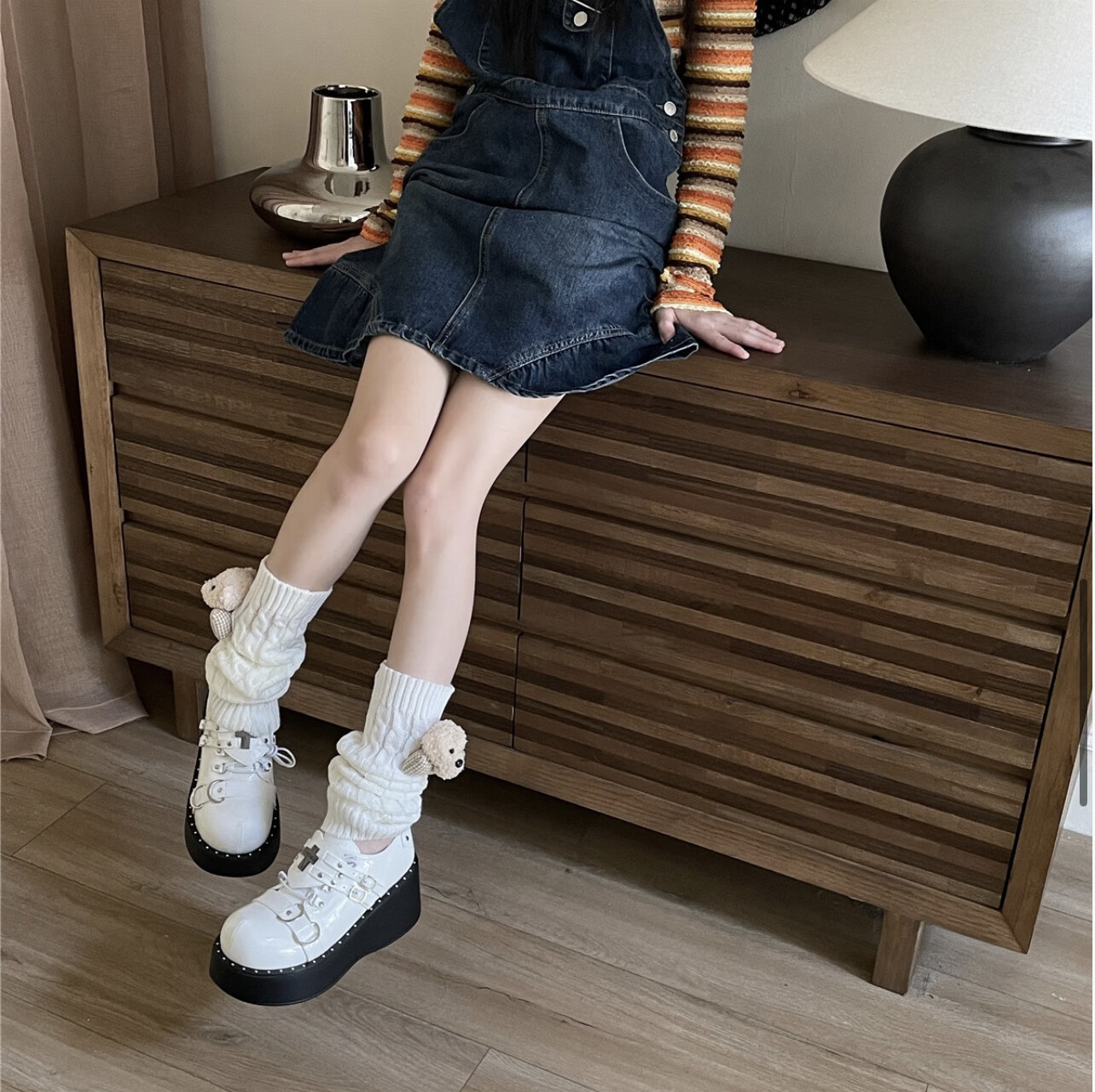 Jie Feili's new Japanese style cute bear woolen leg covers for girls, pile socks for autumn and winter, warm children's stocking covers, A10 bear doll, khaki color, 1 pair, one size fits all, 40cm