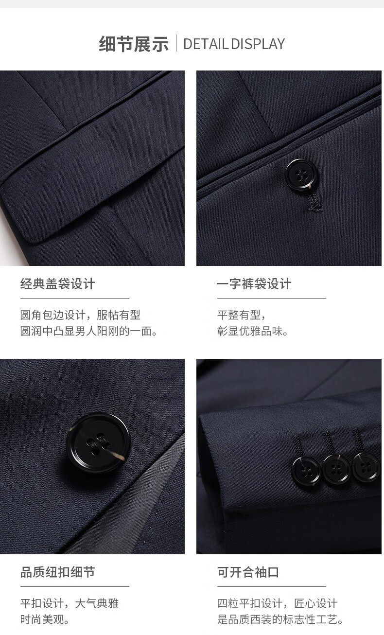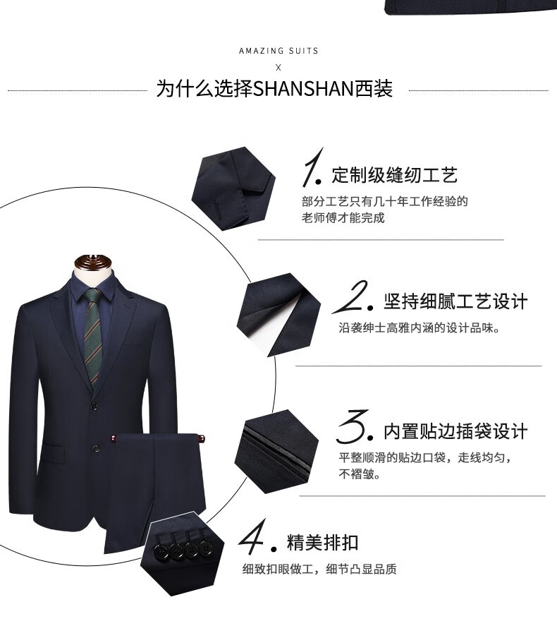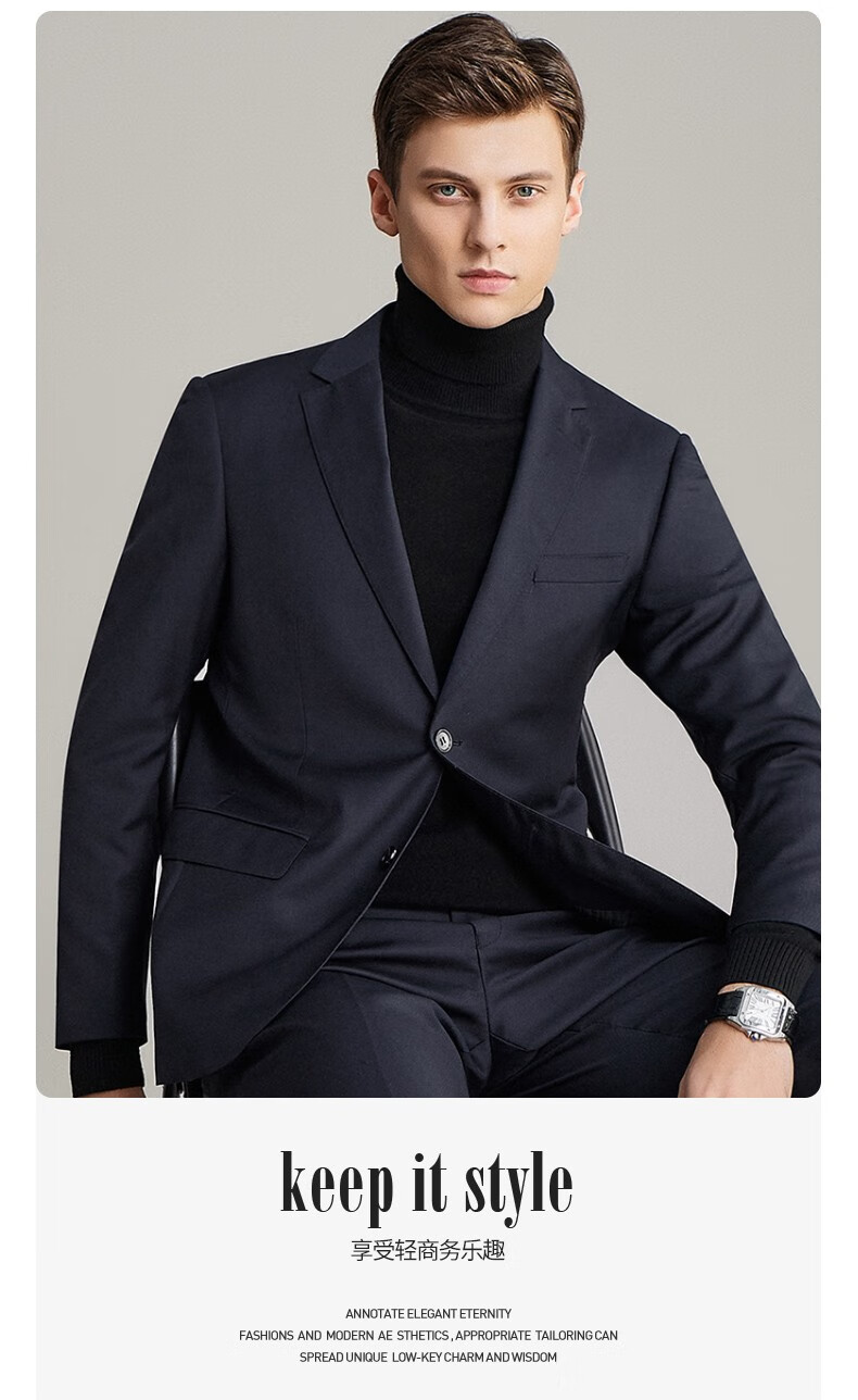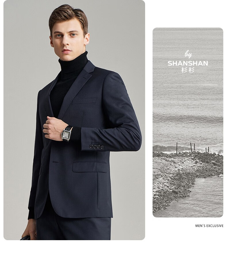 SHANSHAN Shanshan Wool Suit Men's Four Seasons Anti-wrinkle Slim Professional Formal Suit Business Dress Men's Jacket Navy 44 A