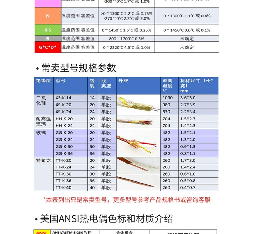American standard K-type temperature sensing wire temperature measuring wire TT-K-30 thermocouple t compensation GG-K/T-30/36/24-SLE T type TT-T-36-SLE-1 meter