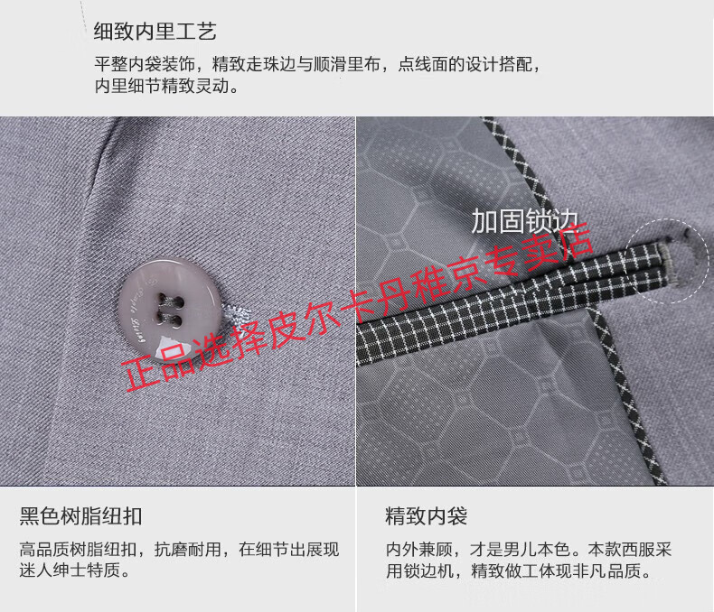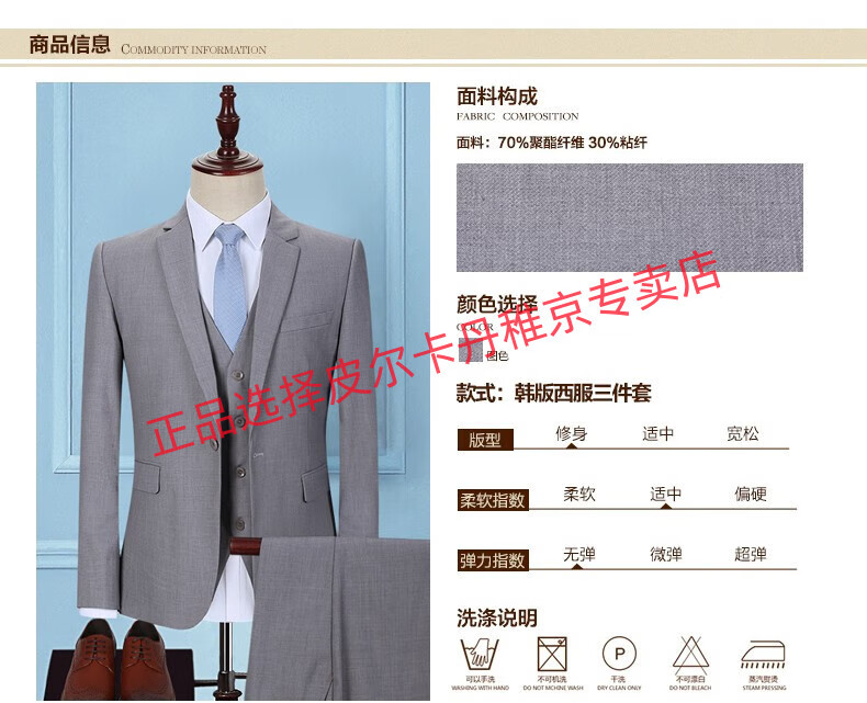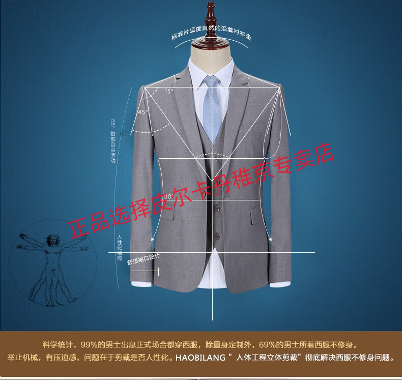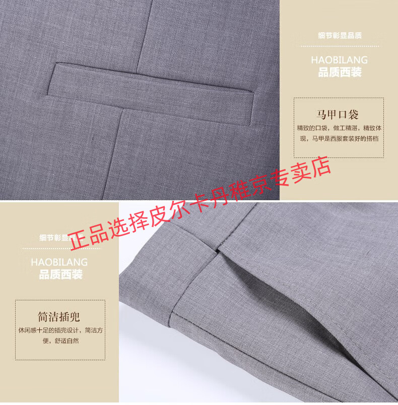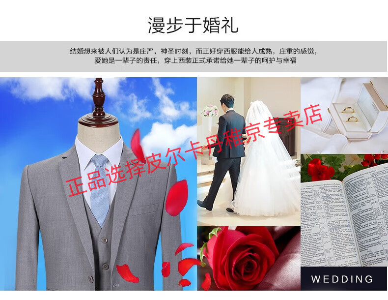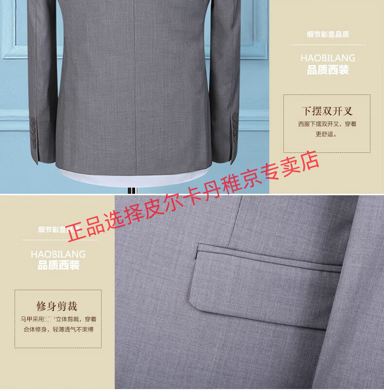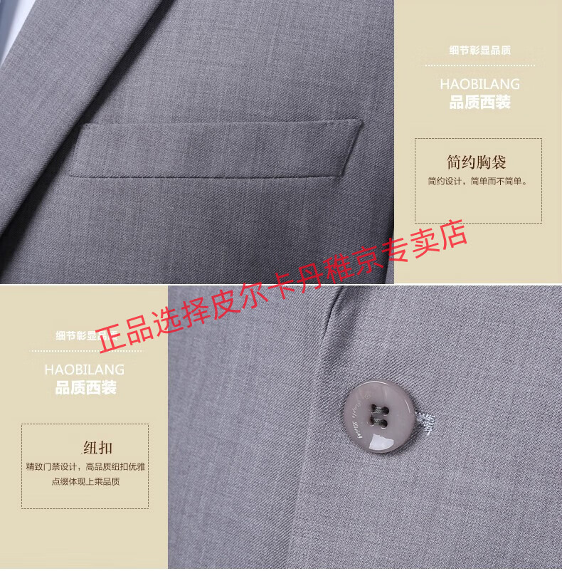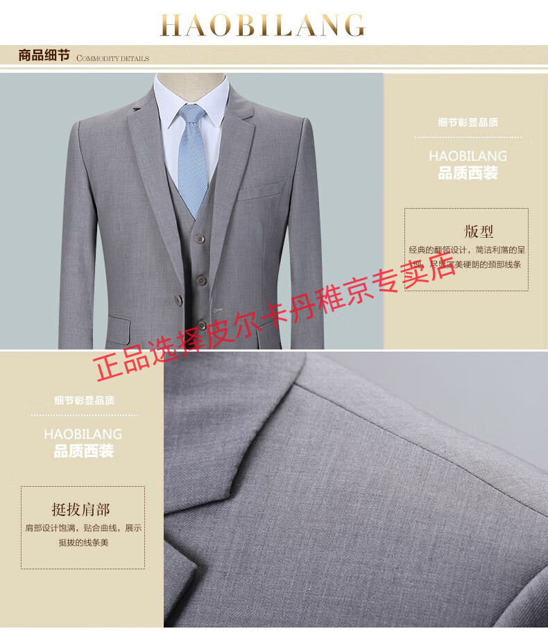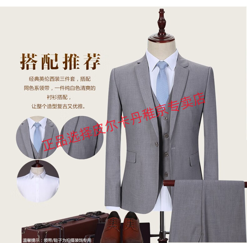 Pierre Cardin Light Gray Men's Suit Korean Style Slim Three-piece Business Casual Professional Formal Groom Wedding Dress Two-Button Light Gray Suit + Tailor-made Pants XS