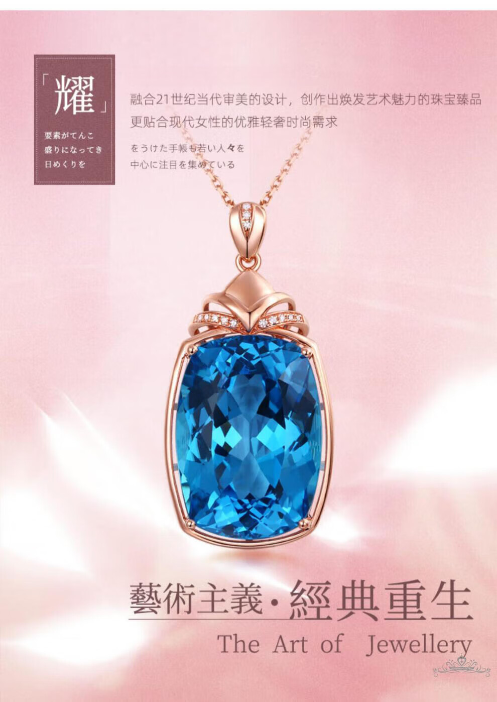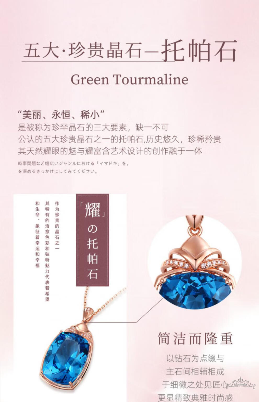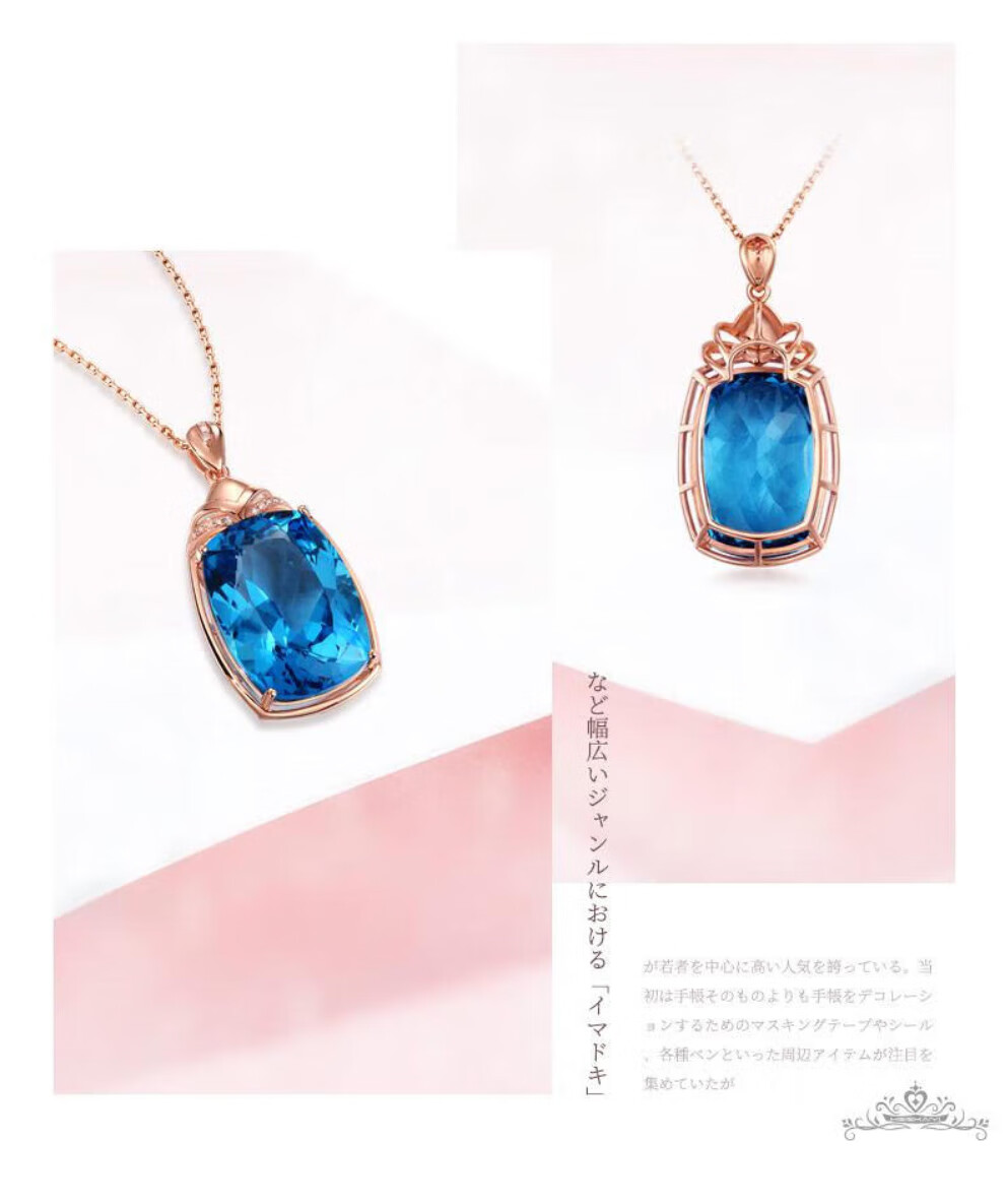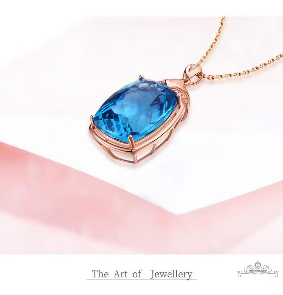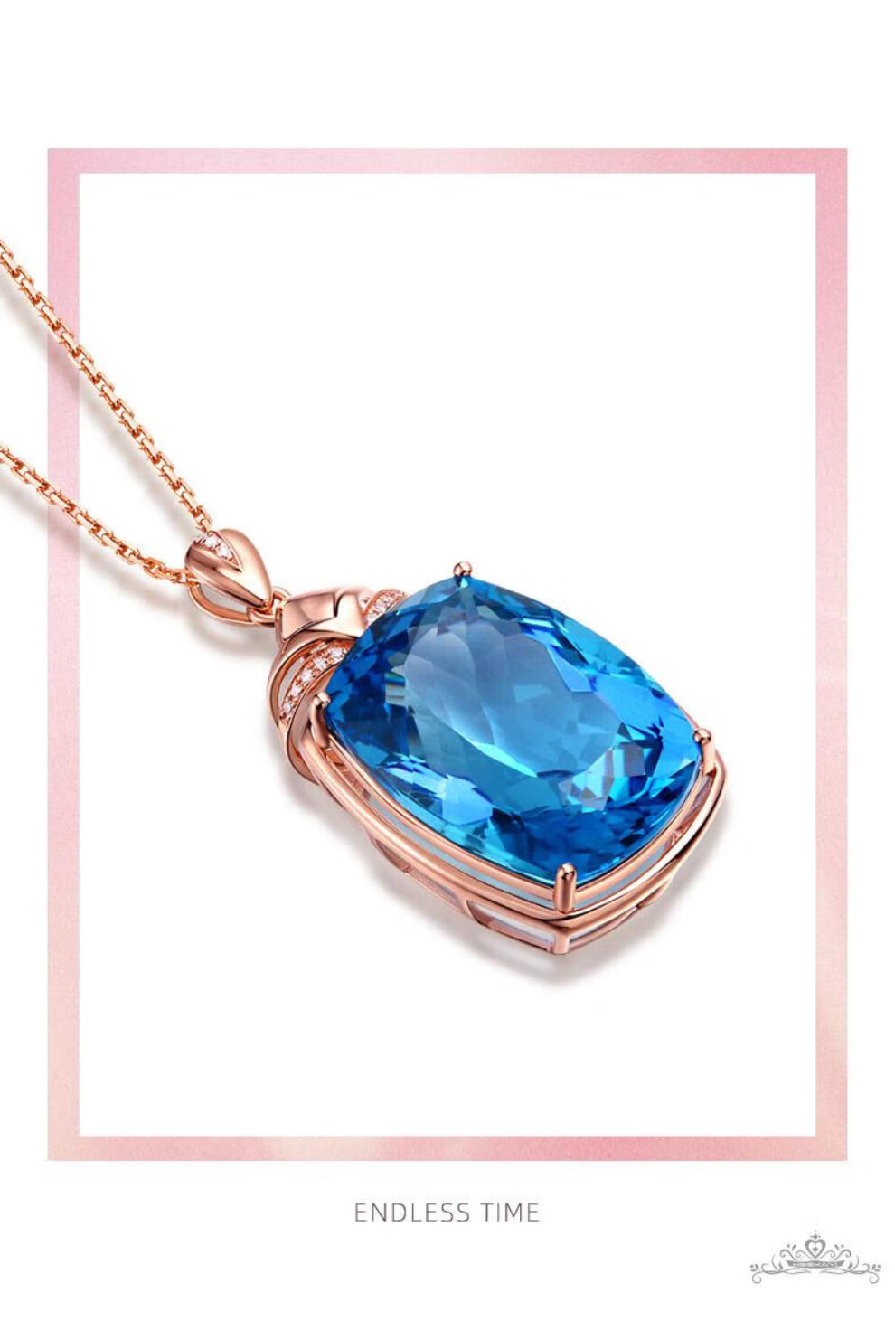 Haikayi Topaz Pendant Women's 18 Gold K Necklace Gemstone Necklace High-End Chinese Valentine's Day Birthday Gift for Wife Topaz Necklace 25.6 Carats 3 Points Diamond