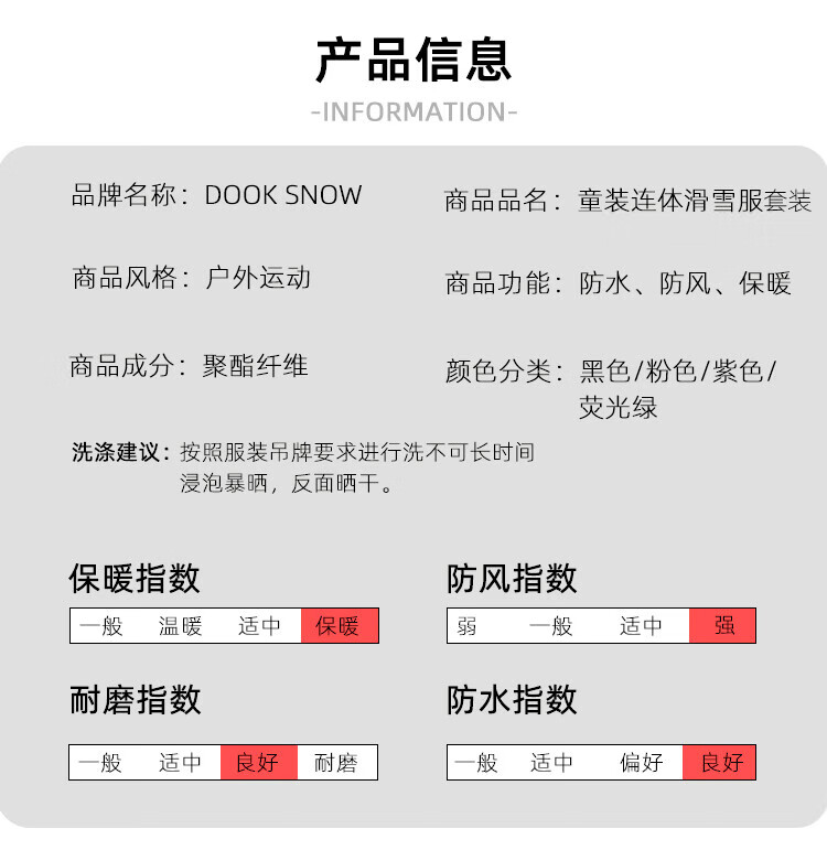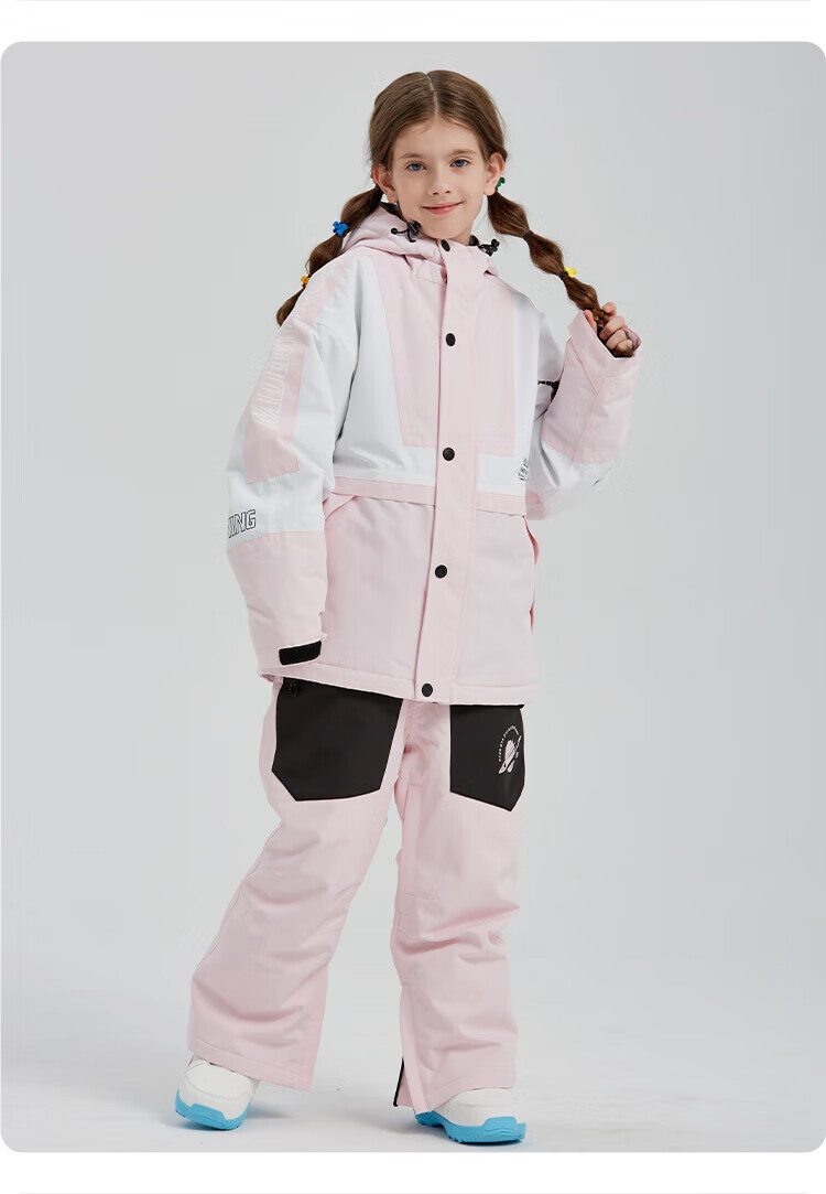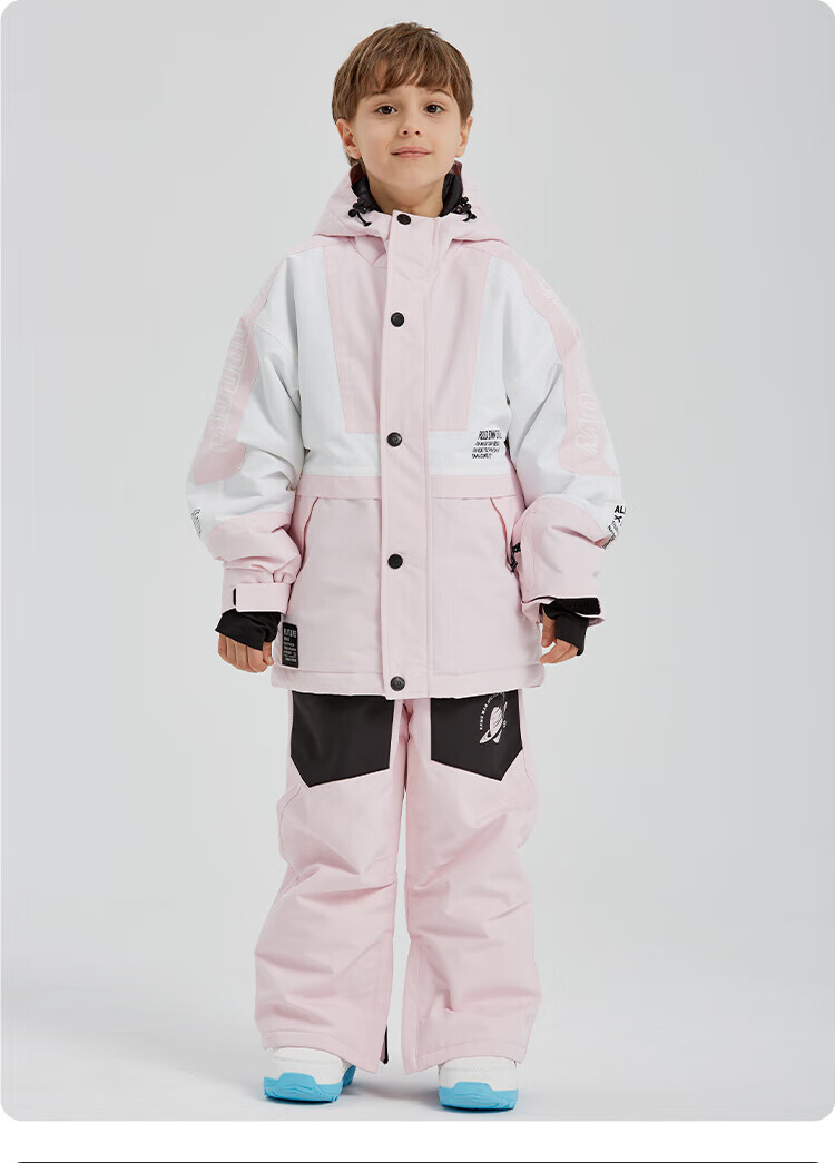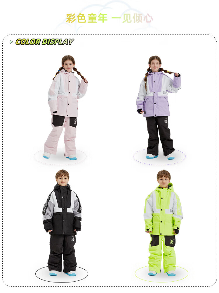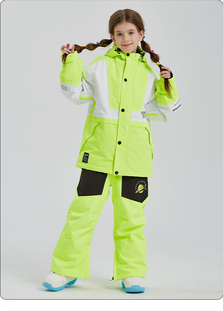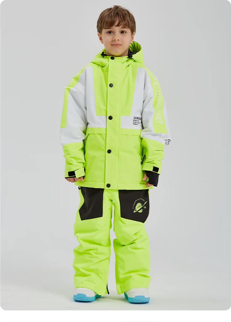 DOOK SNOW children's ski clothing for girls and boys, single board and double board, winter warm and thickened clothing and pants set, baby ski equipment, fluorescent color (male) 140