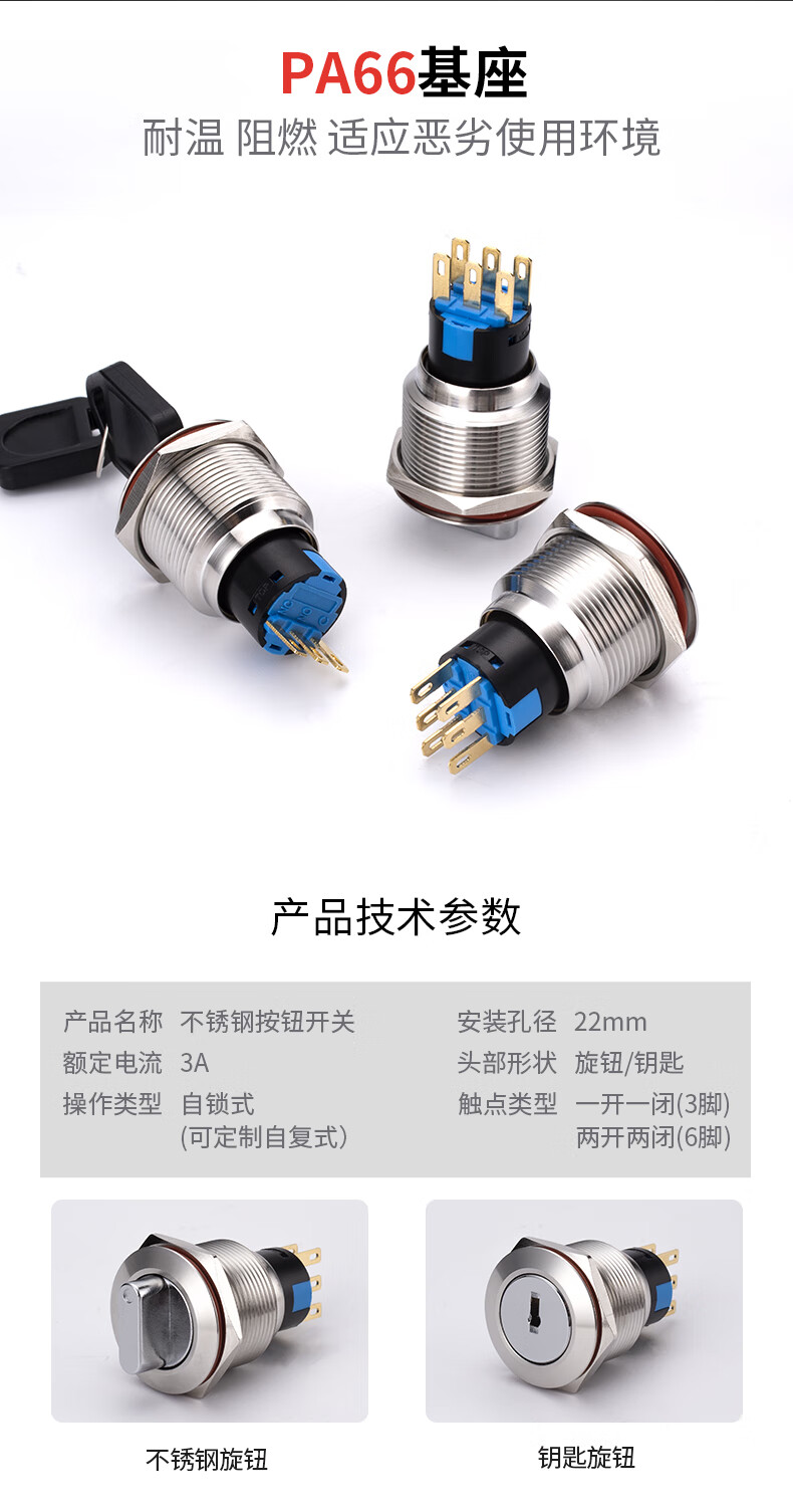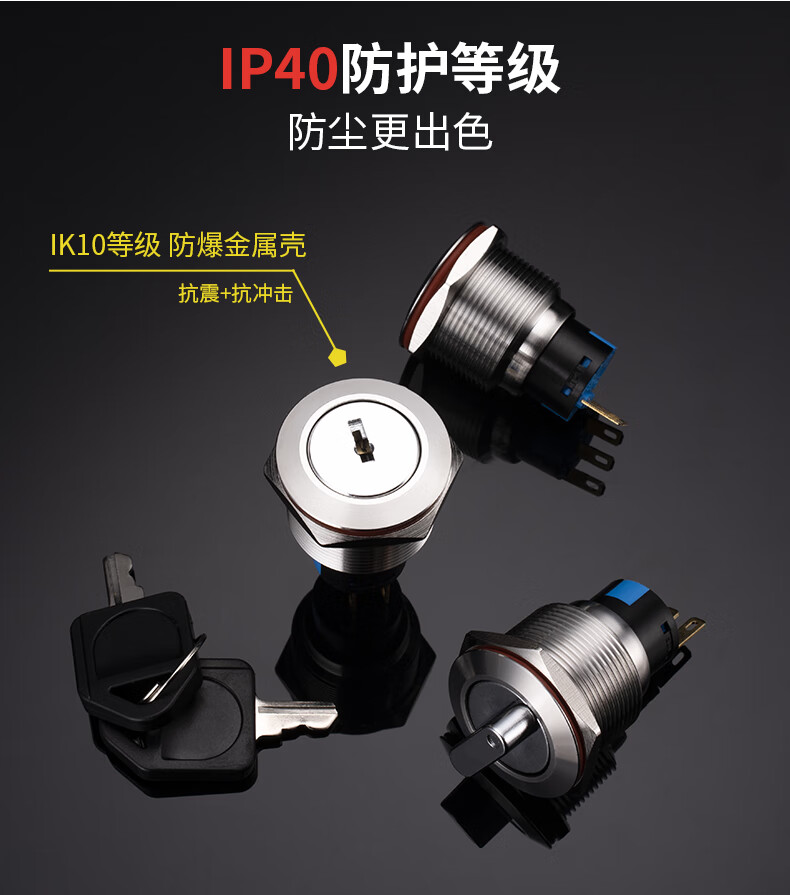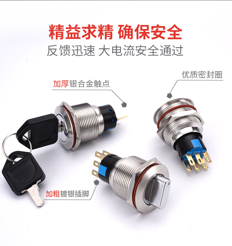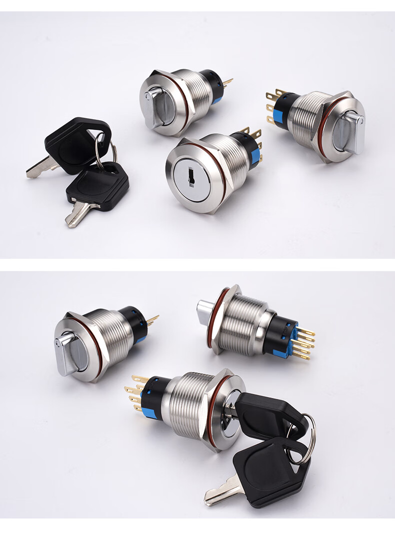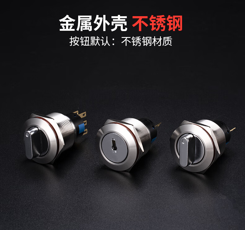 Suowei 19mm22MM metal knob key second gear third gear key button stainless steel selection conversion with light button switch 19MM second gear knob two normally open with plug-in