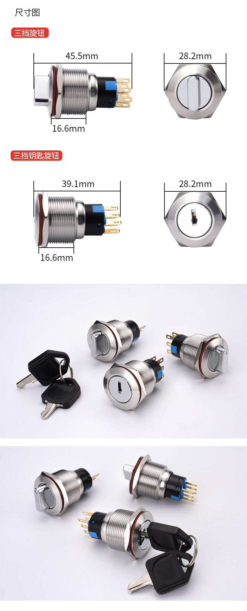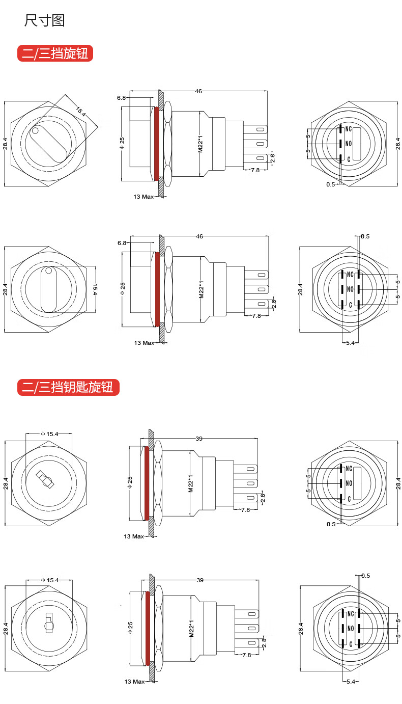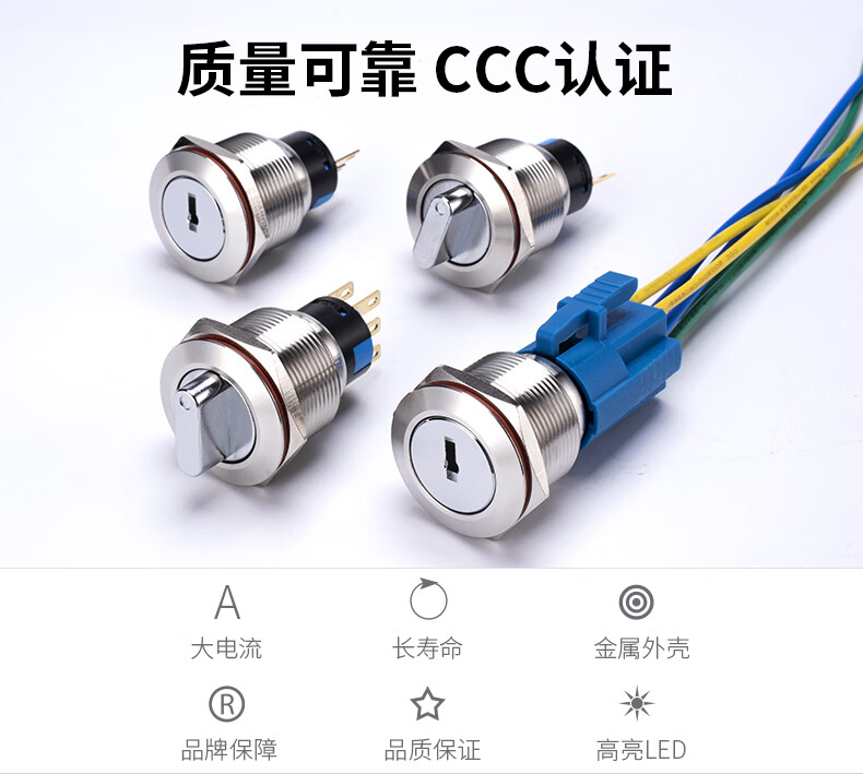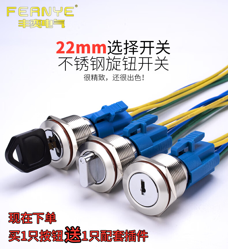 Suowei 19mm22MM metal knob key second gear third gear key button stainless steel selection conversion with light button switch 19MM second gear knob two normally open with plug-in