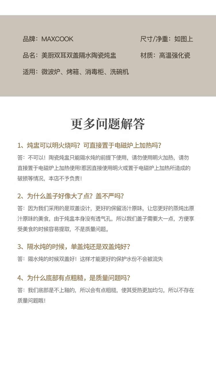 MAXCOOK stew pot, ceramic stew pot, bird's nest stew pot, chicken soup and egg custard, water-proof steaming pot, water-proof stew pot, ceramic stew pot 550ml MCTC7254