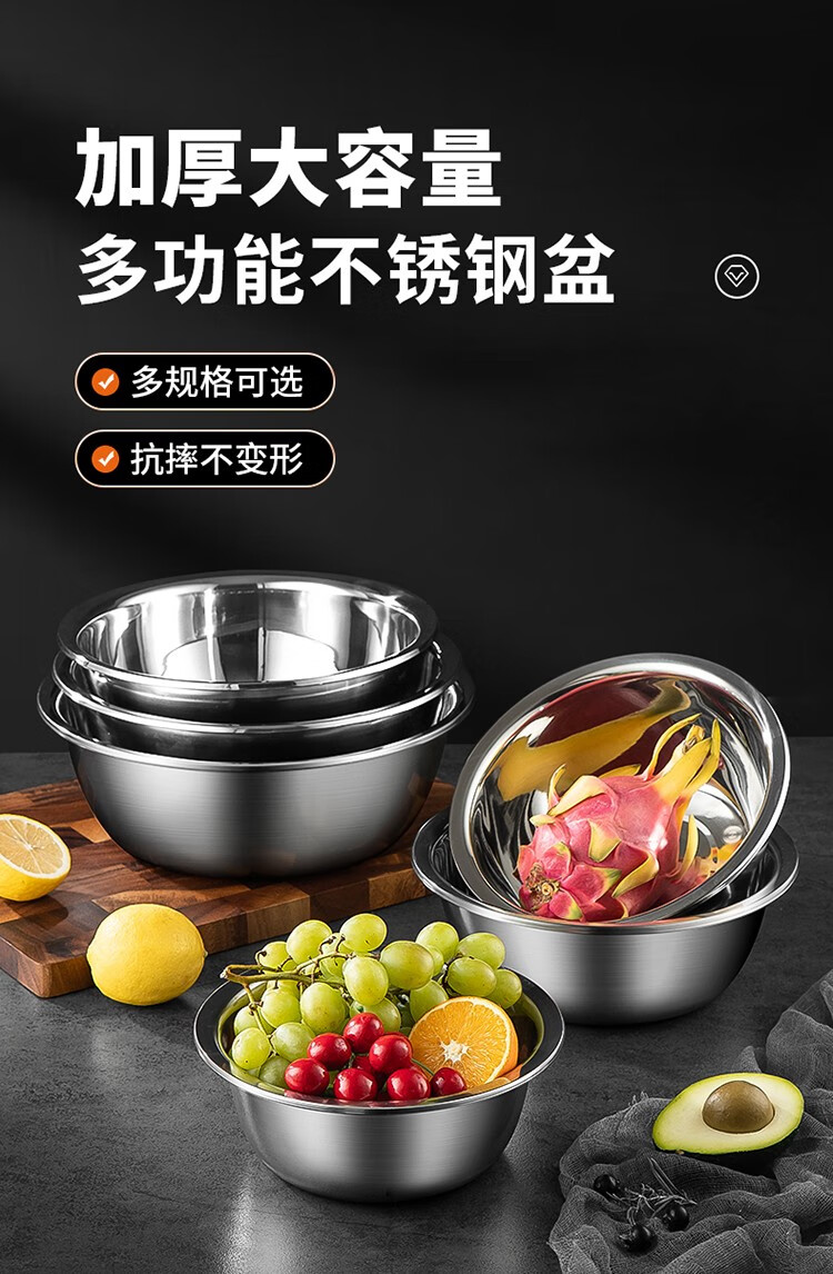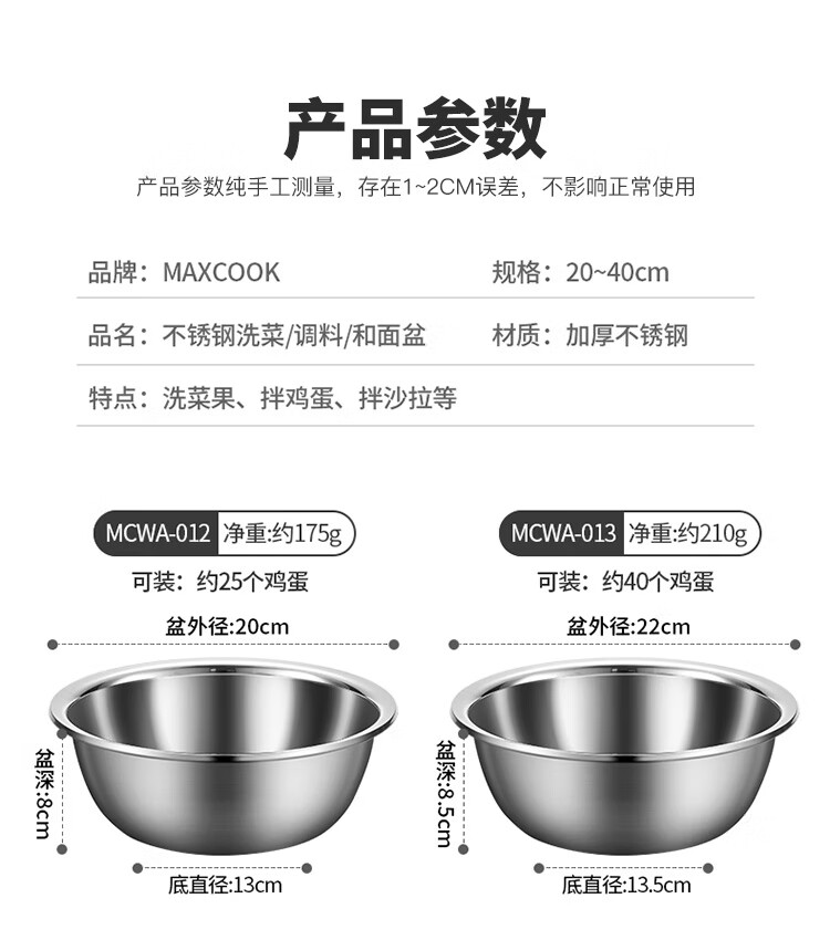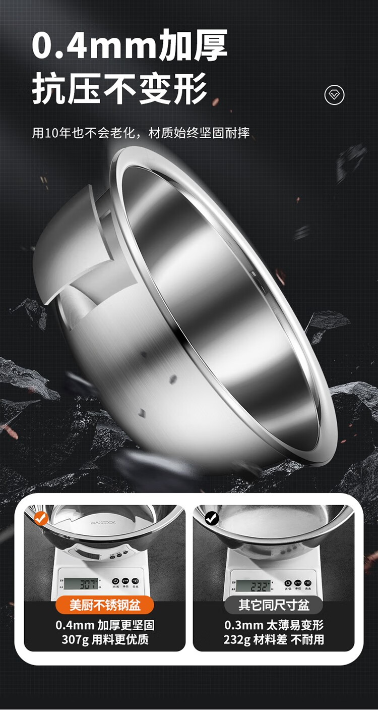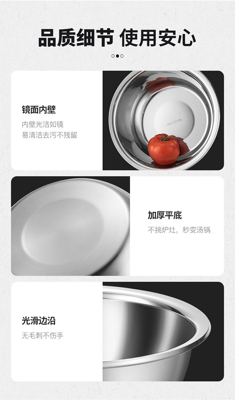 MAXCOOK stainless steel basin, dish basin, seasoning basin and basin, enlarged and thickened saucepan, stainless steel vegetable basin and basin, stainless steel saucepan 30CM/MCWA-017