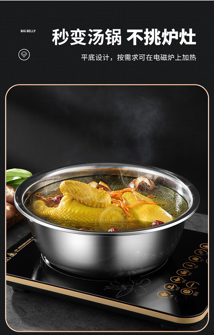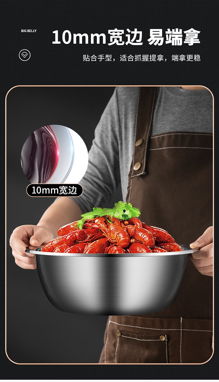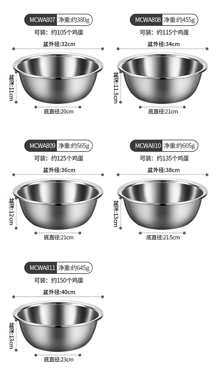MAXCOOK stainless steel basin, dish basin, seasoning basin and basin, enlarged and thickened saucepan, stainless steel vegetable basin and basin, stainless steel saucepan 30CM/MCWA-017