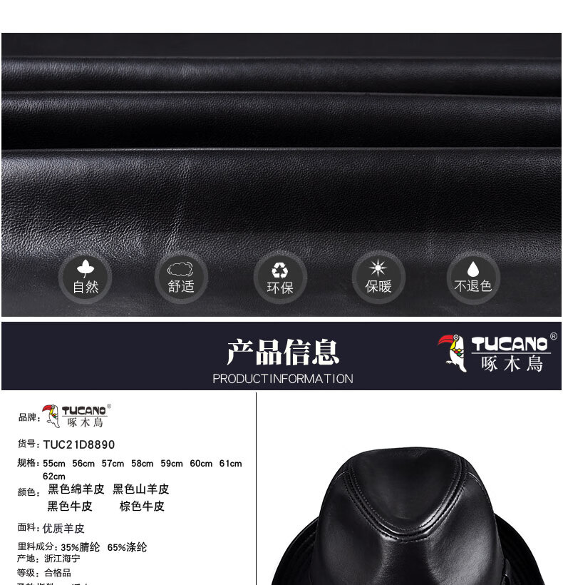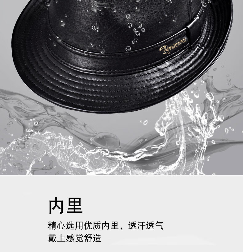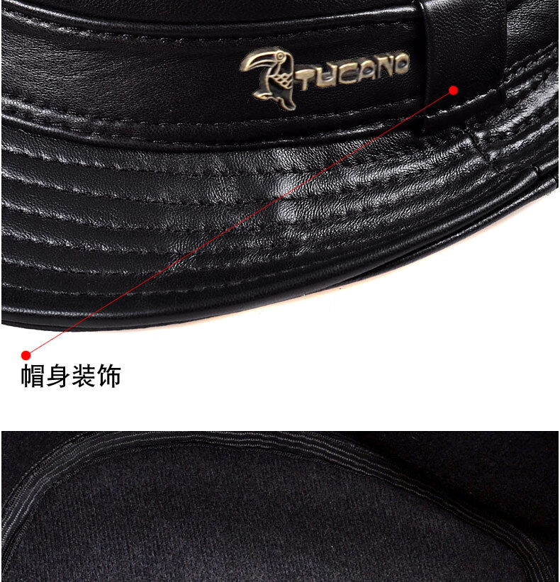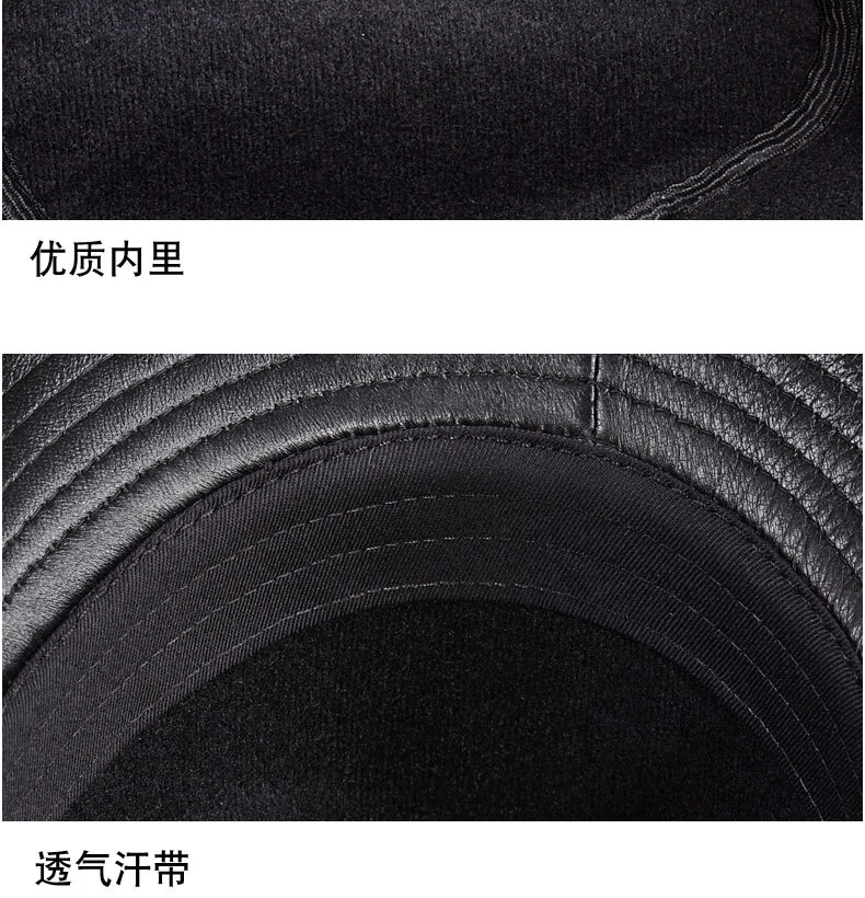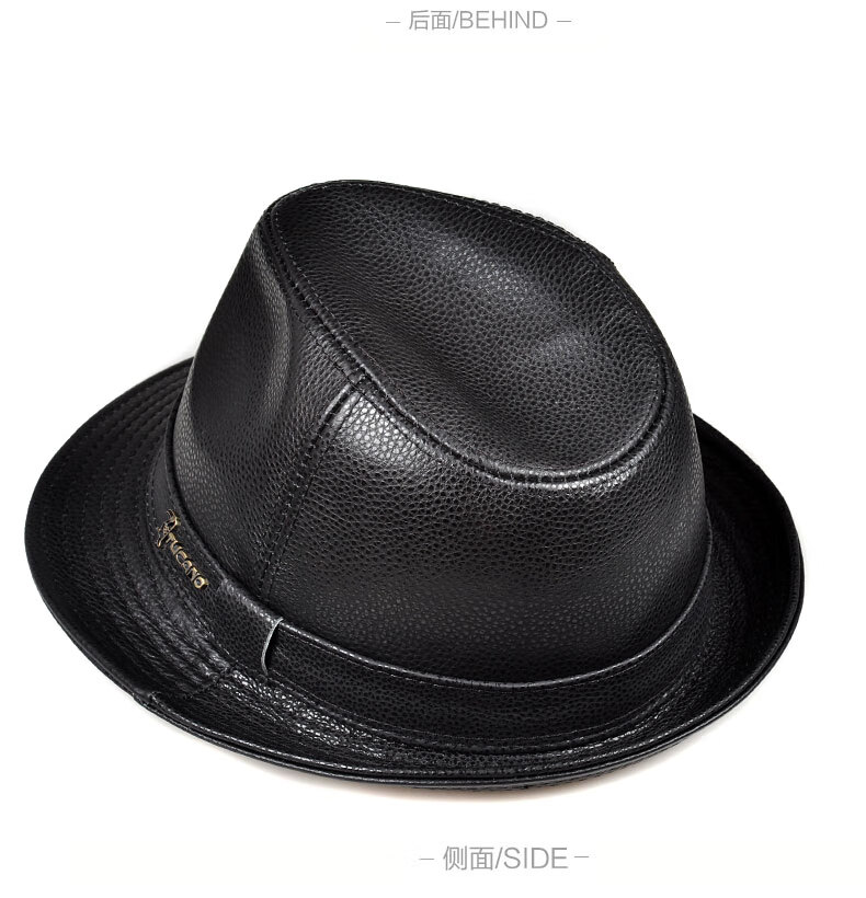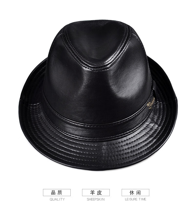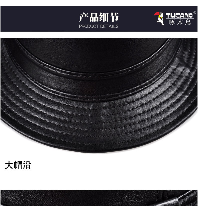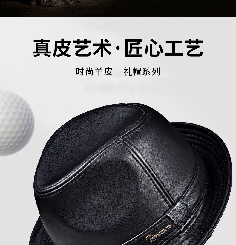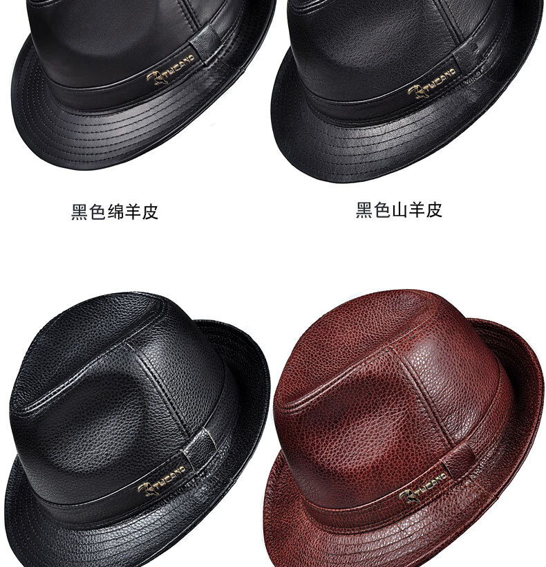 Woodpecker middle-aged and elderly men's genuine leather jazz gentleman hat spring and autumn warm sheepskin hat casual trendy winter elderly cowhide hat black sheepskin XL (57-58cm)