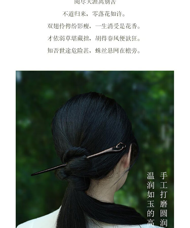 Beautiful black sandalwood hairpin, ancient style wooden hairpin, high-end, new Chinese style, simple daily hairpin, hairpin flower hair accessories gift, ebony mountain river hairpin