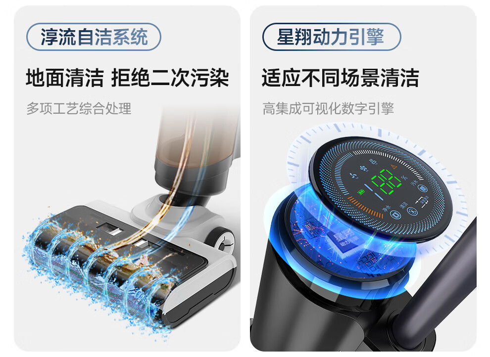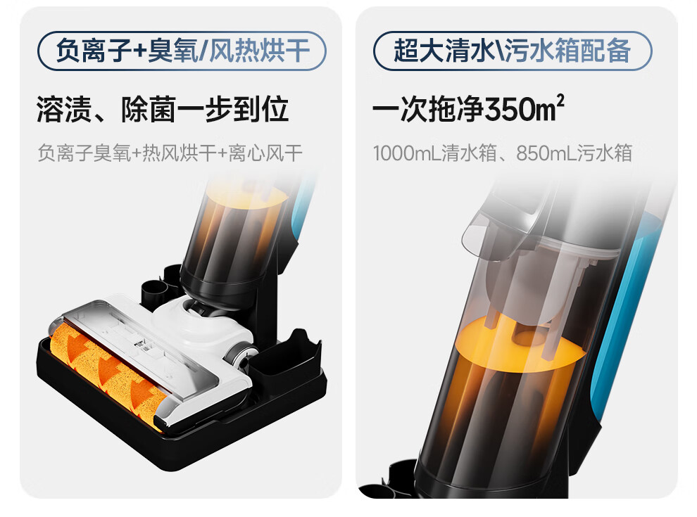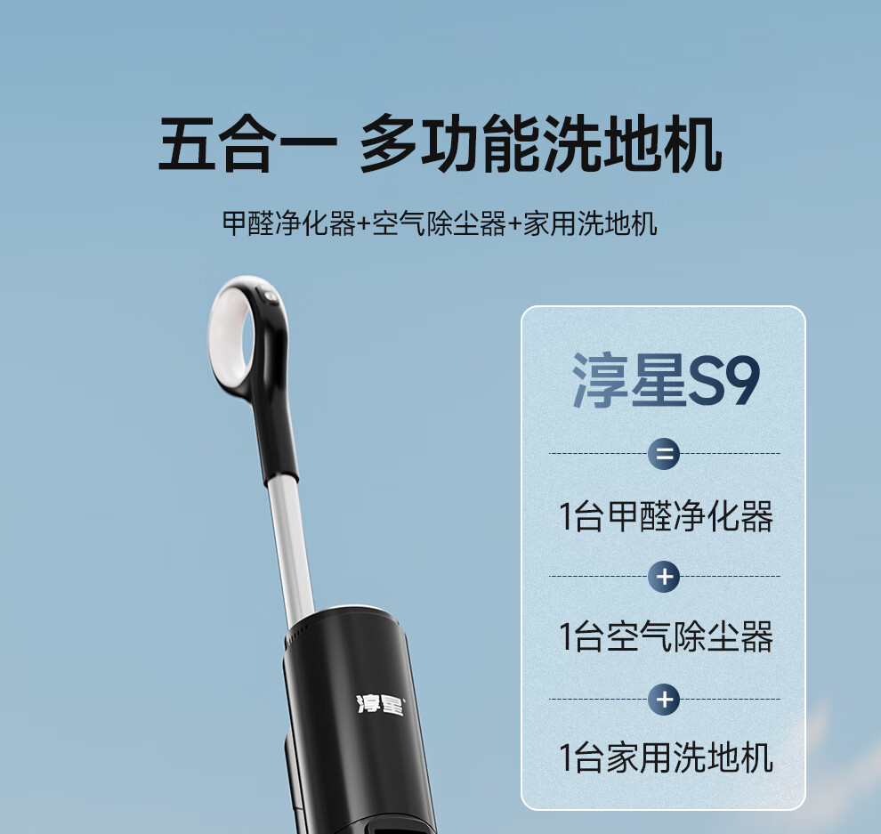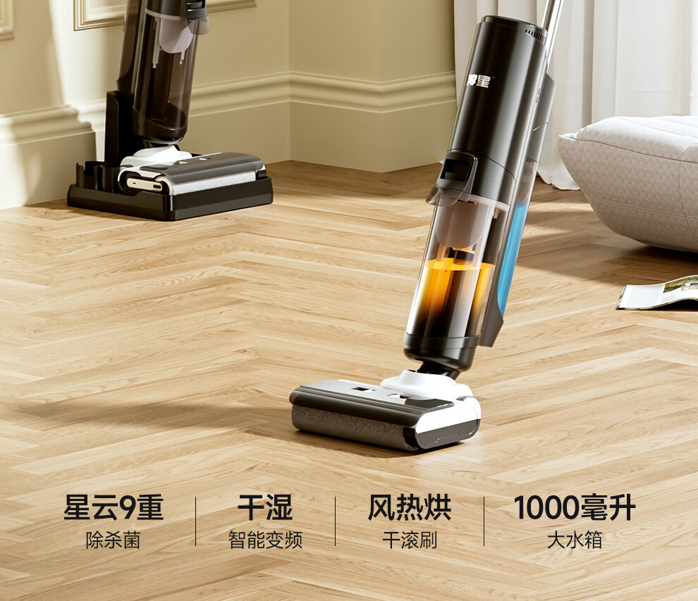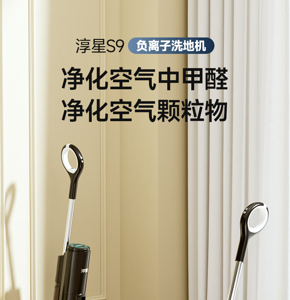 Chunxing floor scrubber, mopping and suction all-in-one home wireless handheld sweeper, smart vacuum cleaner, self-cleaning and sterilization, three-in-one electric mop, anti-winding, double welt, upgraded wind drying, S9 white, air purification, formaldehyde removal, ozone sterilization, thermal drying