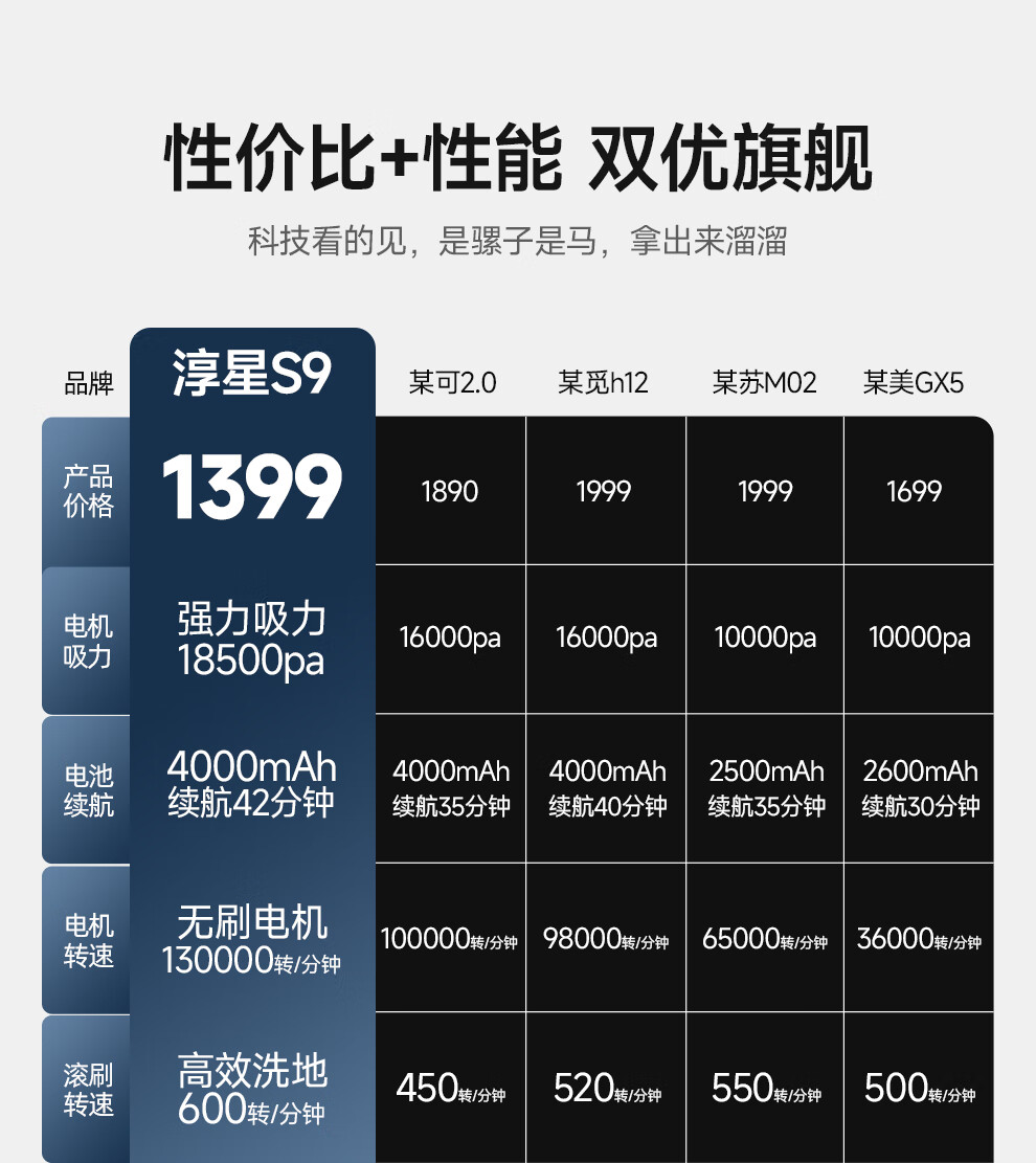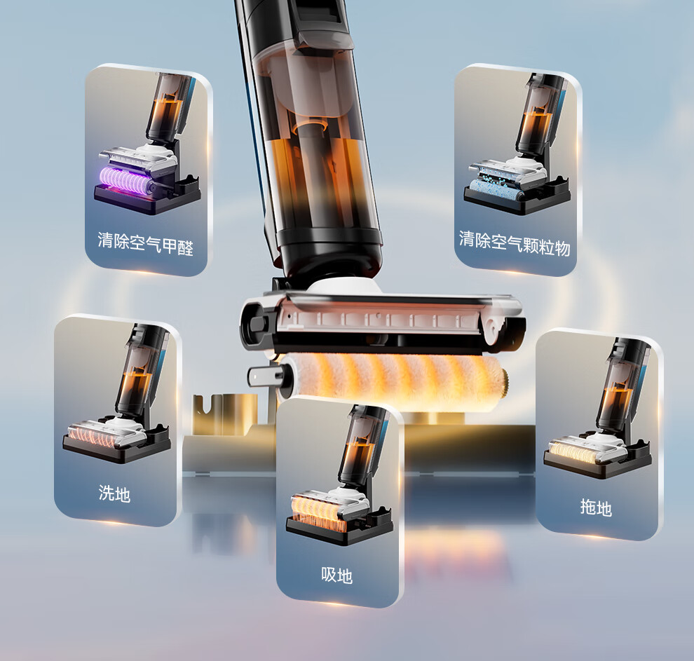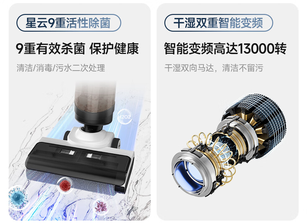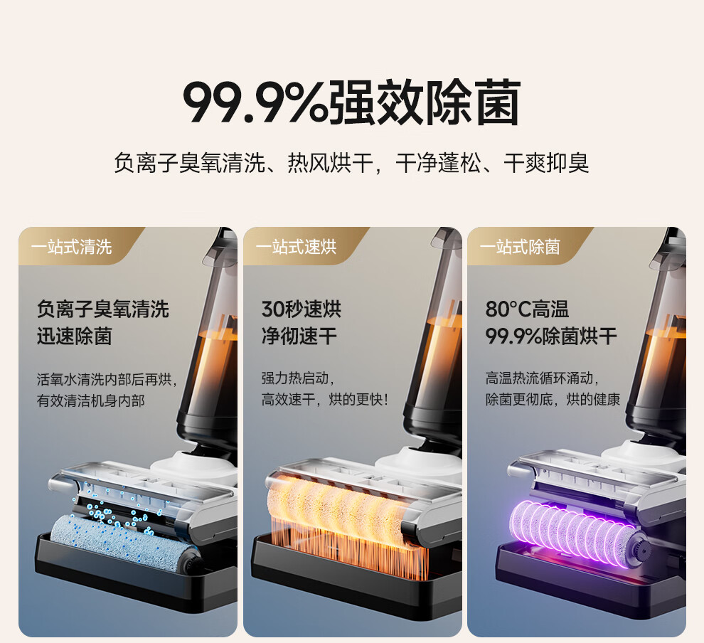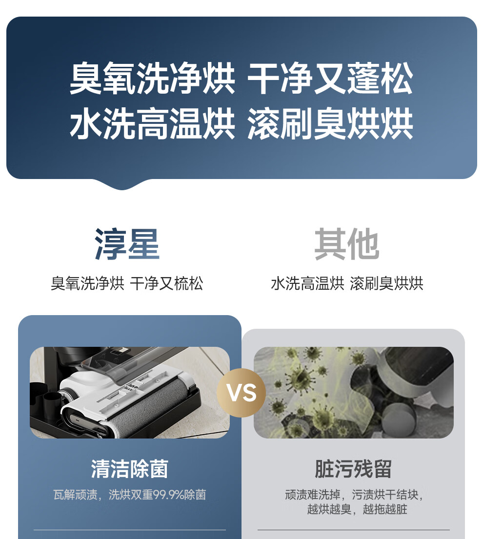 Chunxing floor scrubber, mopping and suction all-in-one home wireless handheld sweeper, smart vacuum cleaner, self-cleaning and sterilization, three-in-one electric mop, anti-winding, double welt, upgraded wind drying, S9 white, air purification, formaldehyde removal, ozone sterilization, thermal drying