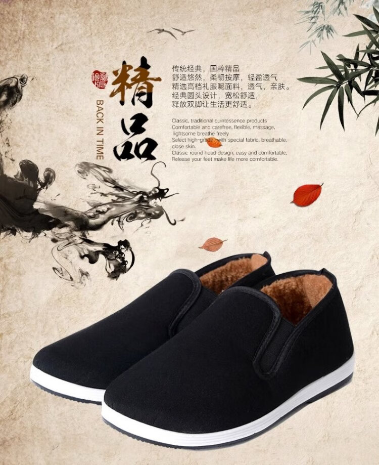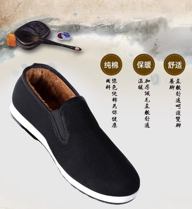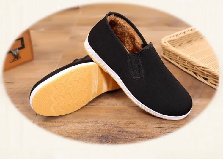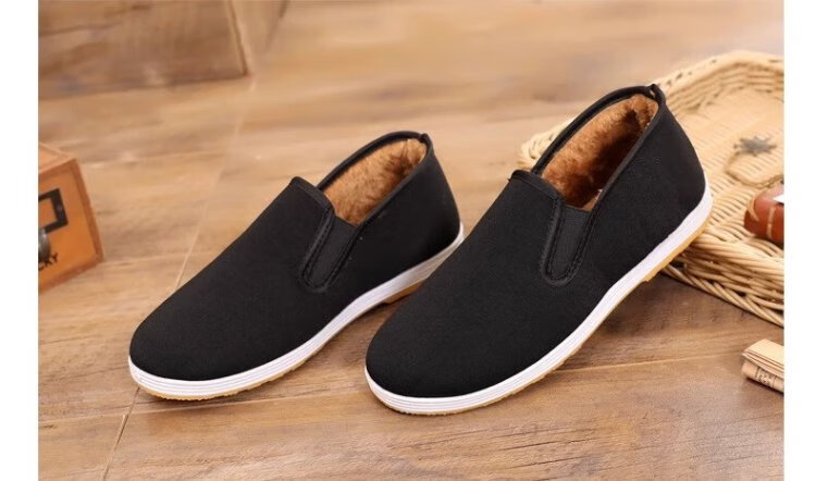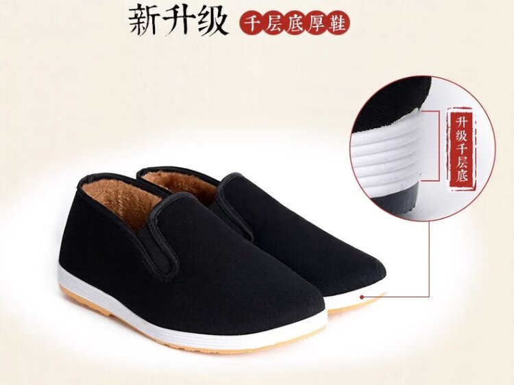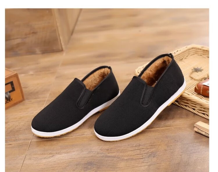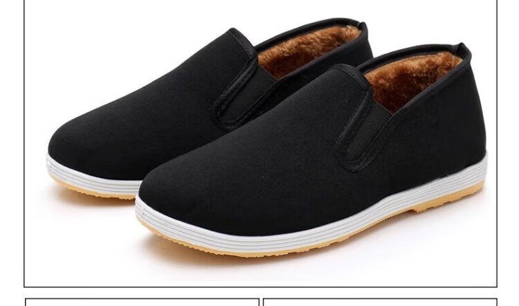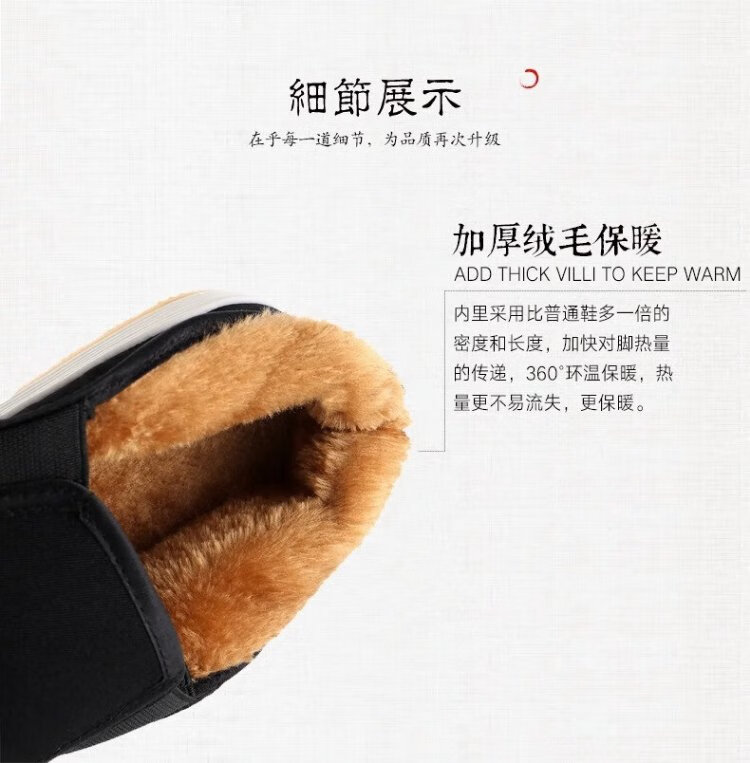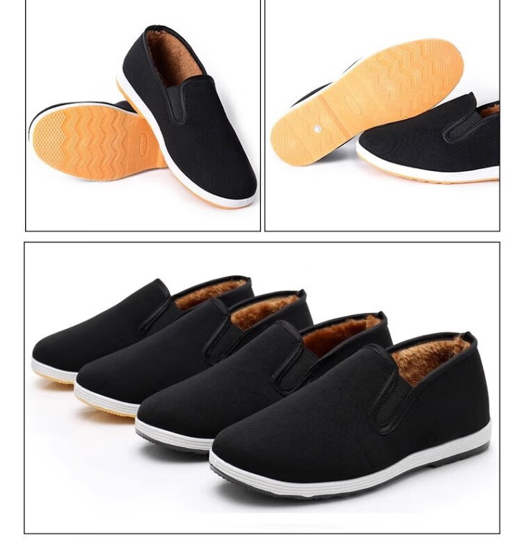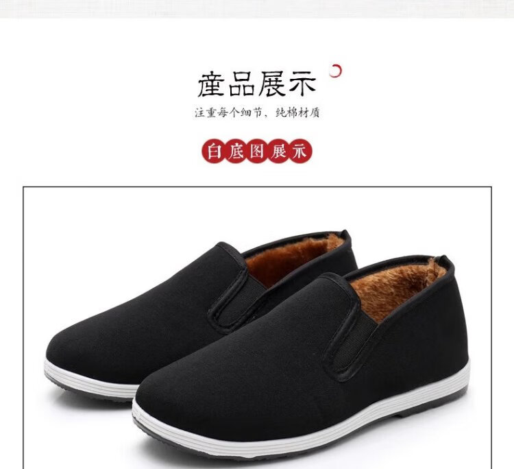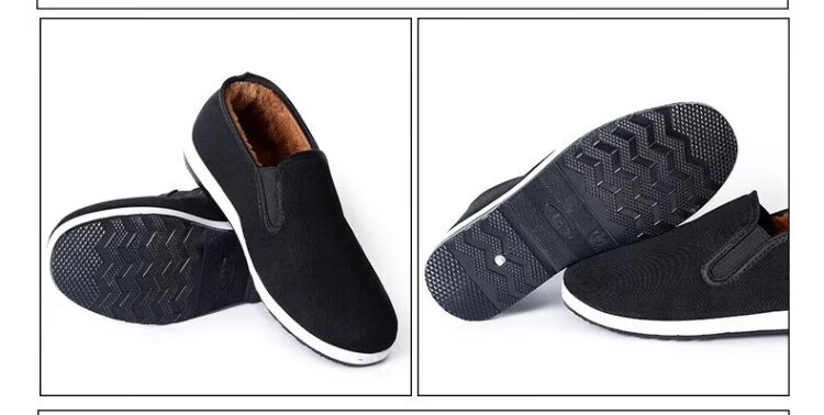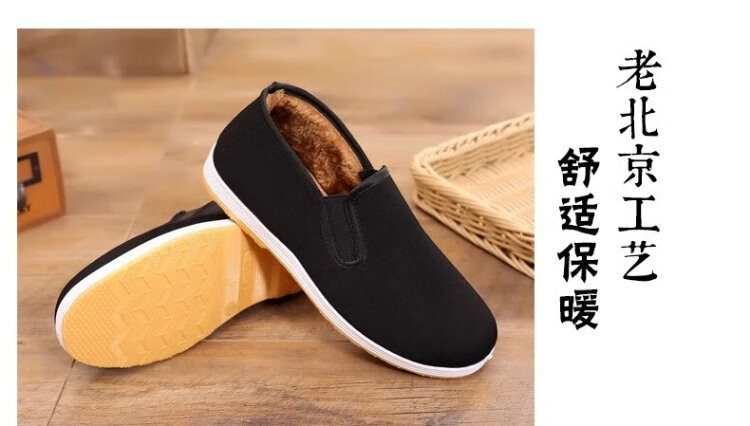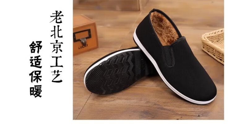 Old Beijing cloth shoes men's winter velvet thickened warm cotton shoes men's slip-on soft-soled work shoes anti-slip shoes for the elderly black-soled cotton shoes 40