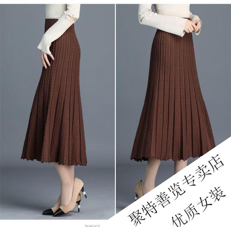 Woodpecker (TUCANO) Wool Knitted Skirt Women's Thickened Mid-Length 2025 Autumn and Winter New Wool One-Step Skirt Pleated Hip Skirt Dark Gray M Size Recommended 96-115 Jin Jin equals 0.5 kg