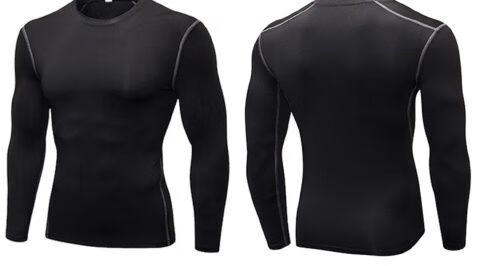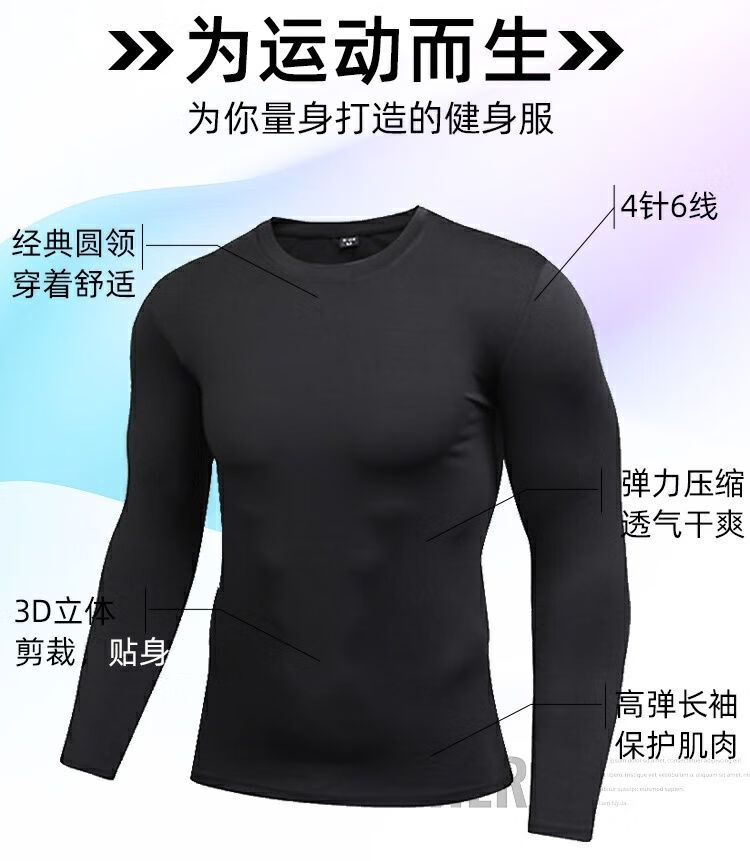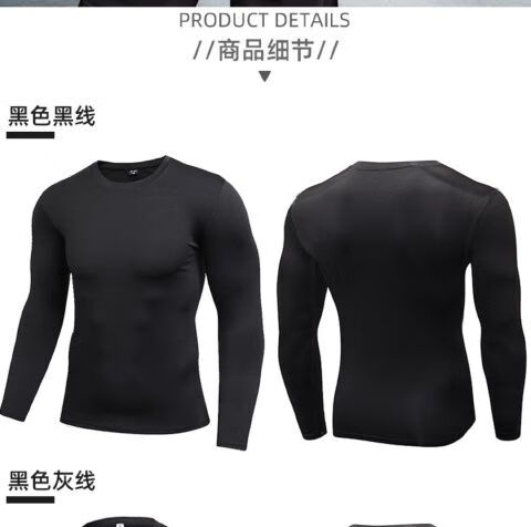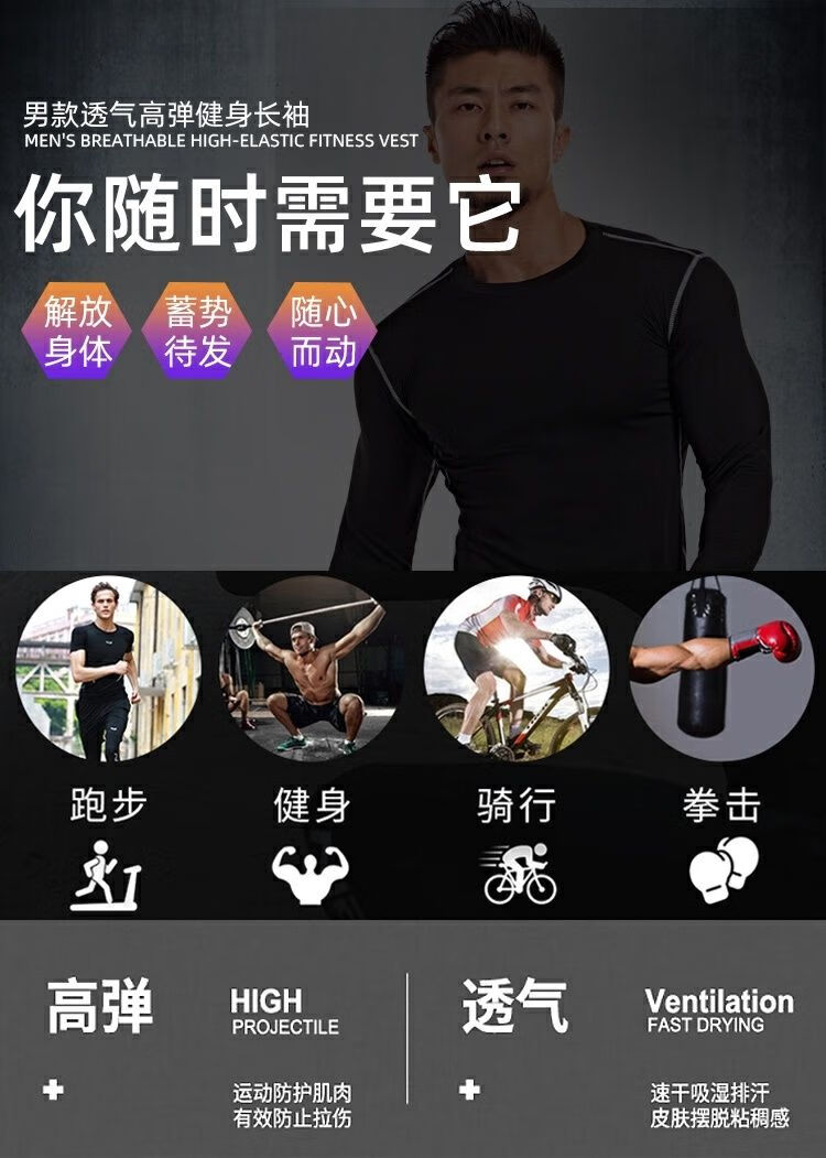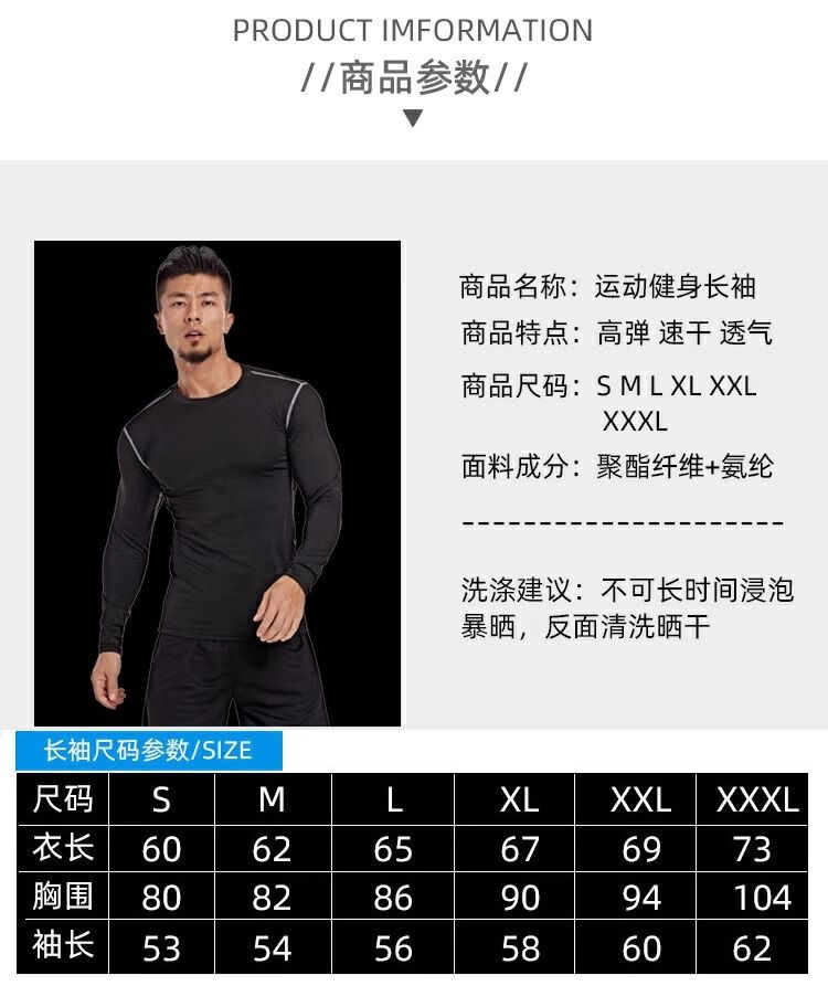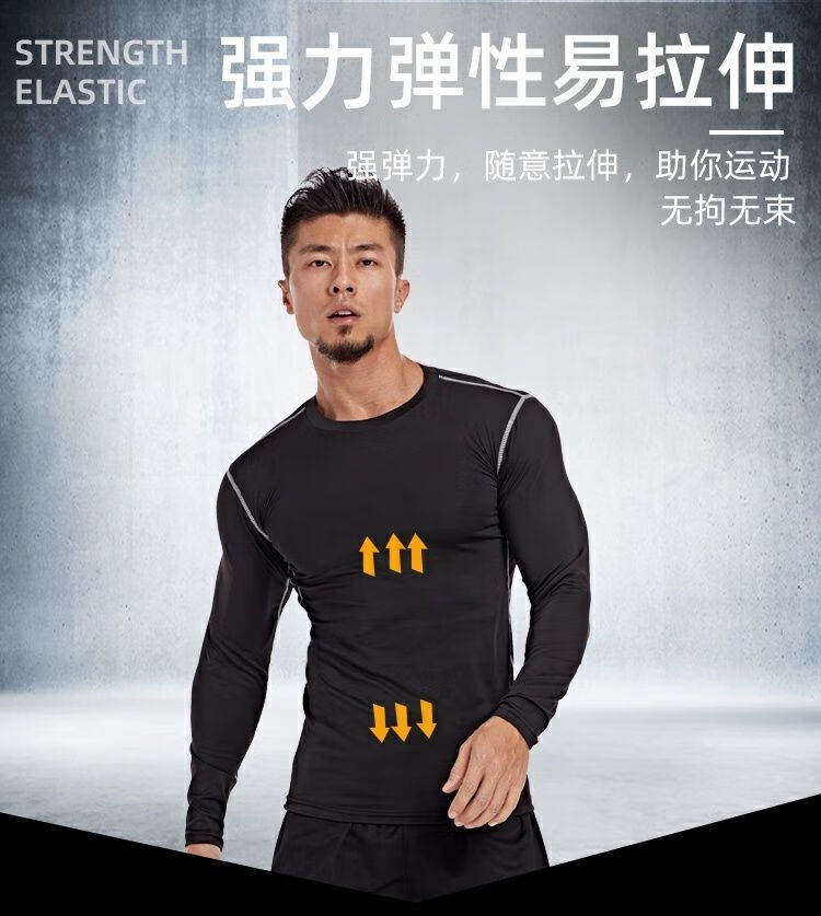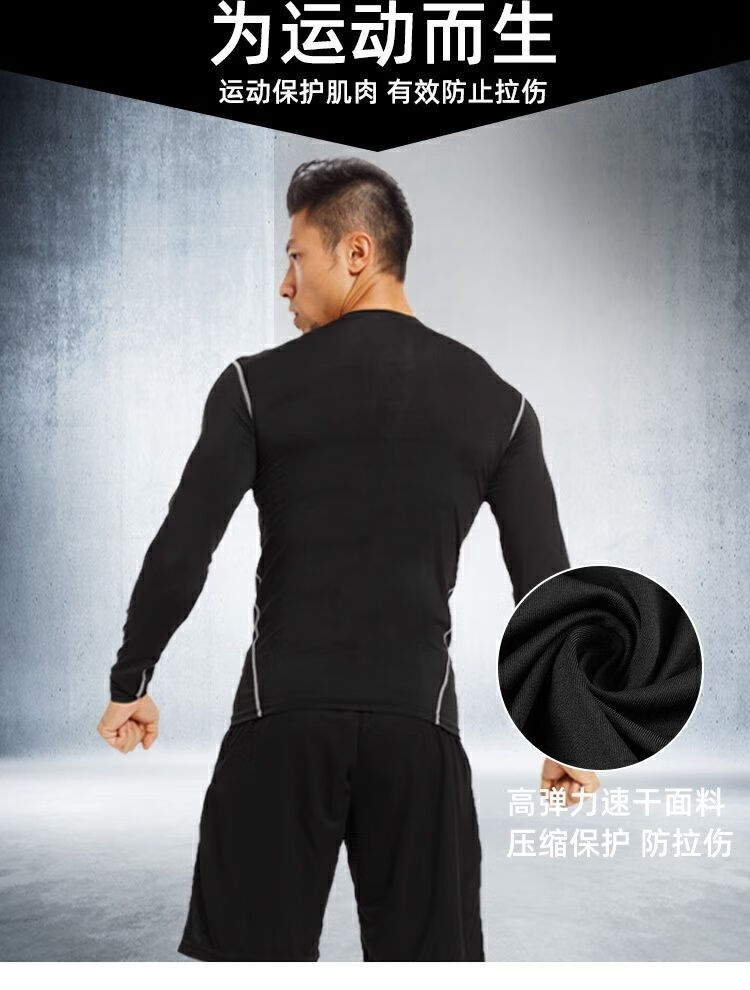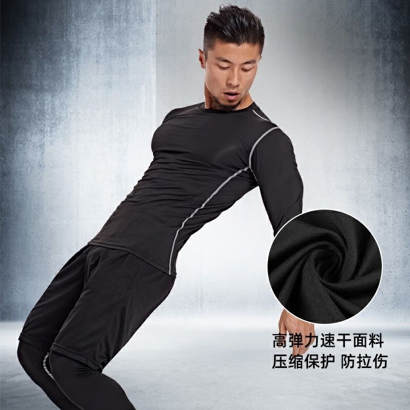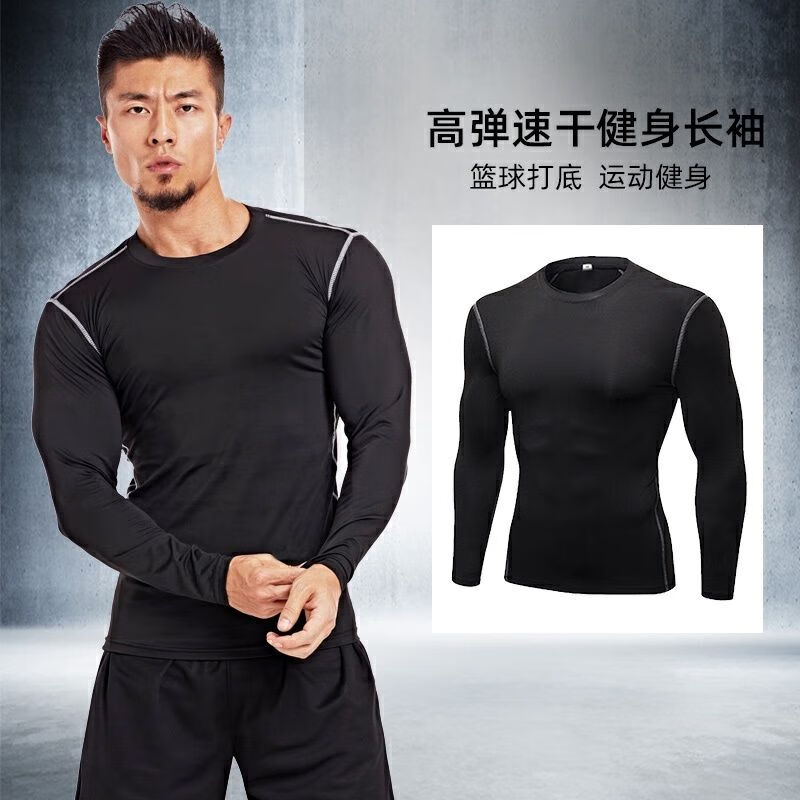 FANAOGE Stanwick sports tights long-sleeved men's gym running breathable sweat-absorbent quick-drying T-shirt high elastic basket classic long-sleeved black gray line L120-140Jin Jin equals 0.5 kg