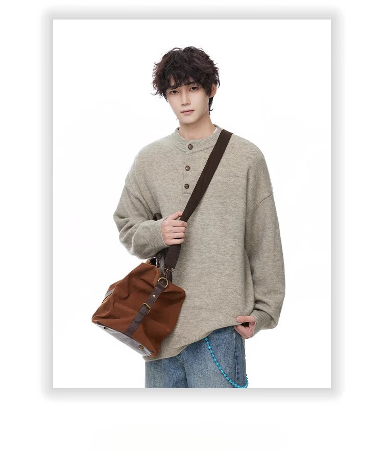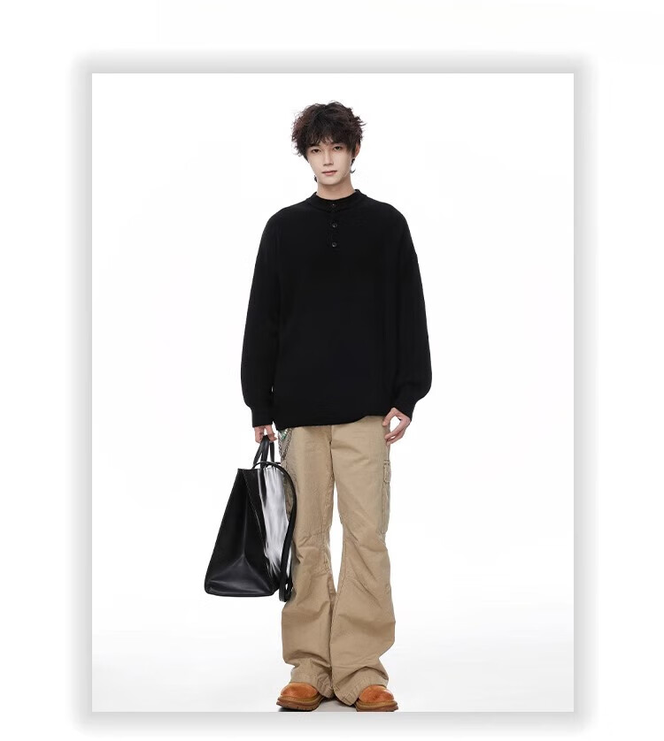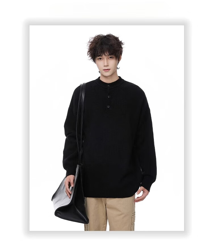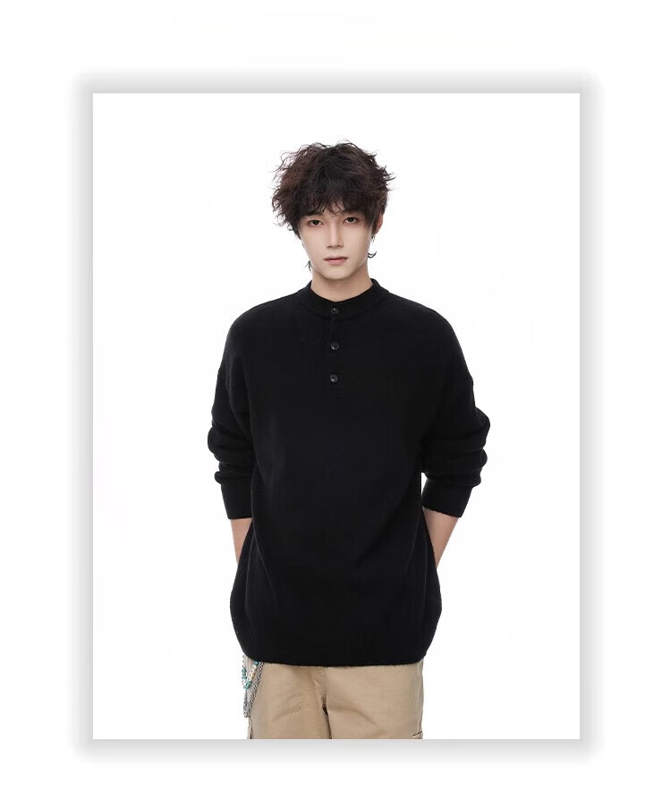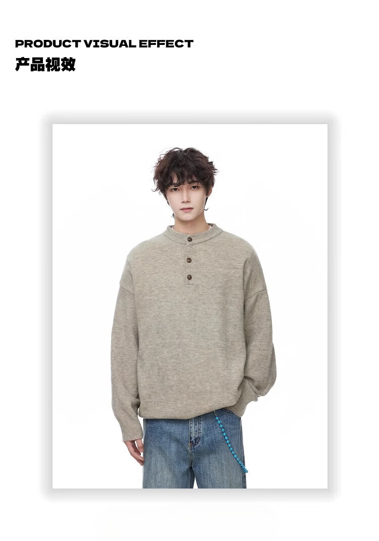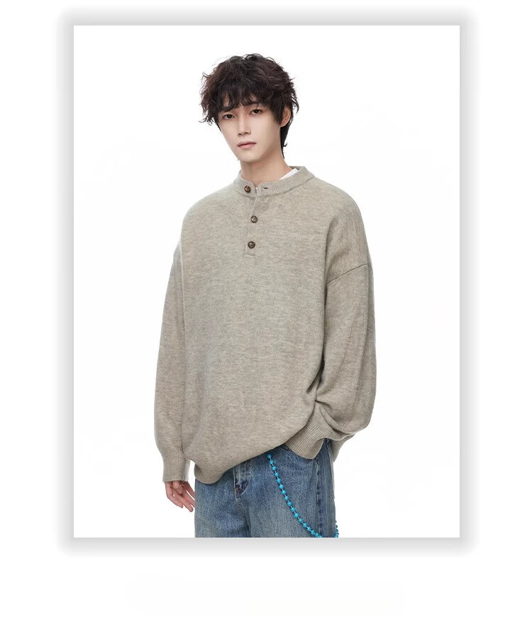 OEMG Gray Henley Collar Sweater Men's Autumn and Winter Trendy Retro Lazy Sweater Tops Warm Sweater Jacket Light Gray XL Recommended 110-130Jin Jin equals 0.5kg