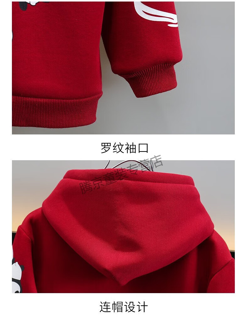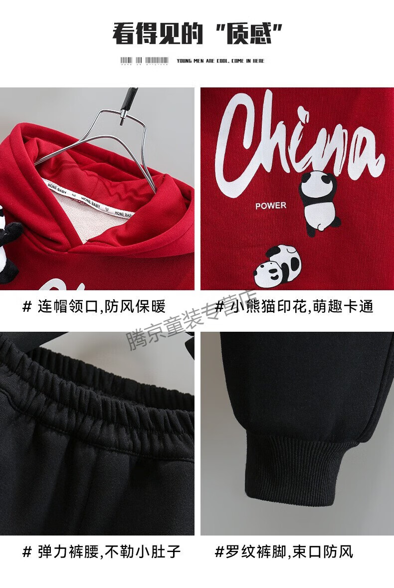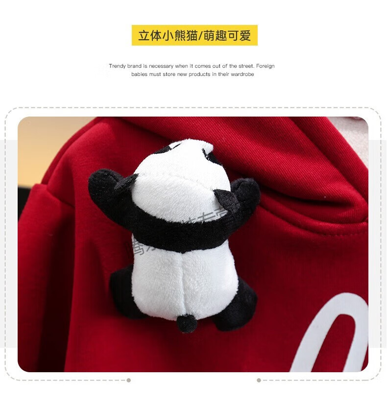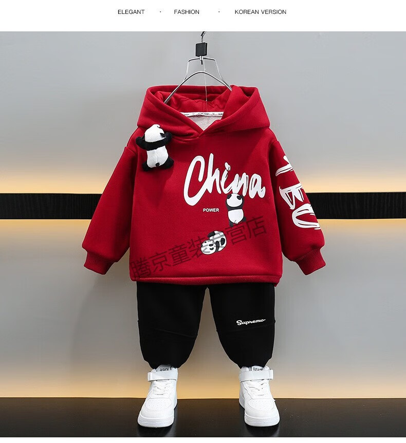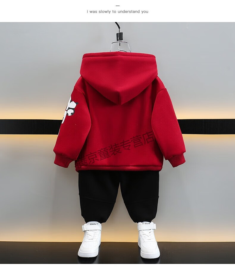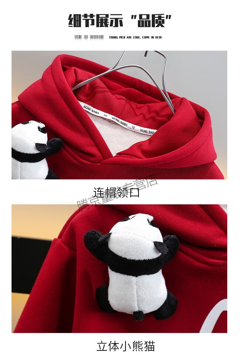 Disney (Disney) Boys' Velvet Suit New Baby Clothes Autumn and Winter Children's Sweatshirts Korean Style Warm Hooded Two-piece Set for Small and Medium-sized Children Burgundy Panda Pendant Set (Fleece) 90 Size Recommended 1-2 Years Old Weight 15-25 Jin Jin is equal to 0.5 kg