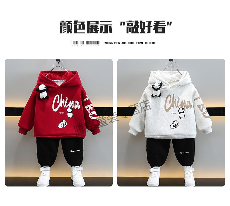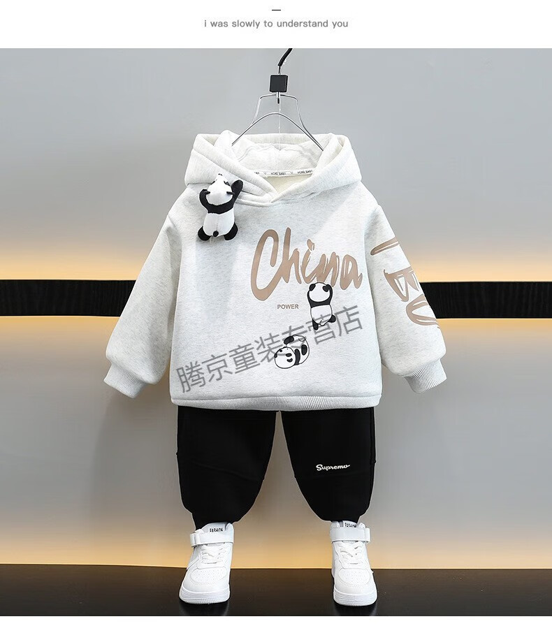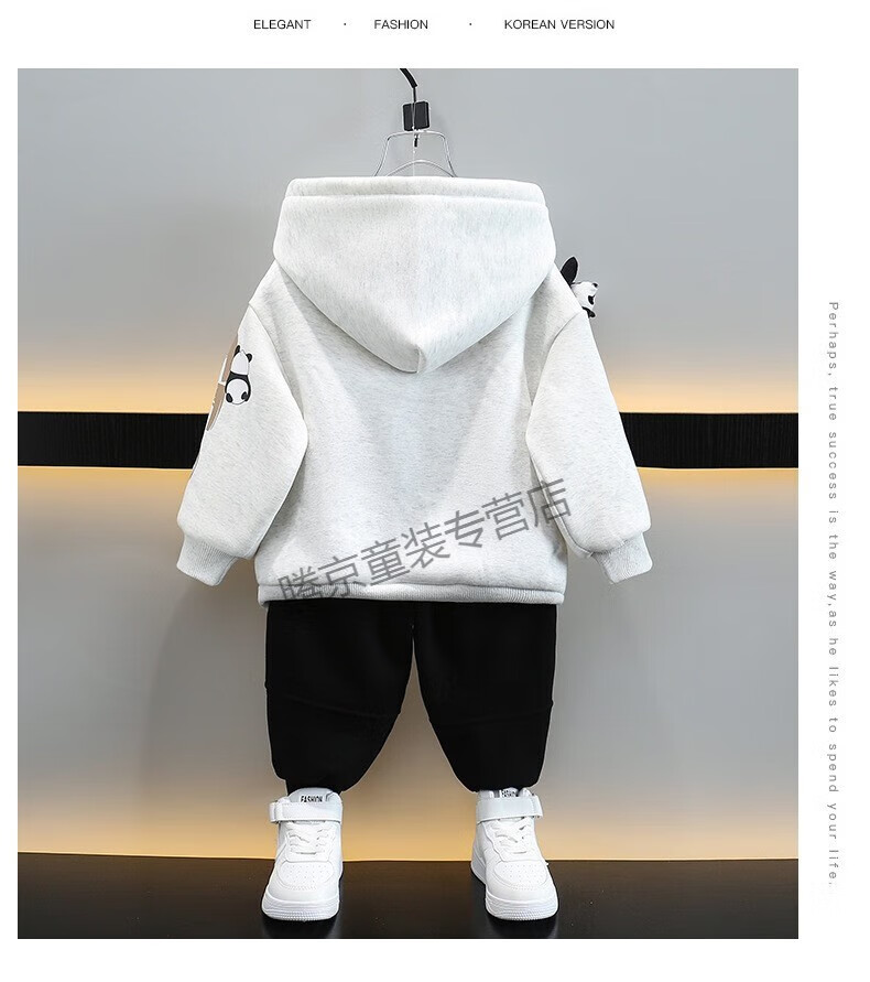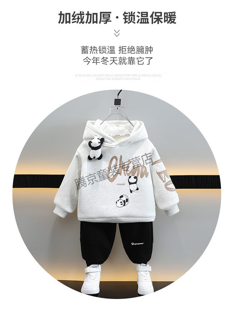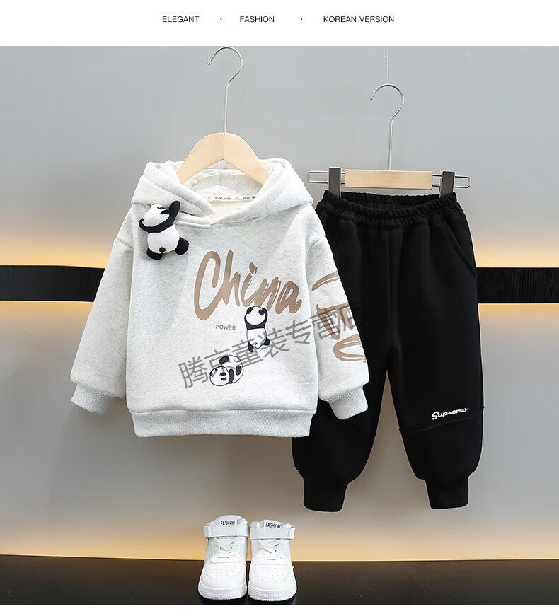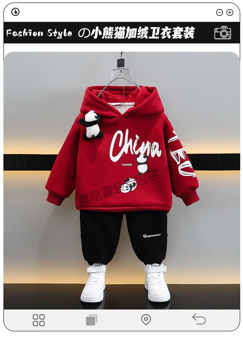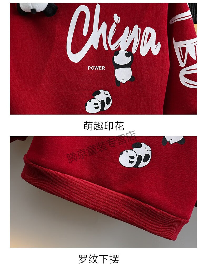Disney (Disney) Boys' Velvet Suit New Baby Clothes Autumn and Winter Children's Sweatshirts Korean Style Warm Hooded Two-piece Set for Small and Medium-sized Children Burgundy Panda Pendant Set (Fleece) 90 Size Recommended 1-2 Years Old Weight 15-25 Jin Jin is equal to 0.5 kg