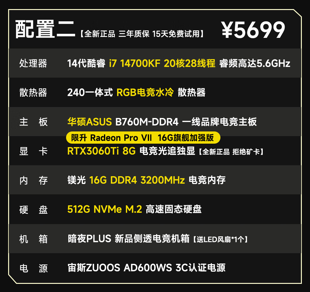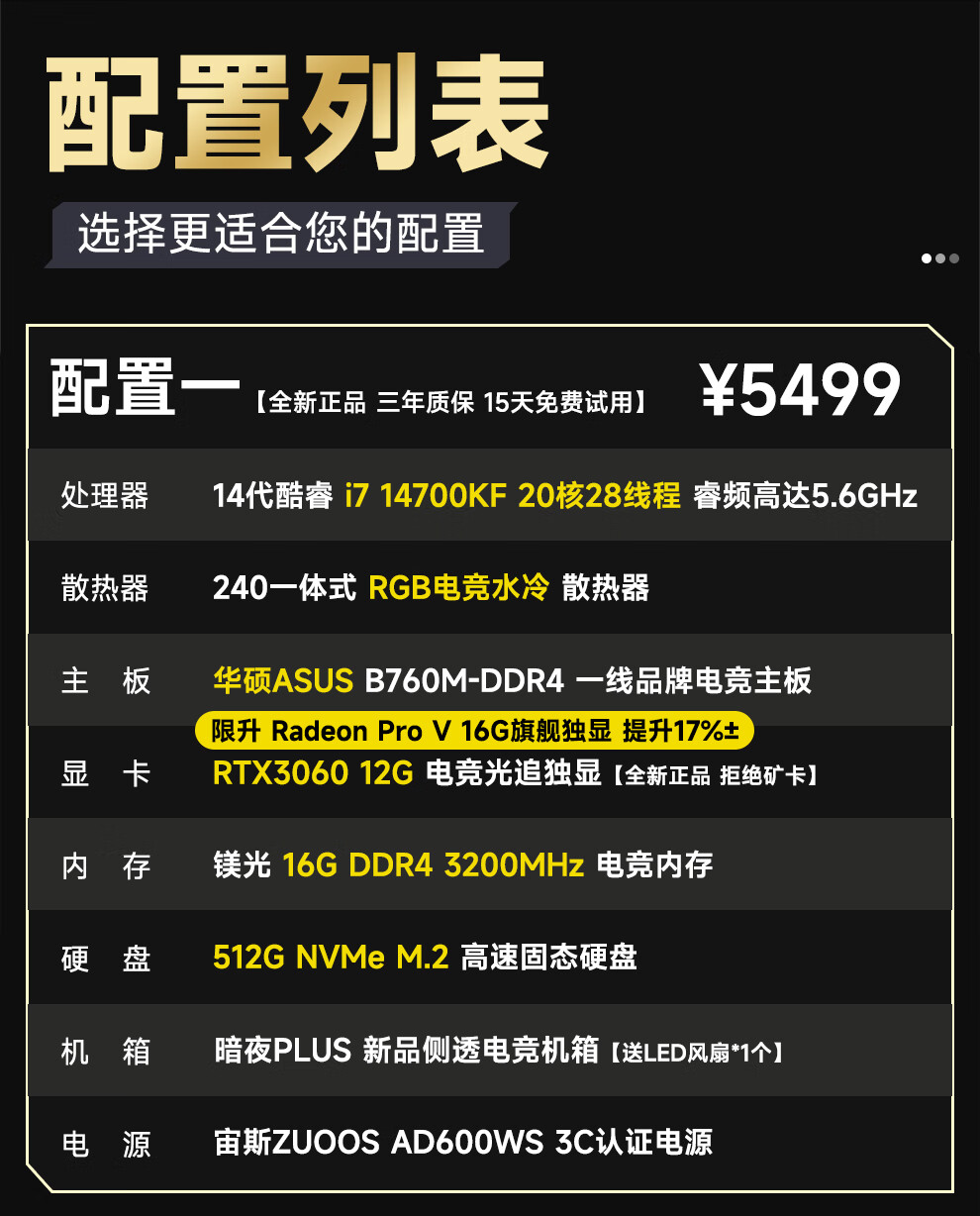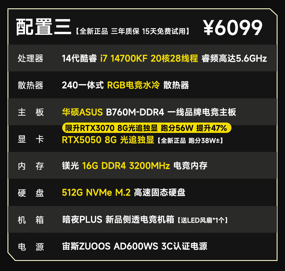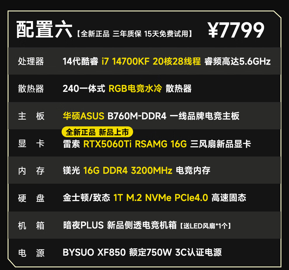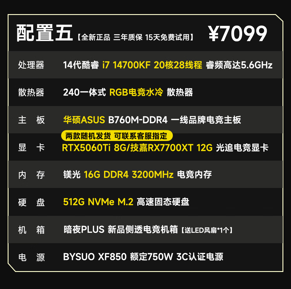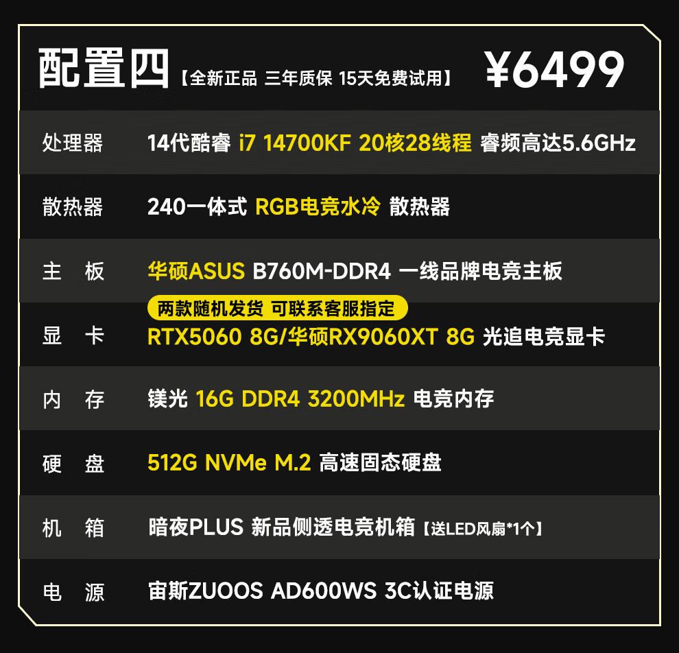 ASUS 14th generation i7 14700KF/RTX5060/5060Ti e-sports high-end game design rendering live broadcast editing desktop assembly computer host complete machine DIY assembly machine i7 14700KF丨RTX5060丨Configuration Four