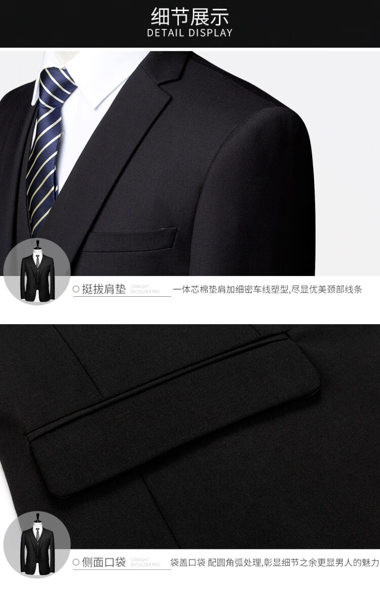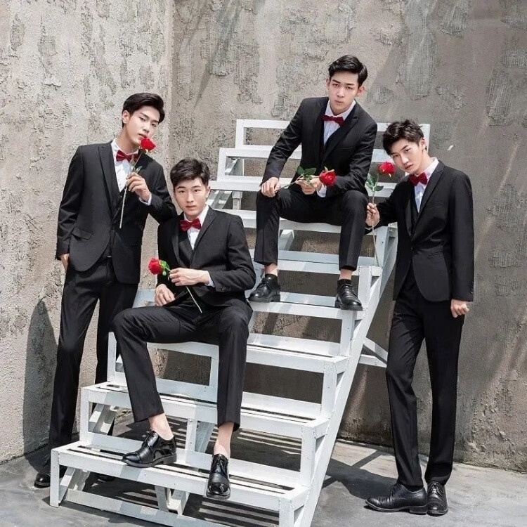 Rent groomsmen suit three-piece suit for spring, autumn and winter groom wedding graduation interview brother formal chorus men's dress rent/black jacket + black trousers + white shirt + bow tie 5XL