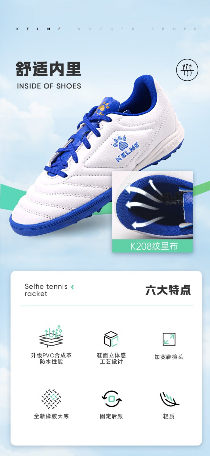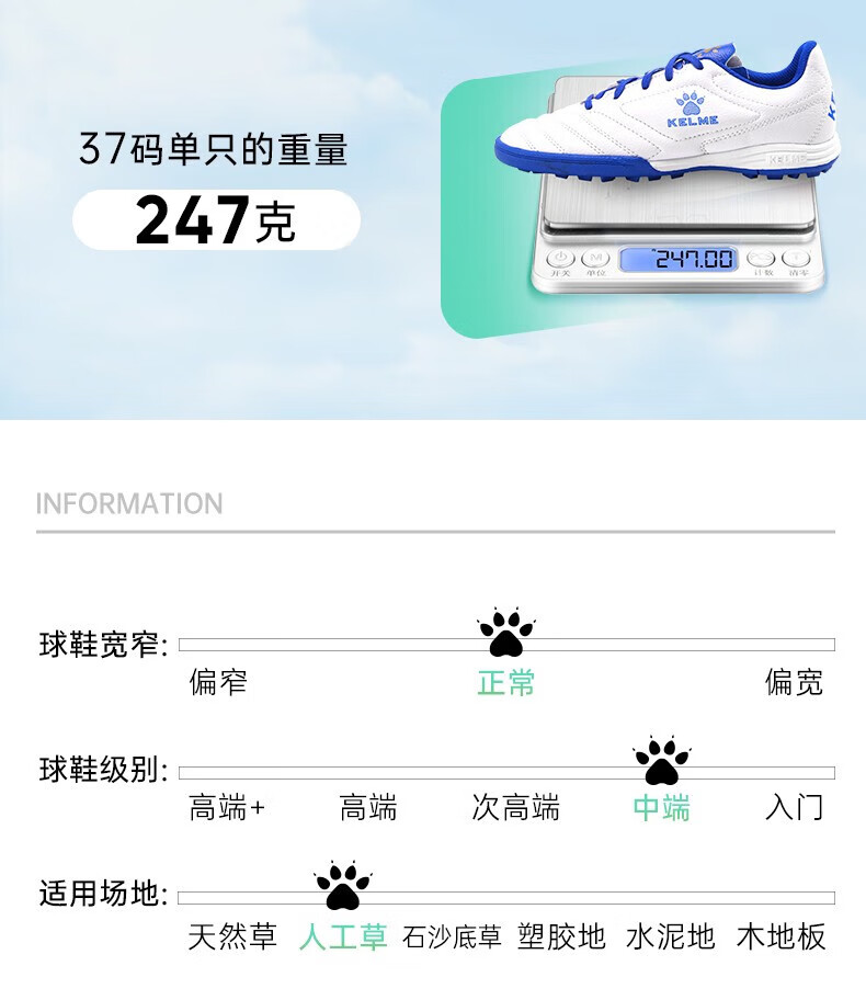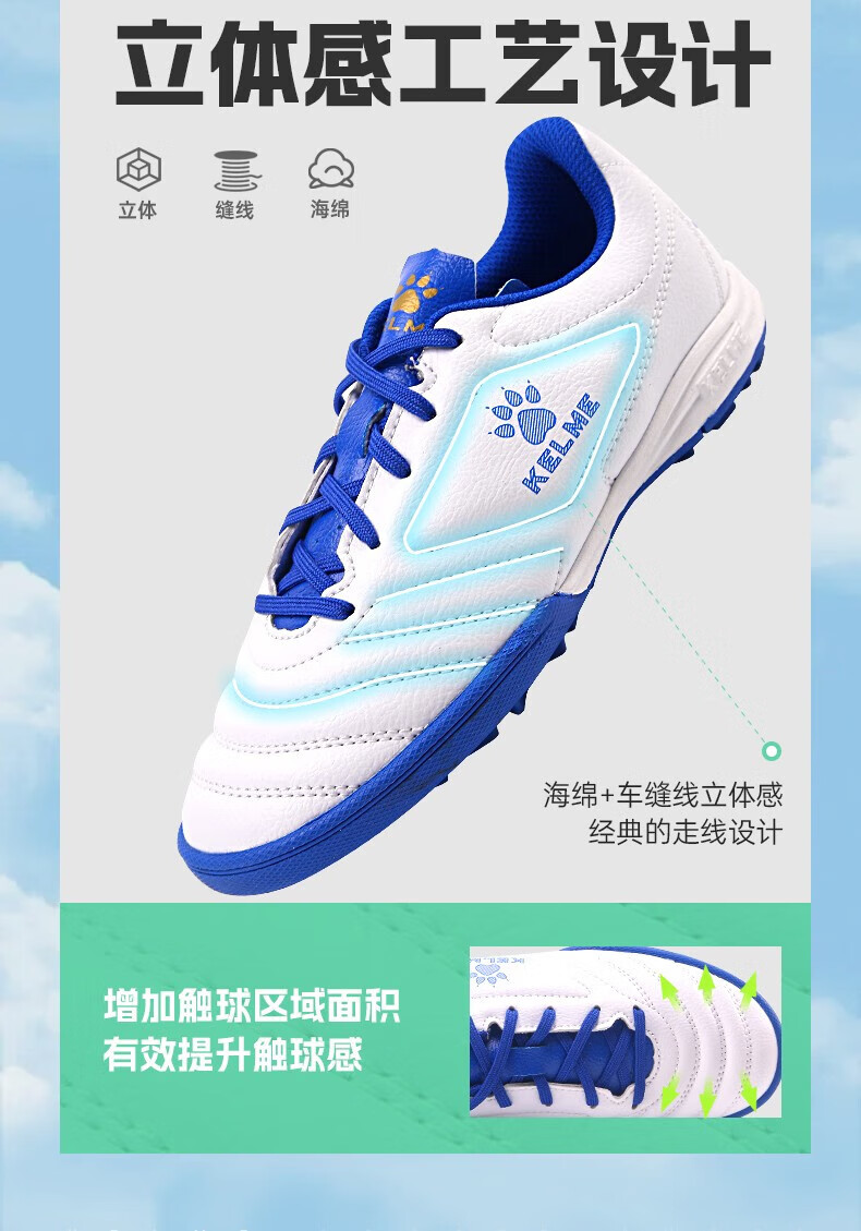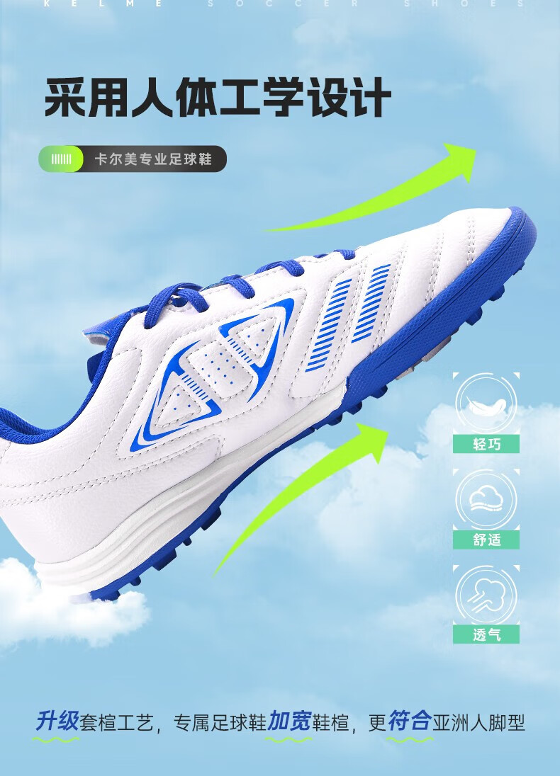 KELME football shoes men's game TF broken spike sneakers students breathable non-slip sneakers black 38