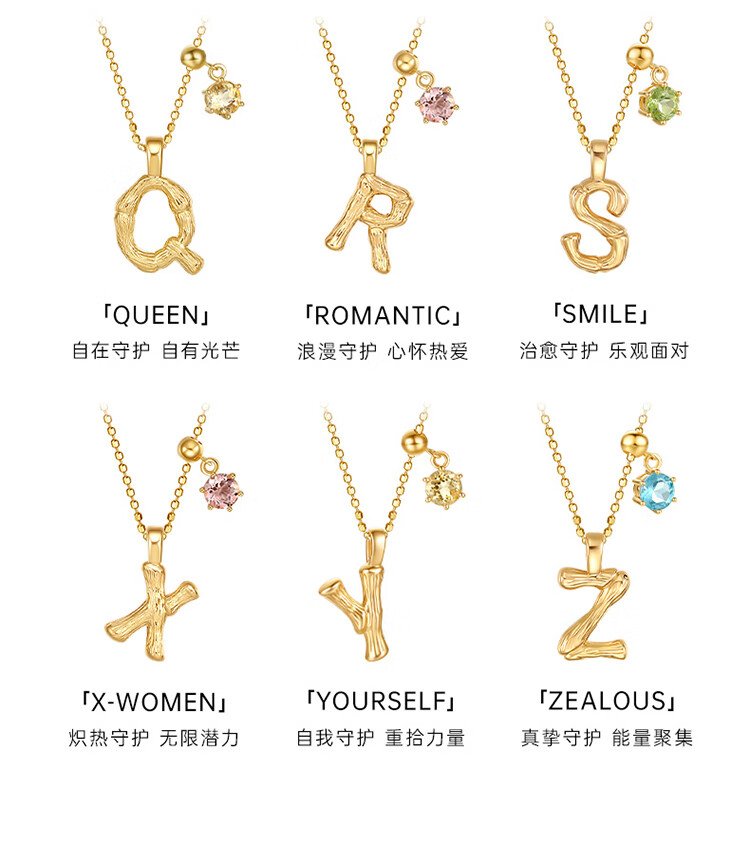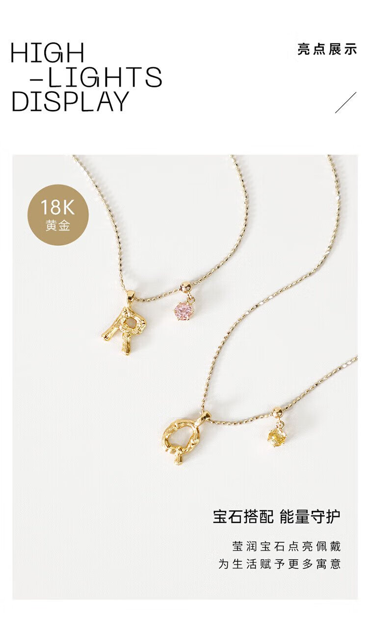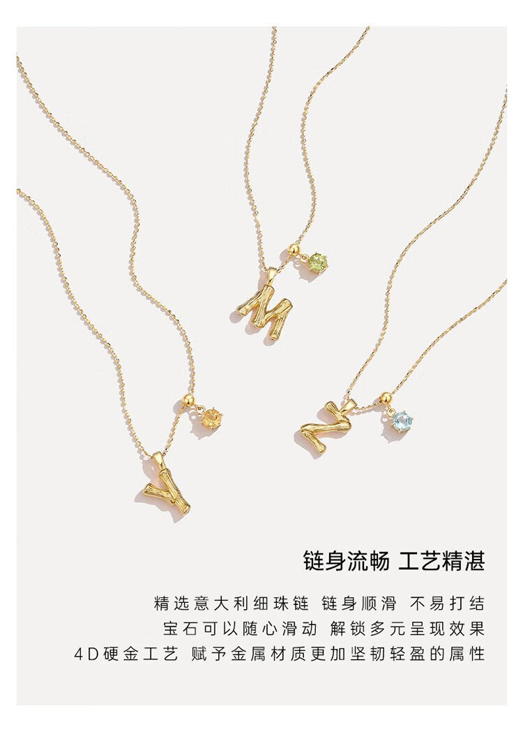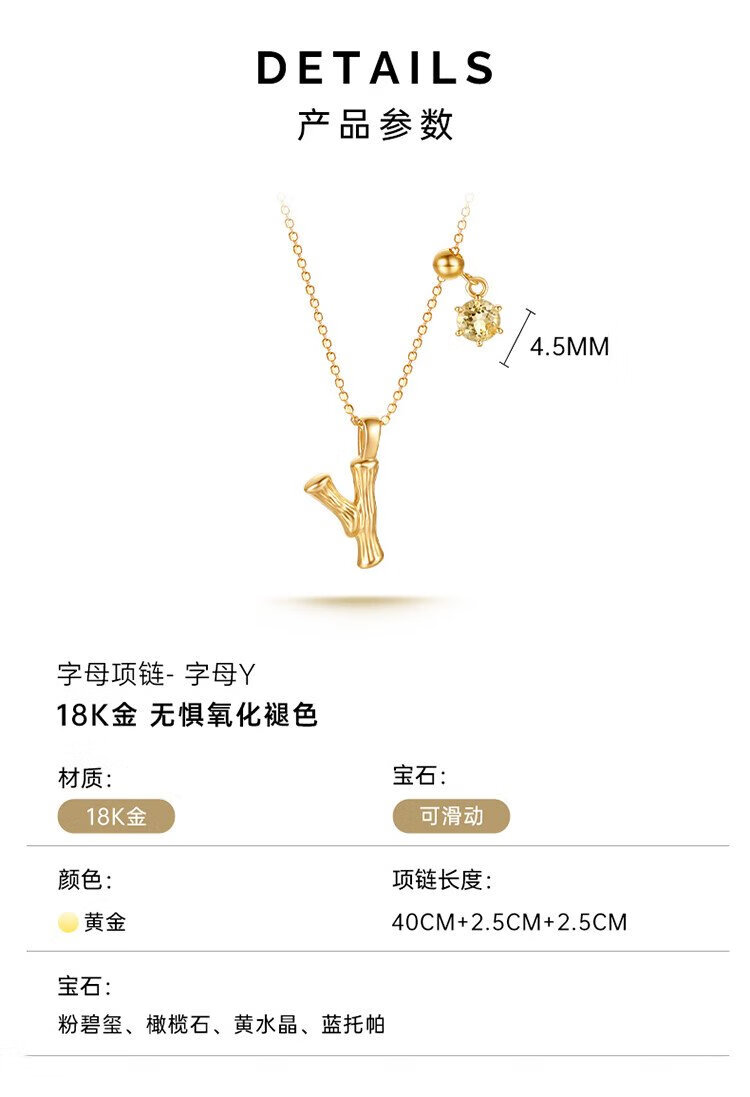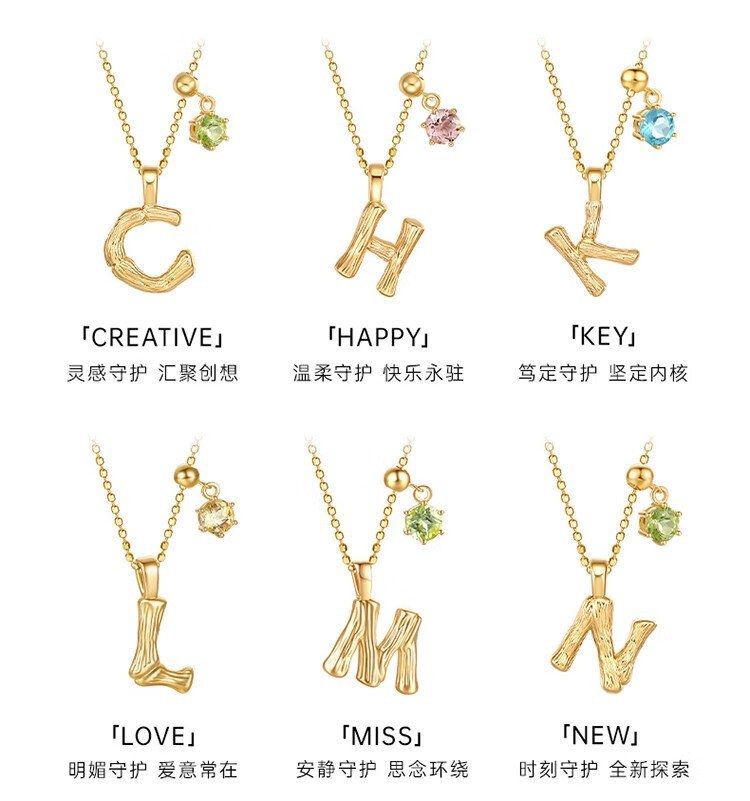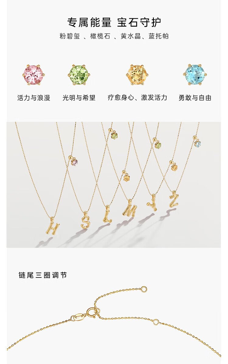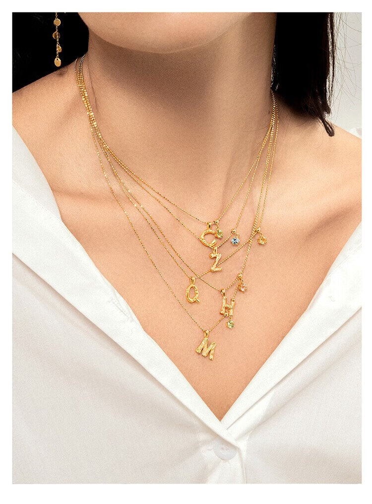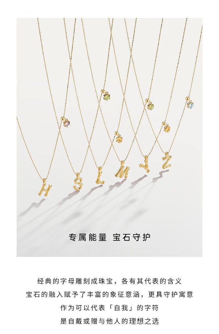 FENS Jewelry 18K Gold Necklace Women's Letter Chain Gemstone Colored Gold Chain Birthday Gift Letter C 18K Gold 1.0 Gemstone Letter Chain