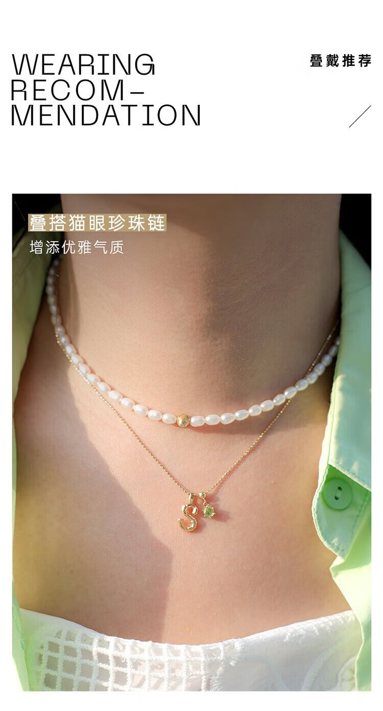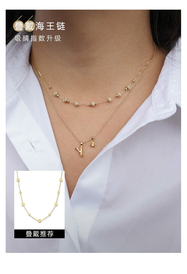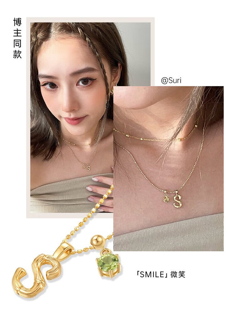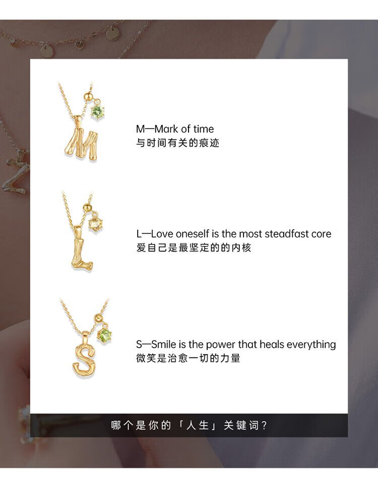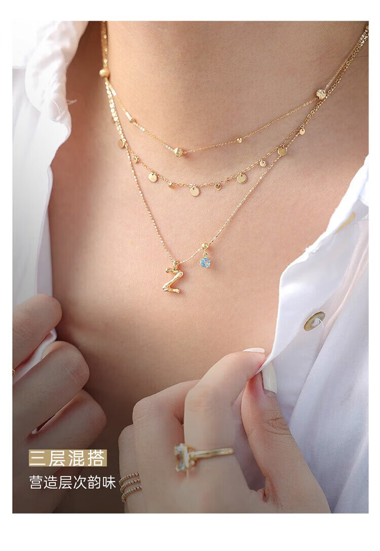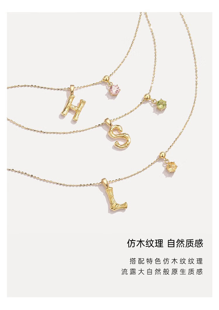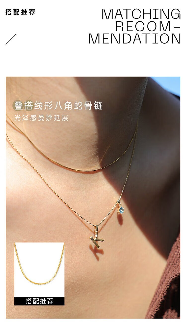 FENS Jewelry 18K Gold Necklace Women's Letter Chain Gemstone Colored Gold Chain Birthday Gift Letter C 18K Gold 1.0 Gemstone Letter Chain