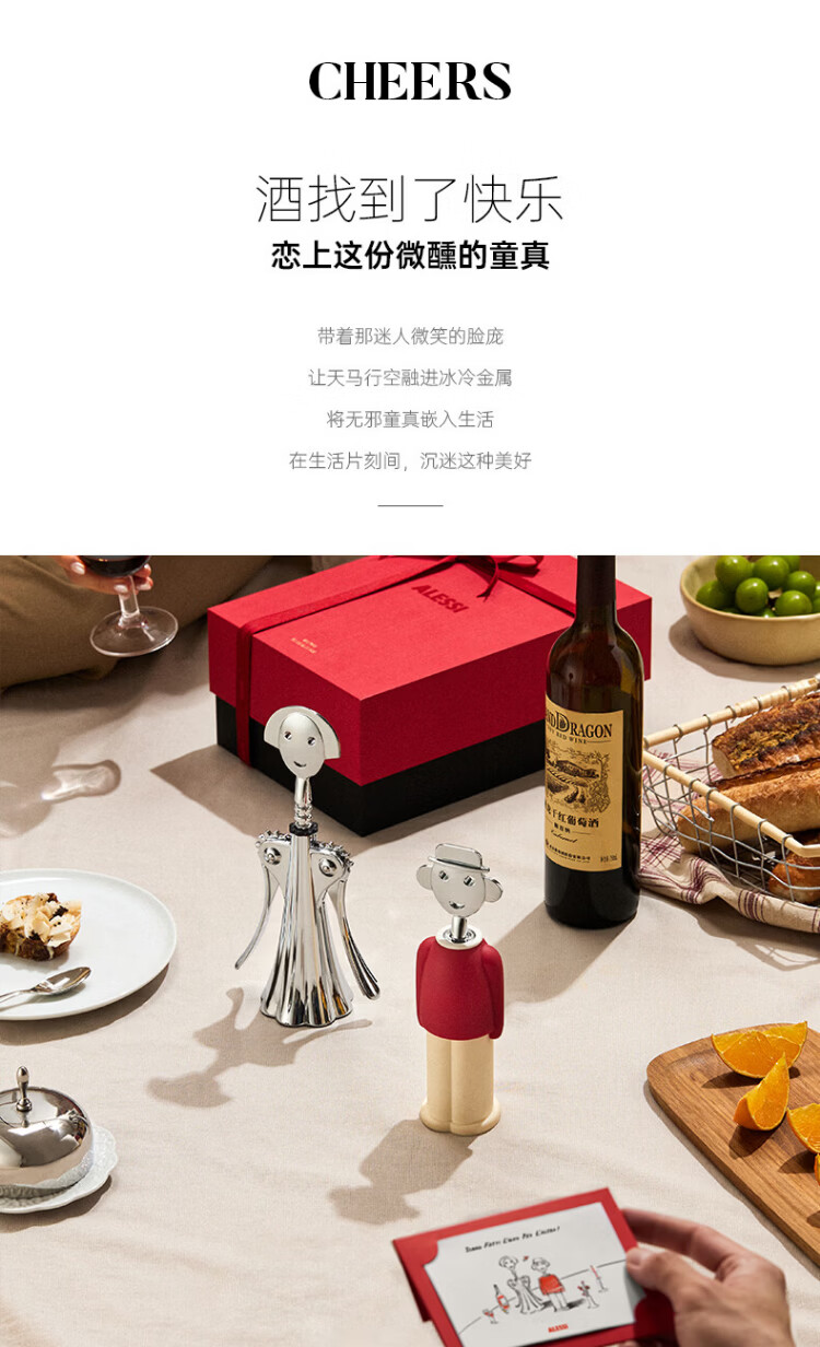 Alessi Valentine's Day Gift Wine Set Red Wine Bottle Opener High-end Gift Box Housewarming Newlywed Luxurious Birthday Gift Tipsy Gift Box Luxurious and Exclusive Style