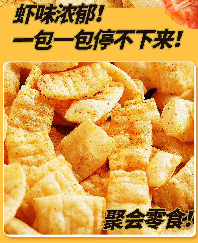 Lingqu Shrimp Chips Mixed Flavor Puffed Food Fried Shrimp Chips Children's Nostalgic Snacks Snacks M Shrimp Chips About 9g*8 Pack
