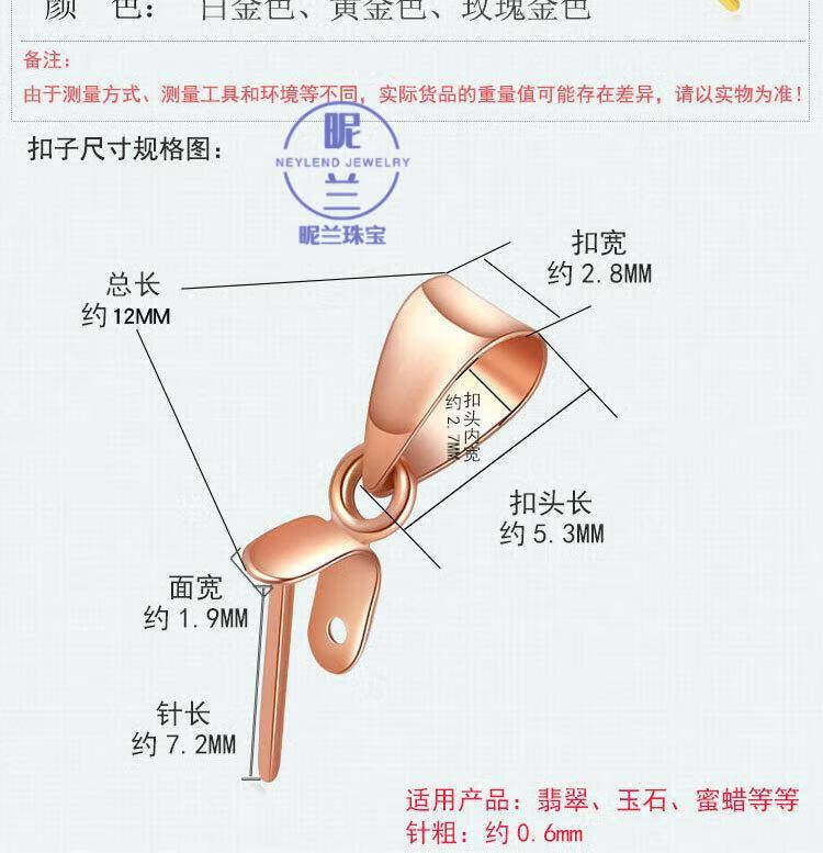 Nilan Fat Donglai quality platinum pendant buckle Pt950 18k gold rose gold gold crystal jade pendant jade clip melon PT950 platinum single needle pendant buckle