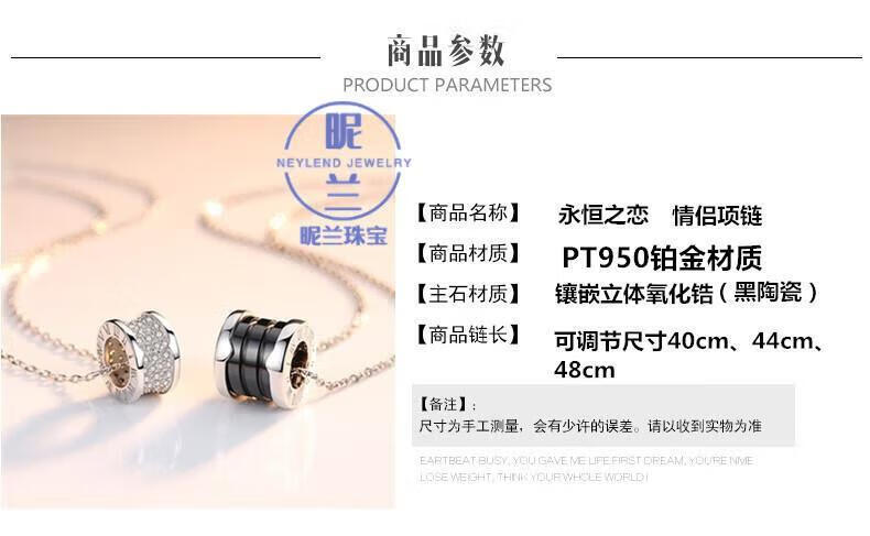 Nilan platinum pendant without chain PT950 women's necklace single pendant single versatile simple clavicle chain platinum black ceramic pendant (without chain)
