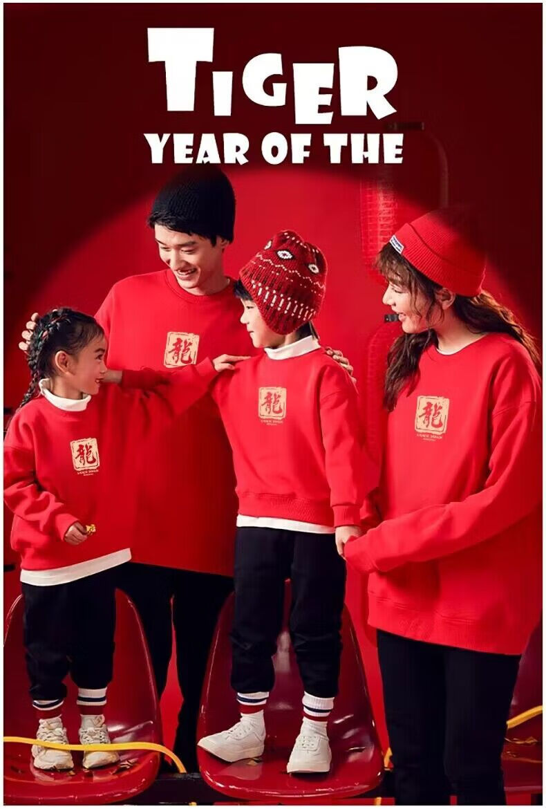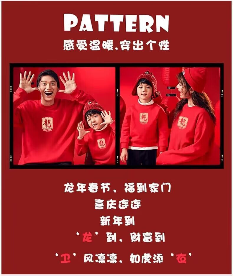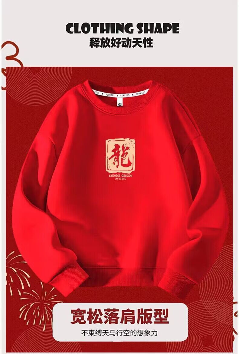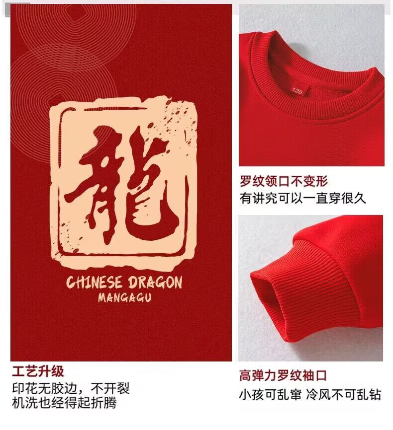 G.duck Year of the Dragon zodiac year parent-child wear autumn and winter 2025 new family of three and four red mother-daughter mother-child sweatshirt jacket dragon plus velvet red child 150