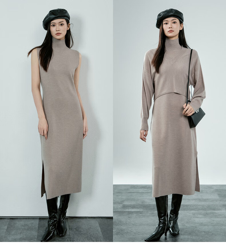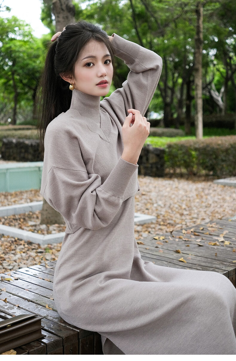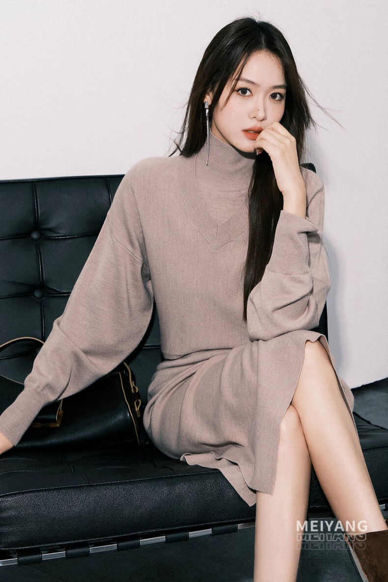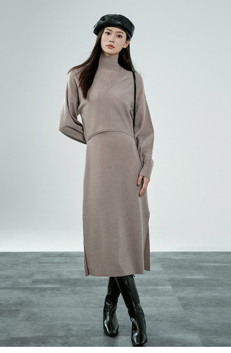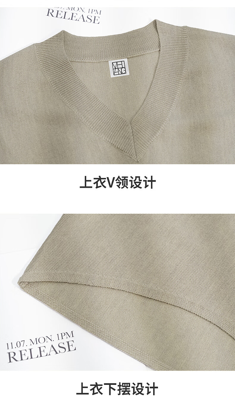 MEIYANG Champagne knitted wool suit Quiet and luxurious temperament V-neck long-sleeved sweater straight tank top skirt new sweater sweater light coffee (top) S