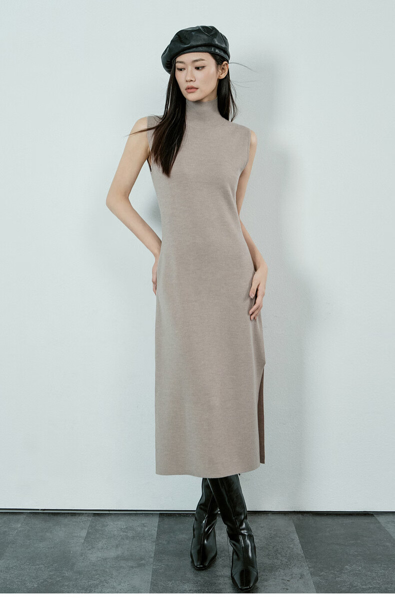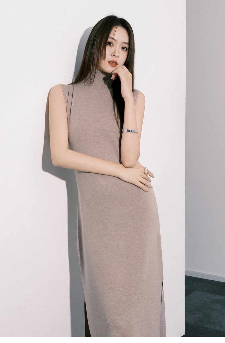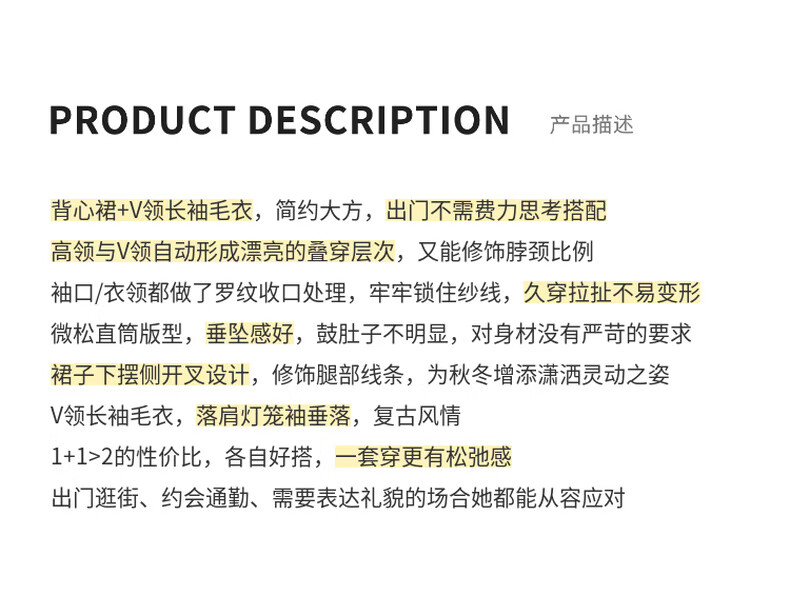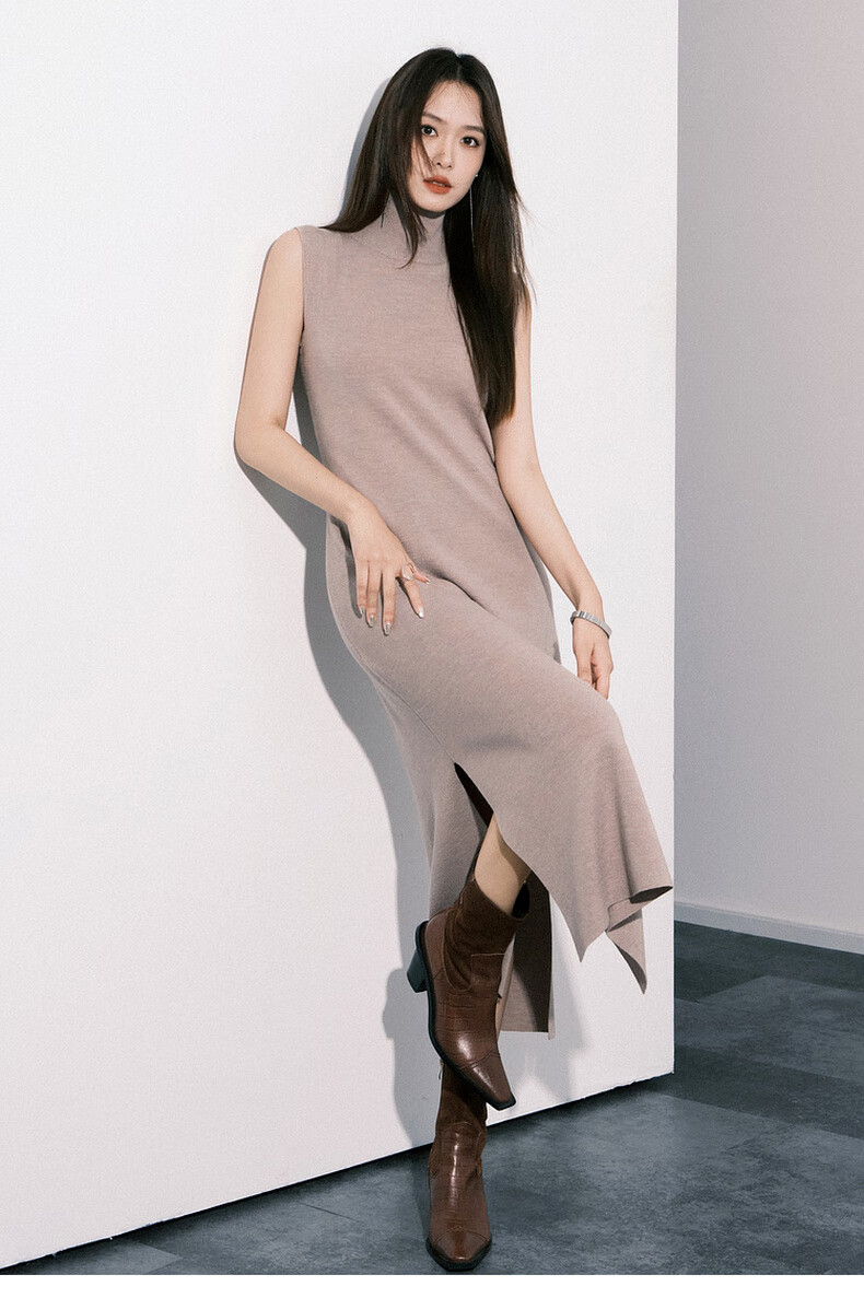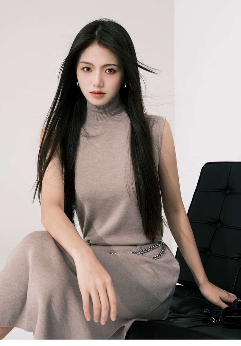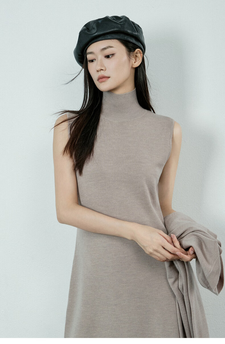 MEIYANG Champagne knitted wool suit Quiet and luxurious temperament V-neck long-sleeved sweater straight tank top skirt new sweater sweater light coffee (top) S