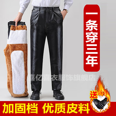 Xiyixiyi Men's Leather Pants Plus Velvet and Thicken Cycling Takeaway Driving Windproof and Waterproof Motorcycle Loose and Warm Winter Leather Pants Velvet Leather Pants Waist Protection and Extended Knee Pads 2XL Recommended 125-145Jin Jin is equal to 0.5 kg