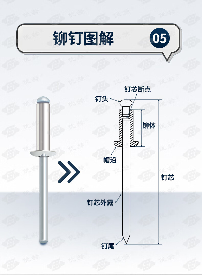 Youheyouhe core blind rivet aluminum pull rivet flat round head 12618 卯 nail anchor national standard open type aluminum alloy pull rivet 5*10 (50 pieces)